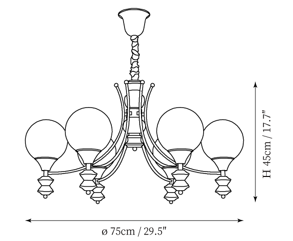 - 6-Lights Size: Dia 75cm x H 45cm / ∅ 29.5″ x H 17.7″