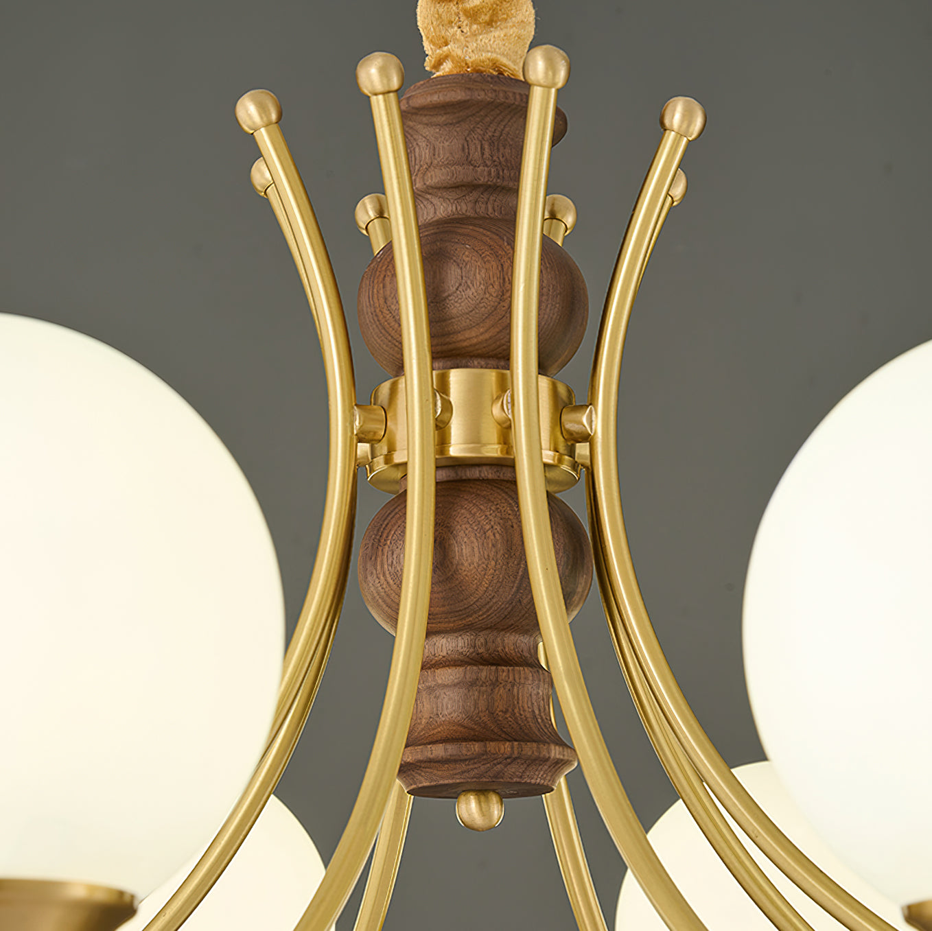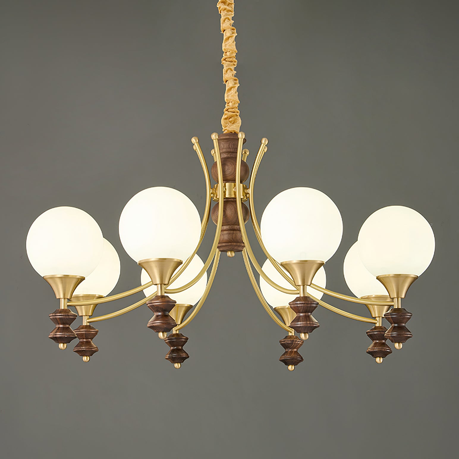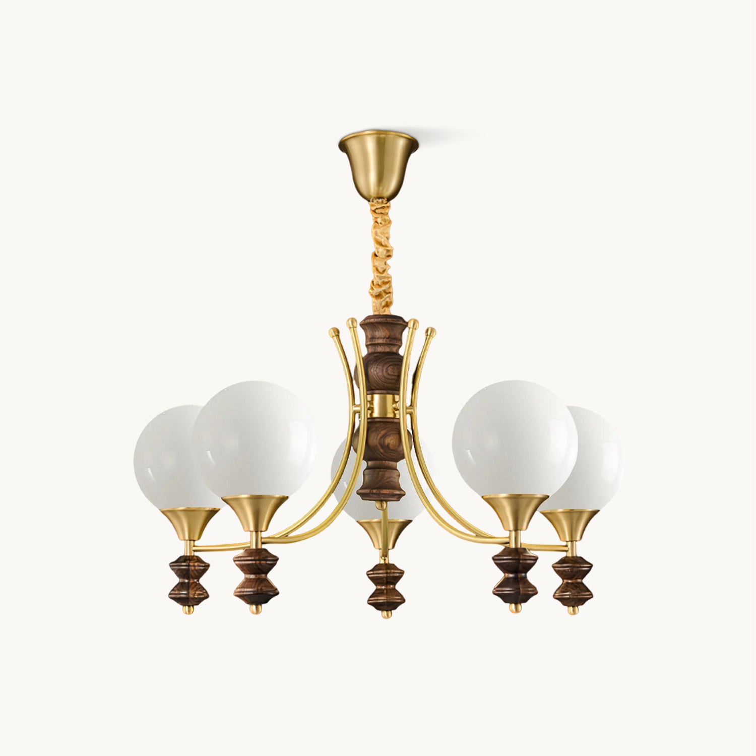Sophisticated elegance meets timeless design with the Orillia Chandelier! Featuring a blend of brass and rich wooden elements, paired with soft, glowing orbs, this chandelier elevates any space with its regal charm. Perfect for dining rooms, living spaces, or adding a touch of luxury to your home decor.