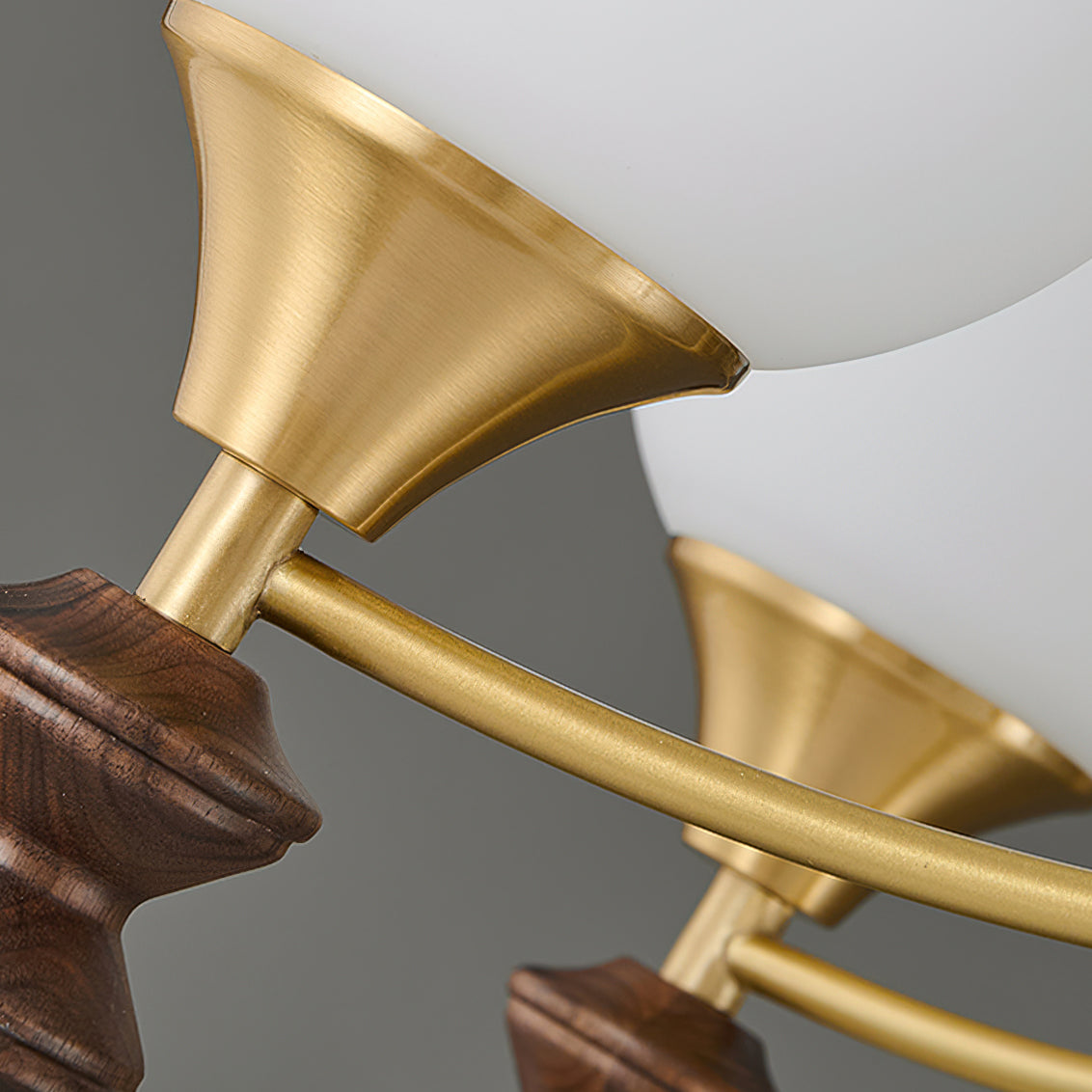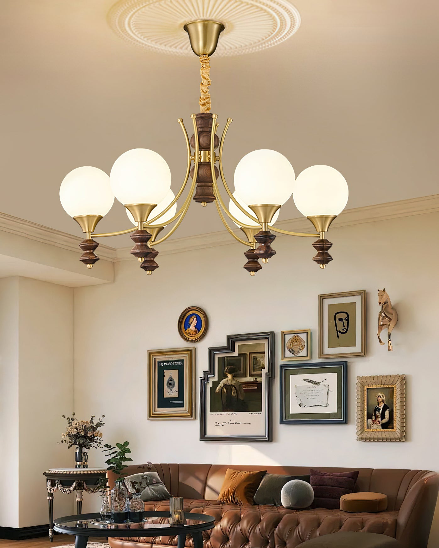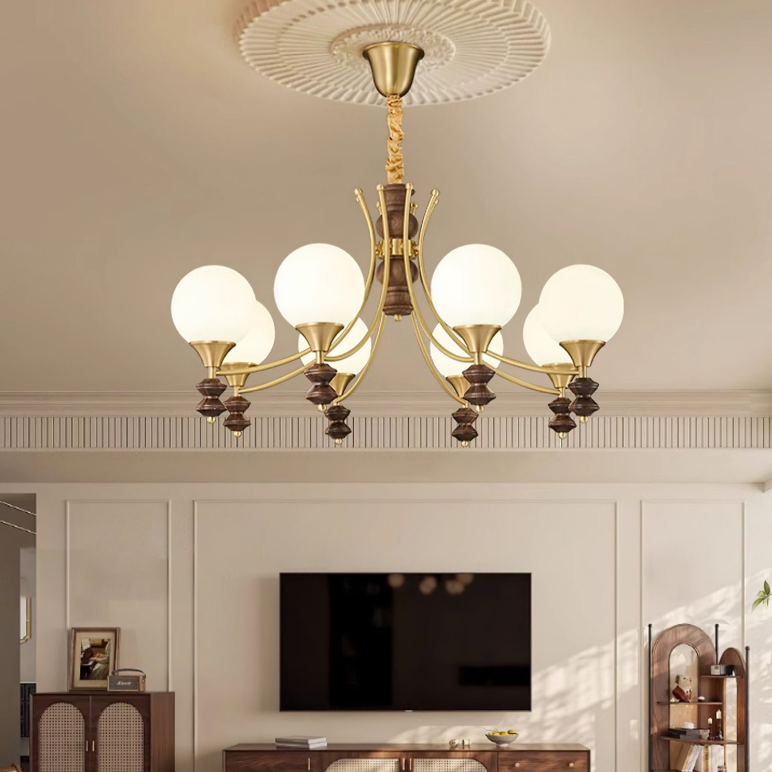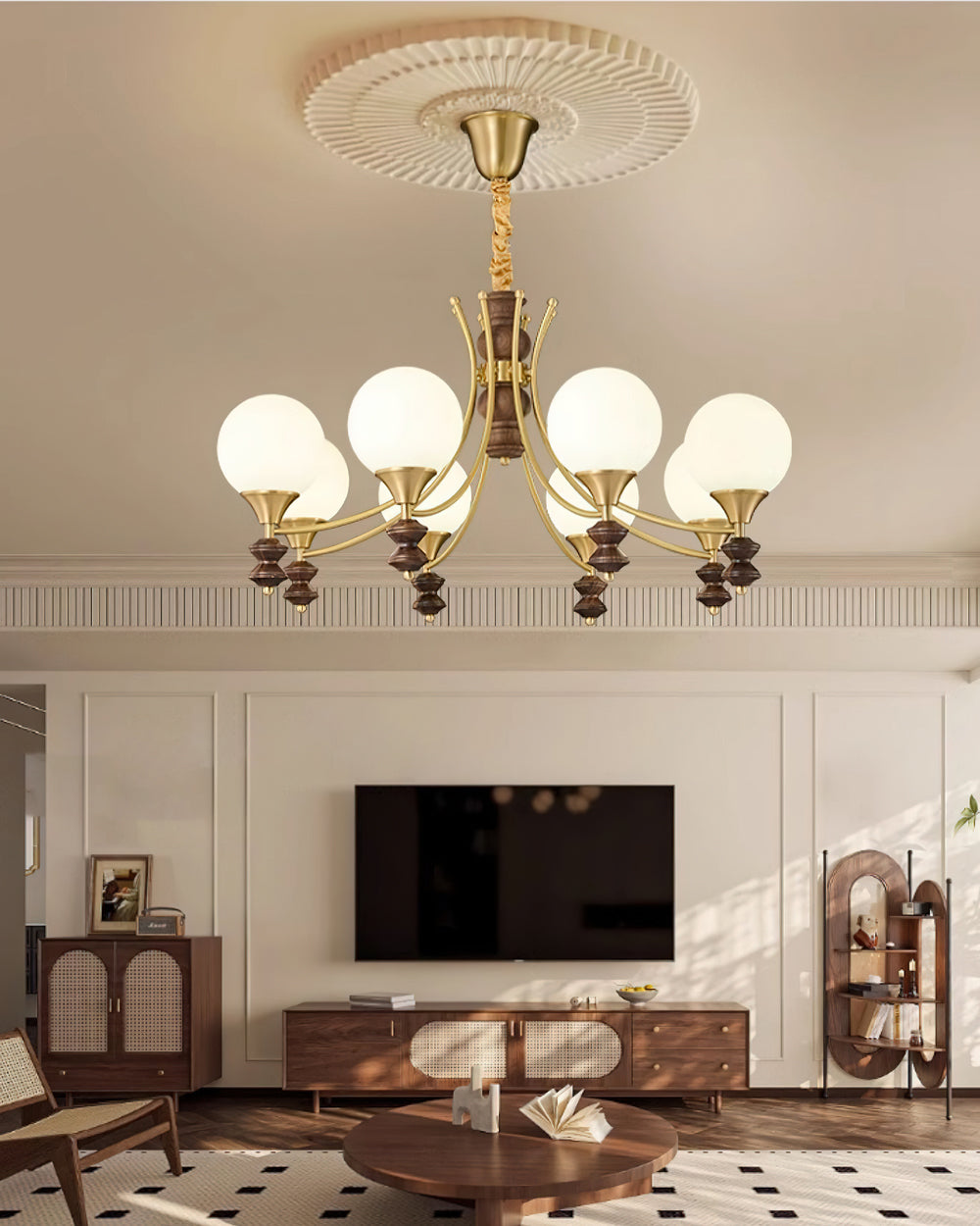 Sophisticated elegance meets timeless design with the Orillia Chandelier! Featuring a blend of brass and rich wooden elements, paired with soft, glowing orbs, this chandelier elevates any space with its regal charm. Perfect for dining rooms, living spaces, or adding a touch of luxury to your home decor.