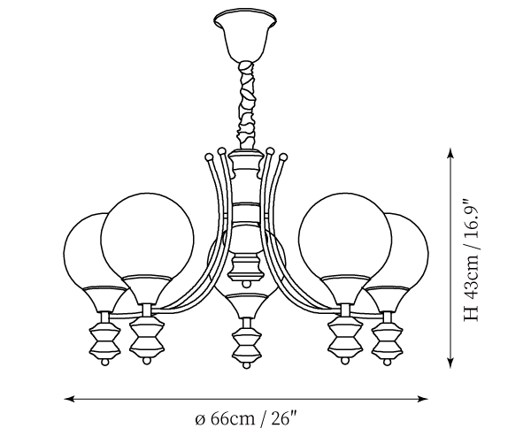 - 5-Lights Size: Dia 66cm x H 43cm / ∅ 26″ x H 16.9″