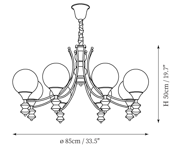 - 8-Lights Size: Dia 85cm x H 50cm / ∅ 33.5″ x H 19.7″
