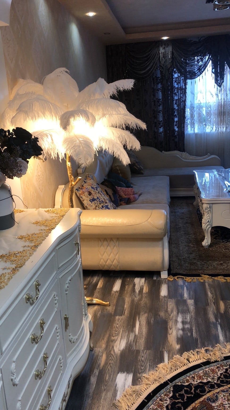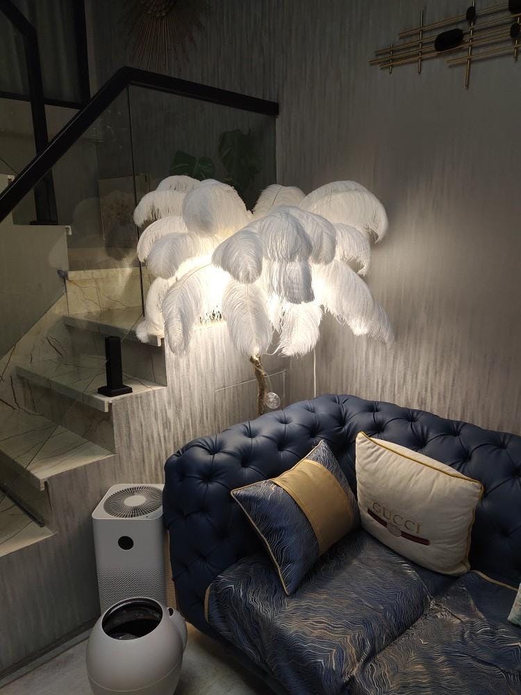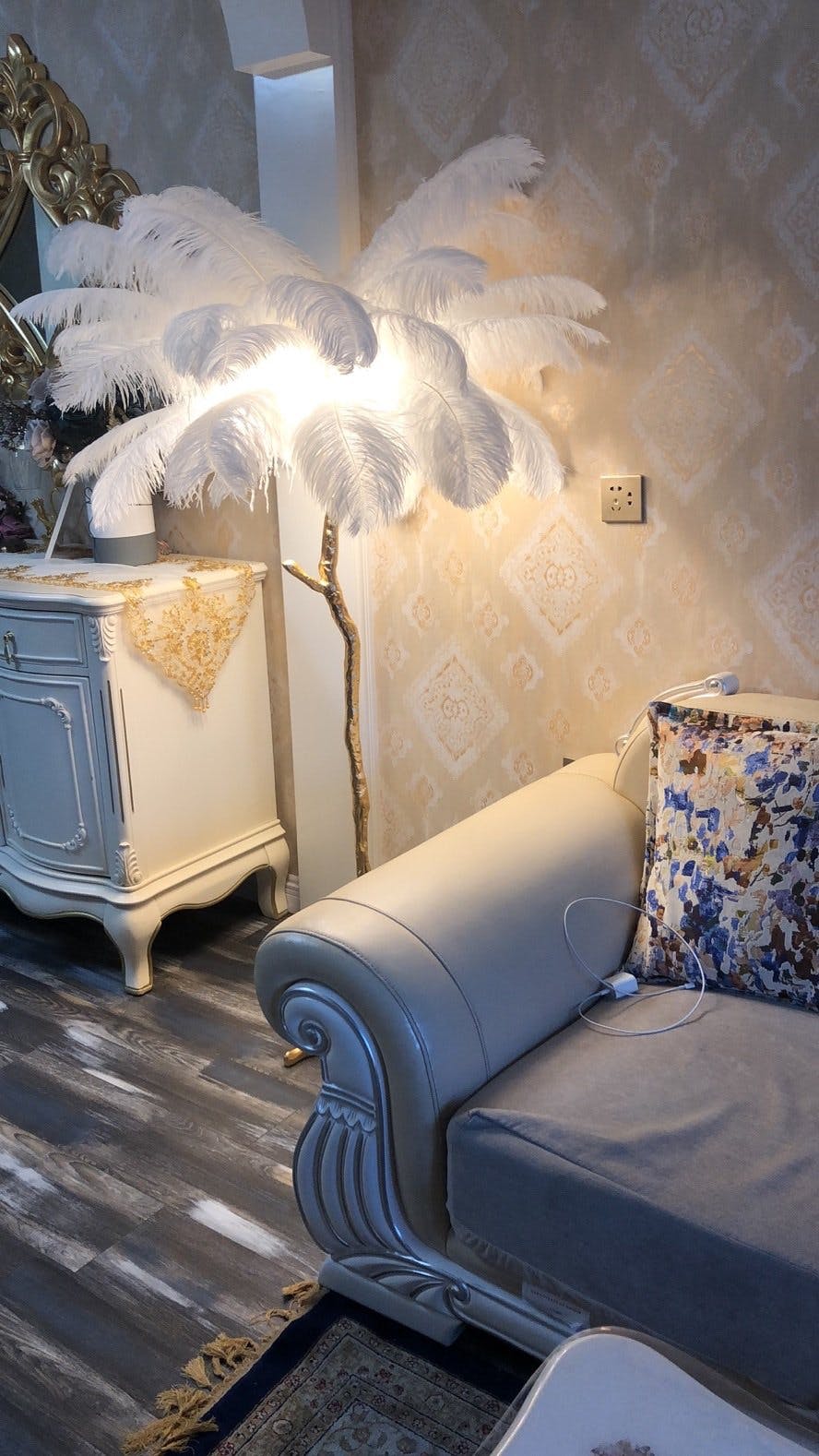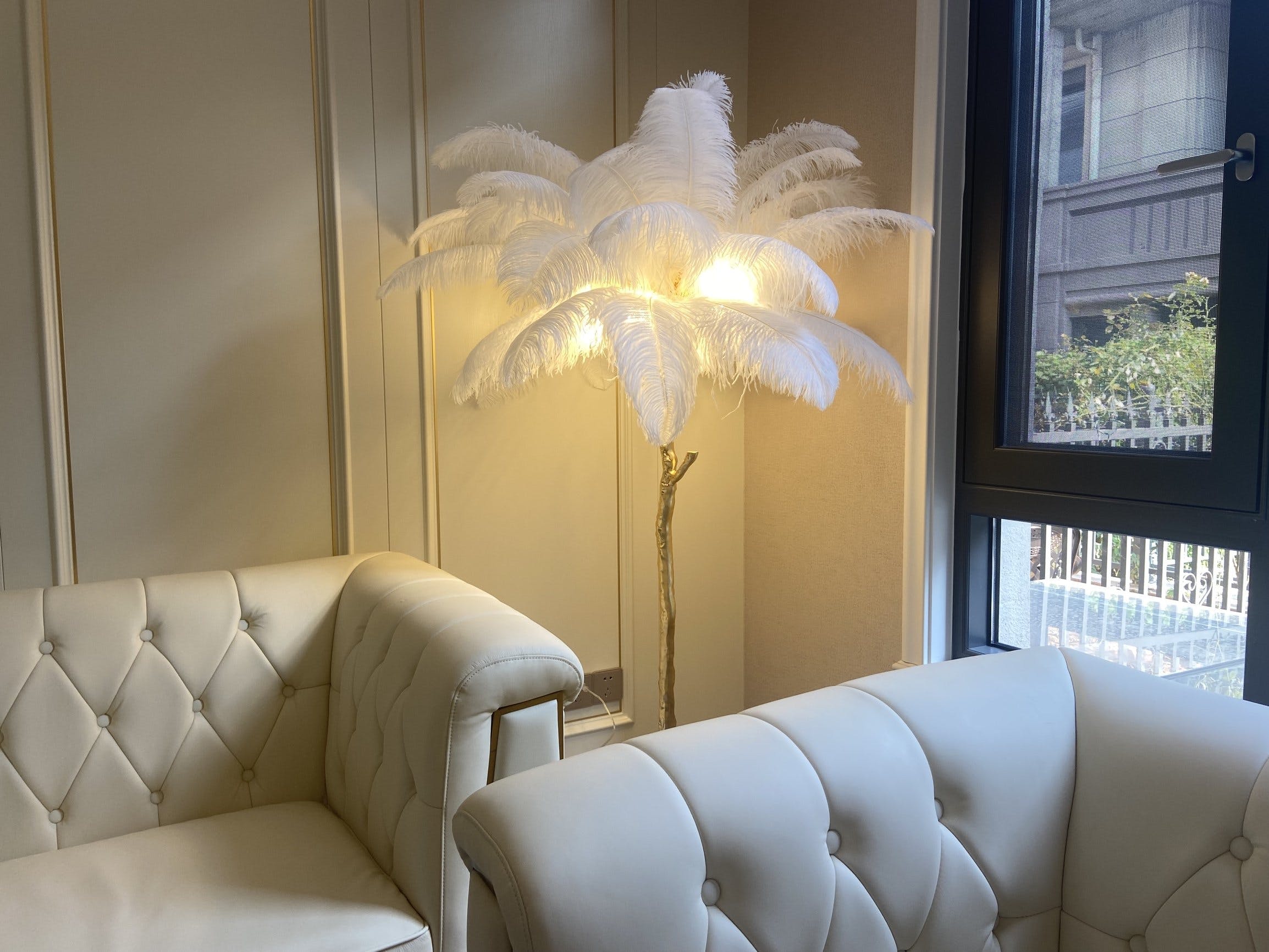 As part of our exclusive feather lamp series, our feather table lamps are finished with ostrich feathers and a brass metal base.