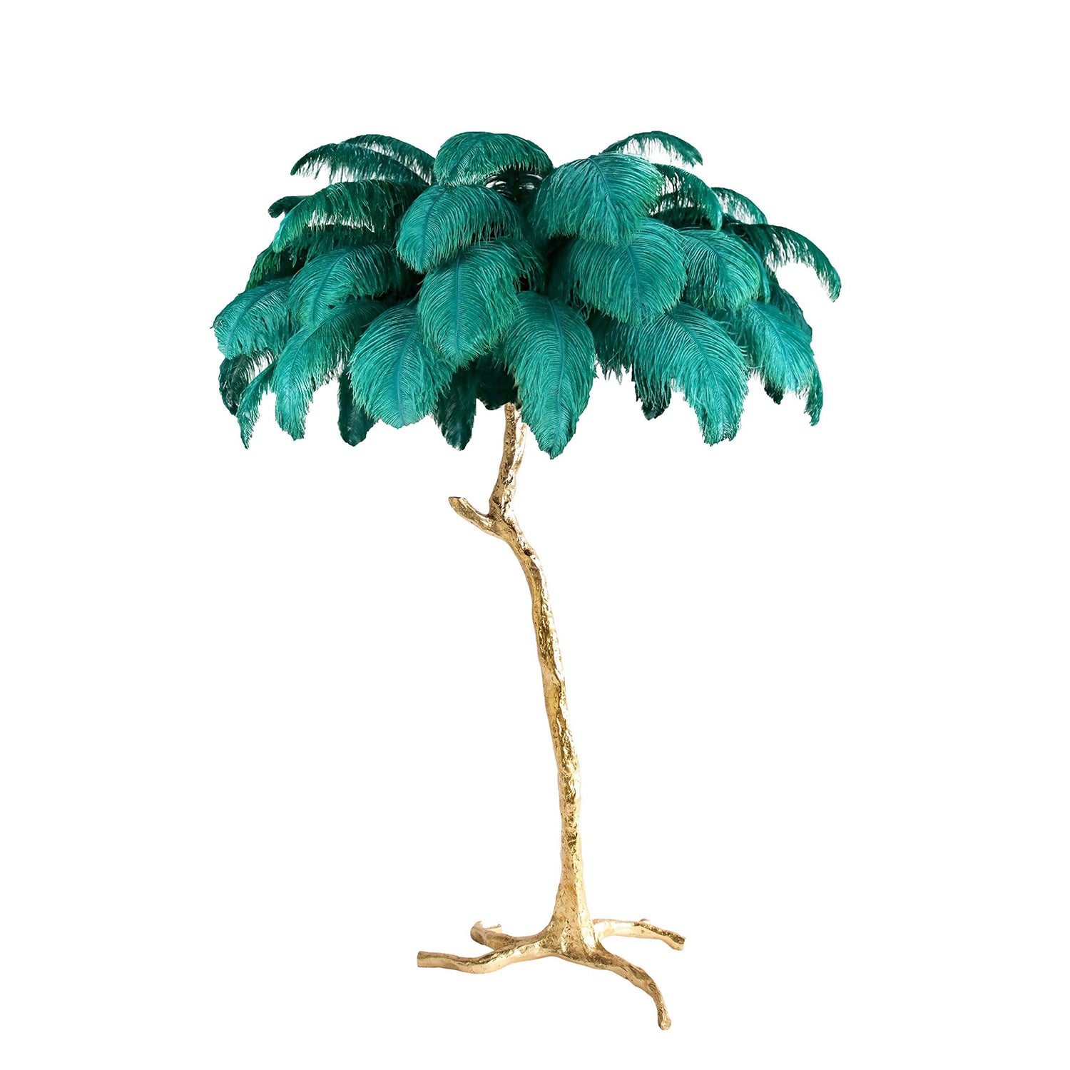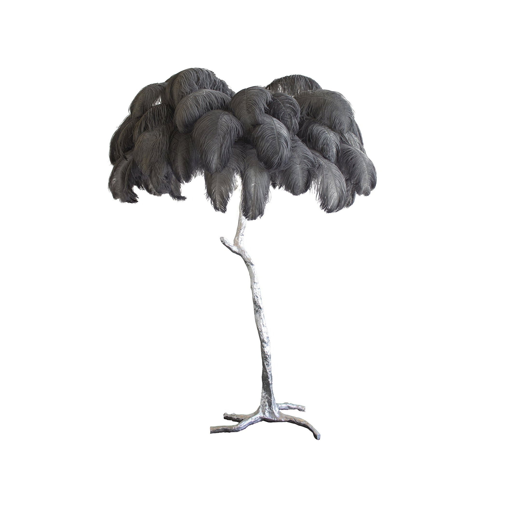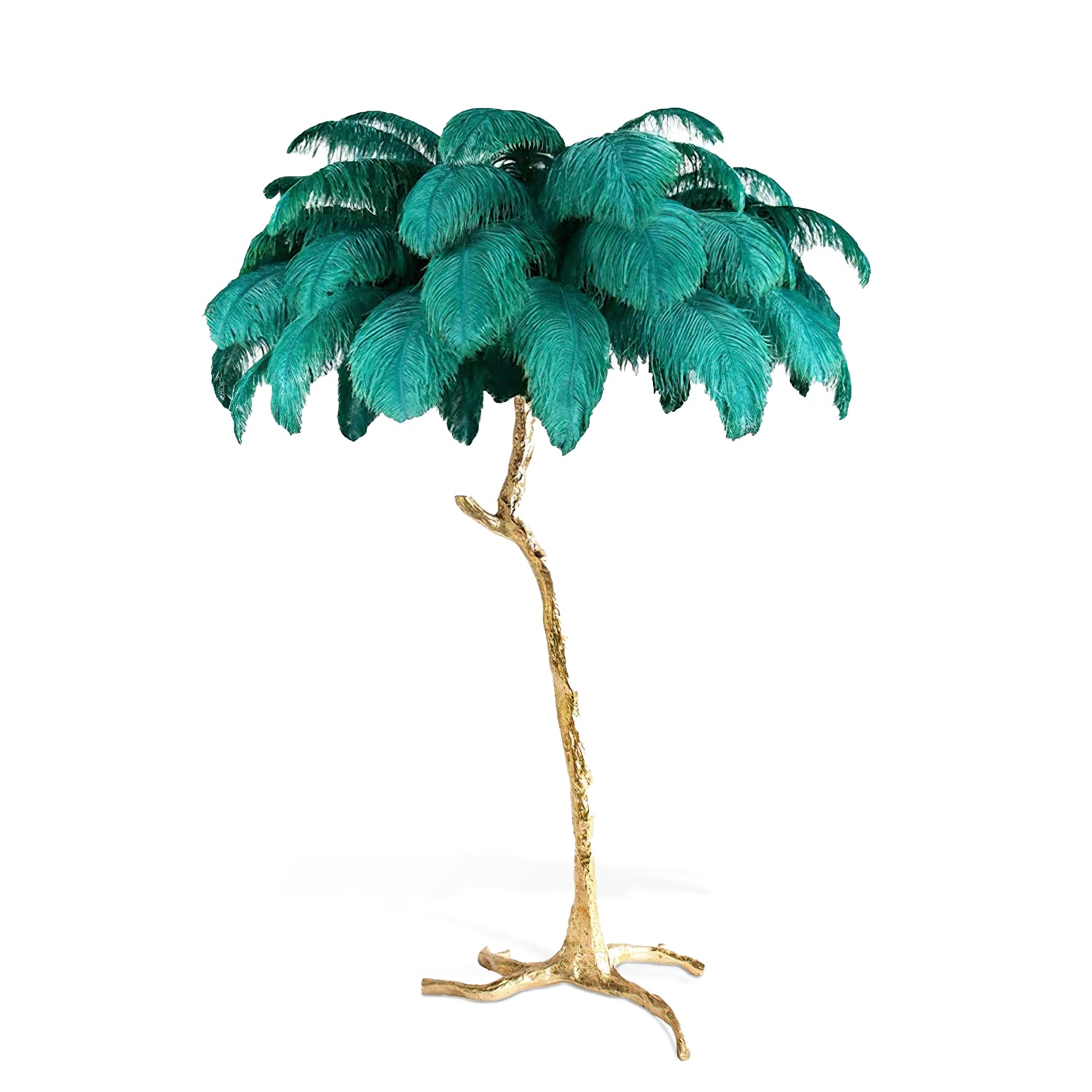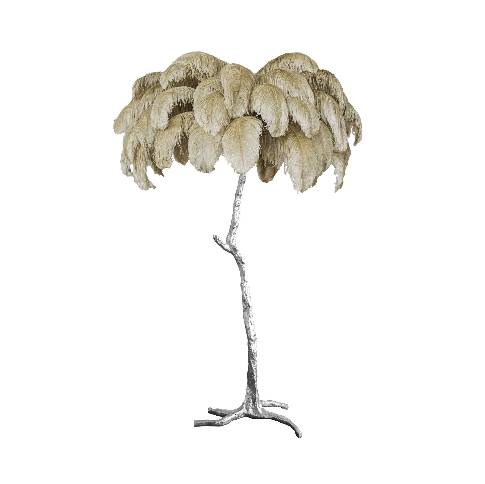 An illuminating palm tree, resplendent with exquisite ostrich feather foliage, the feather floor lamp takes center stage in any luxury setting and delivers the ultimate Midas touch to Hollywood regency decors. A pièce de résistance among standing lamps, this lighting work of art commands attention with its exquisite design and intricate craftsmanship.