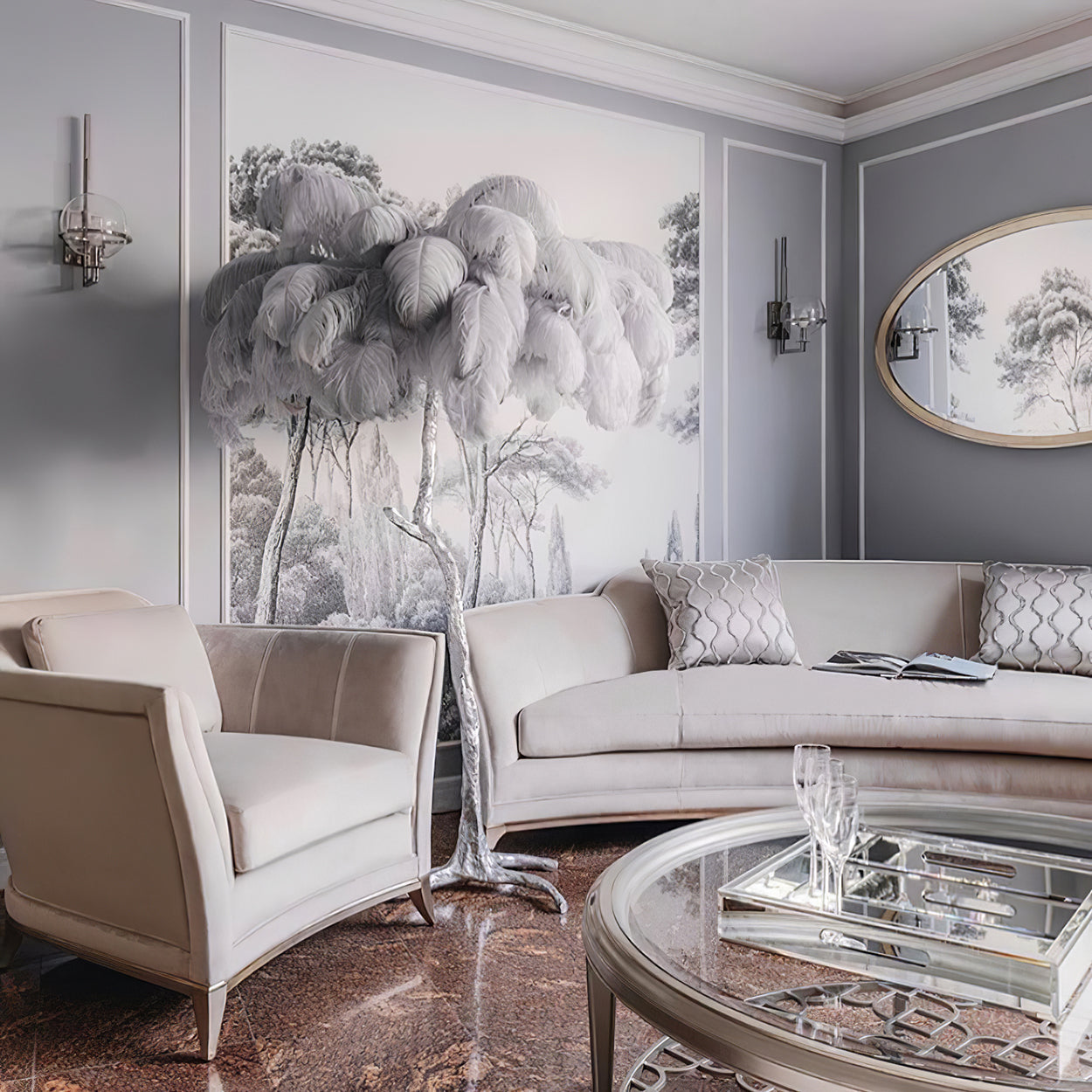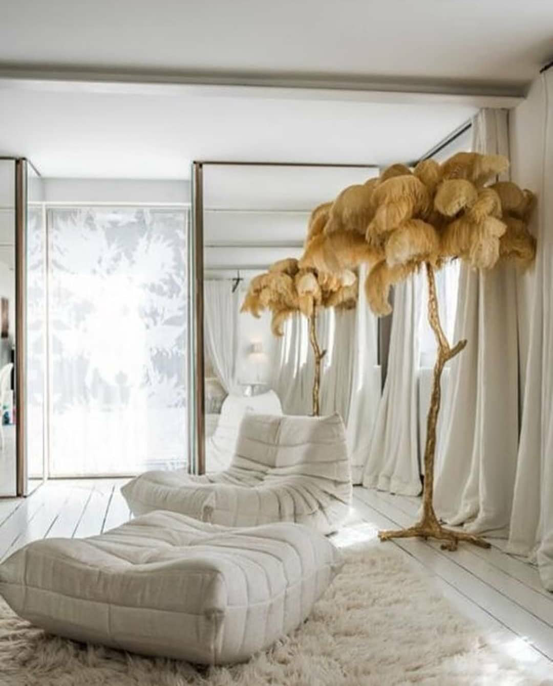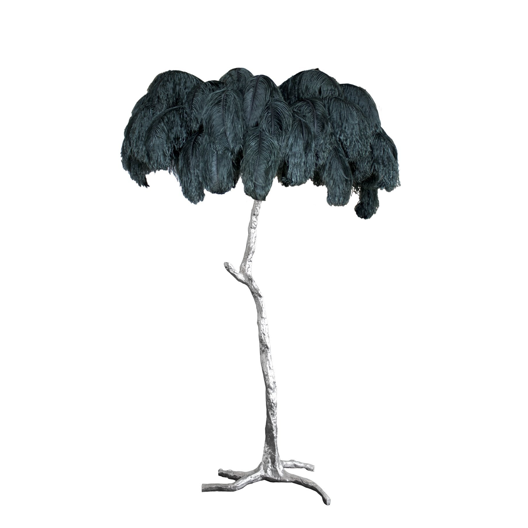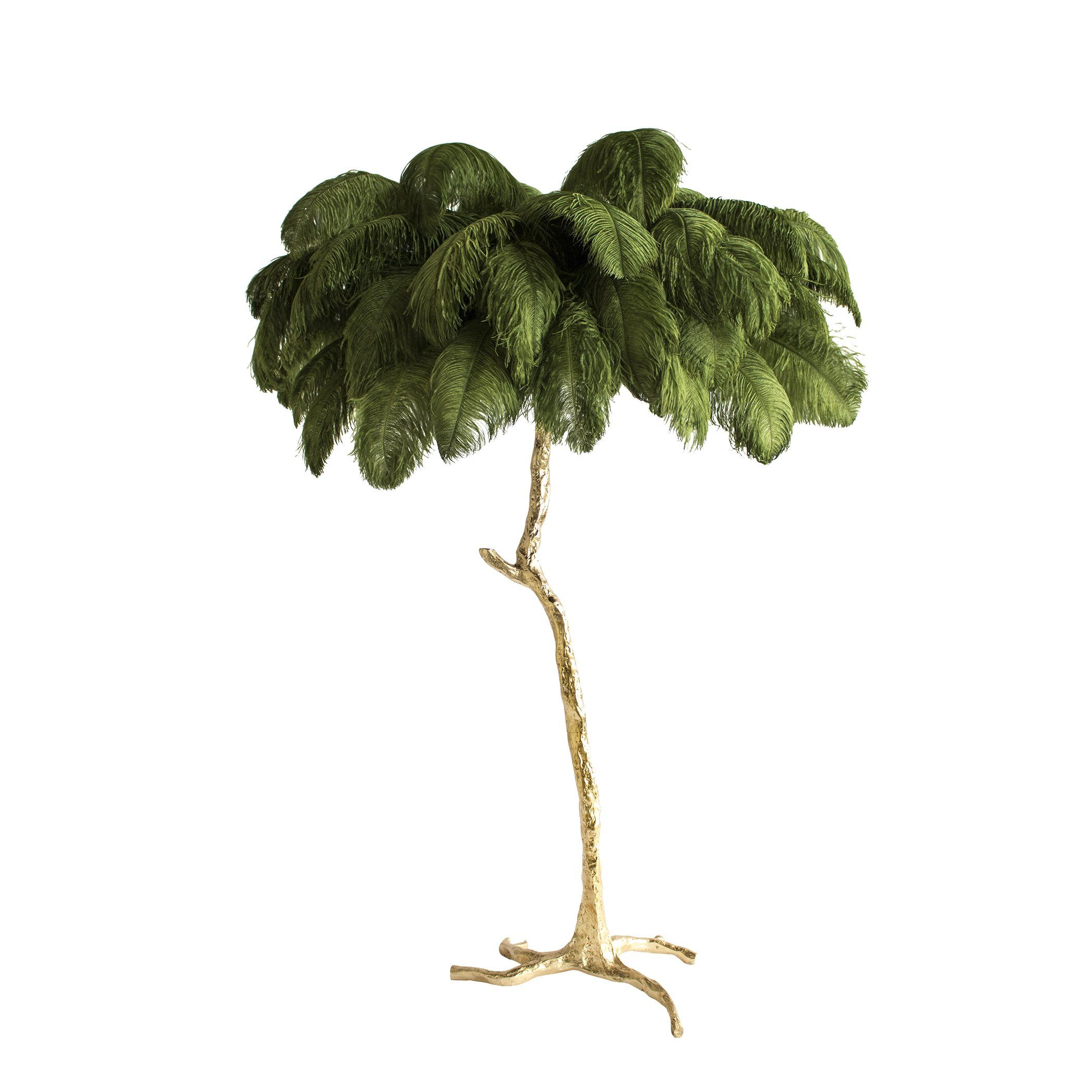 An illuminating palm tree, resplendent with exquisite ostrich feather foliage, the feather floor lamp takes center stage in any luxury setting and delivers the ultimate Midas touch to Hollywood regency decors. A pièce de résistance among standing lamps, this lighting work of art commands attention with its exquisite design and intricate craftsmanship.