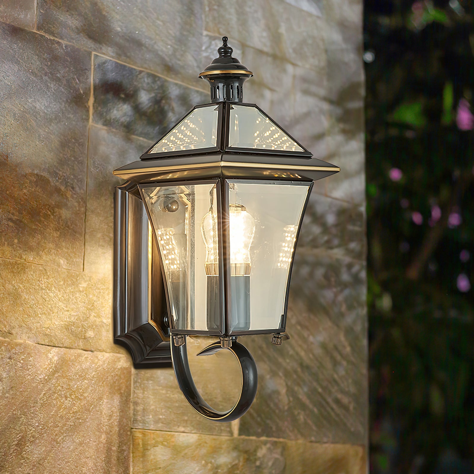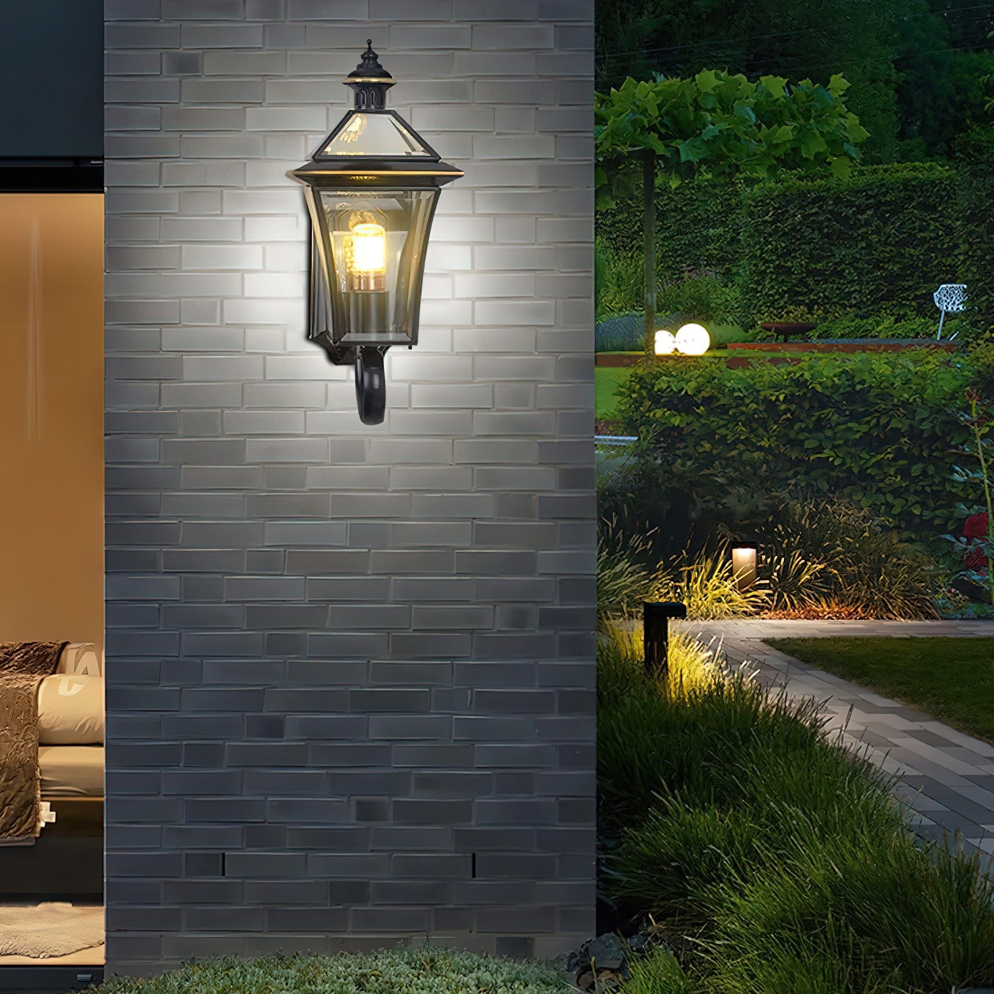 Bring style and sophistication to your outdoor space with this top-grade garden lantern wall light. Crafted with copper for a luxurious look, the light provides a warm, inviting glow that brings a sense of comfort and elegance to any setting. Make your garden evenings brighter and more beautiful.