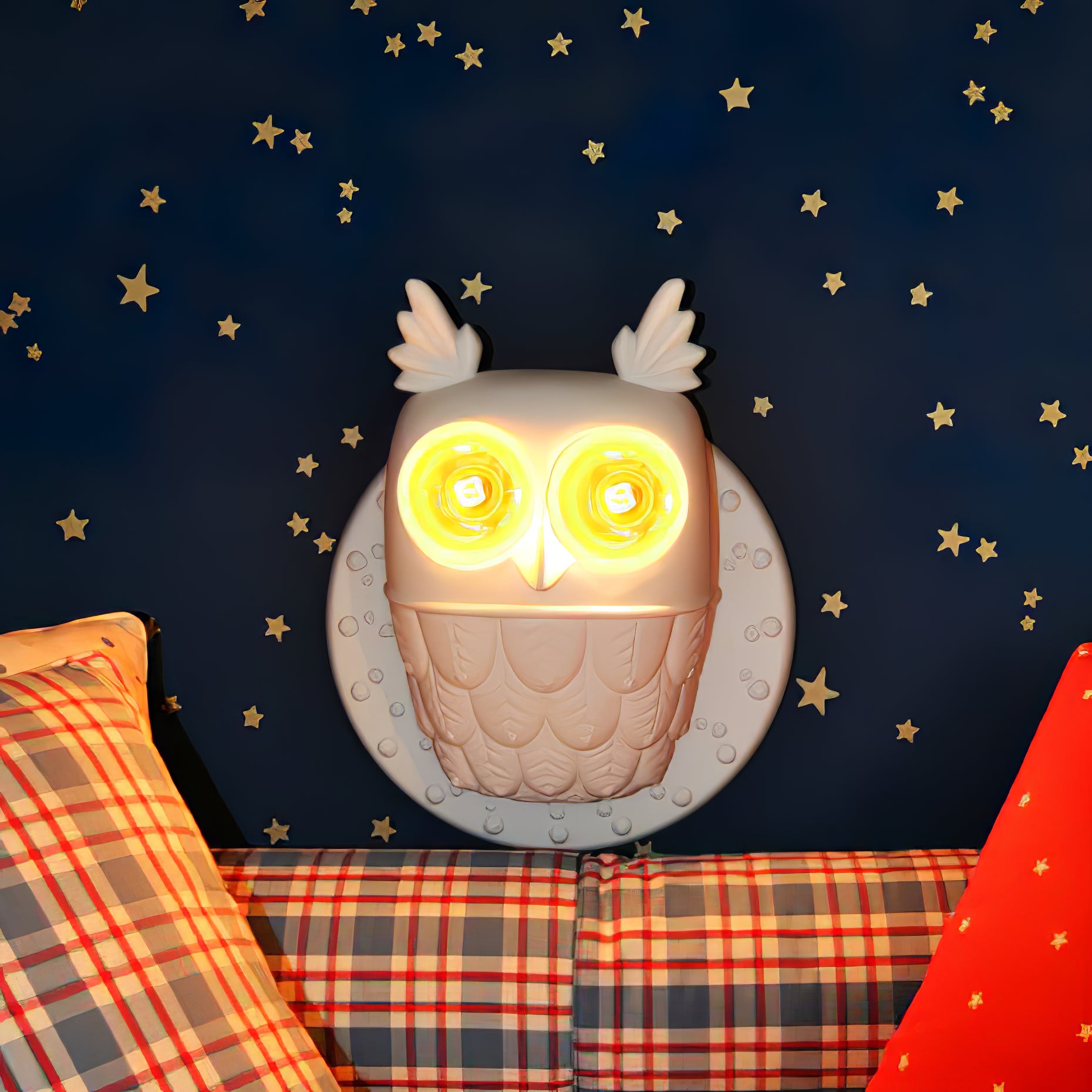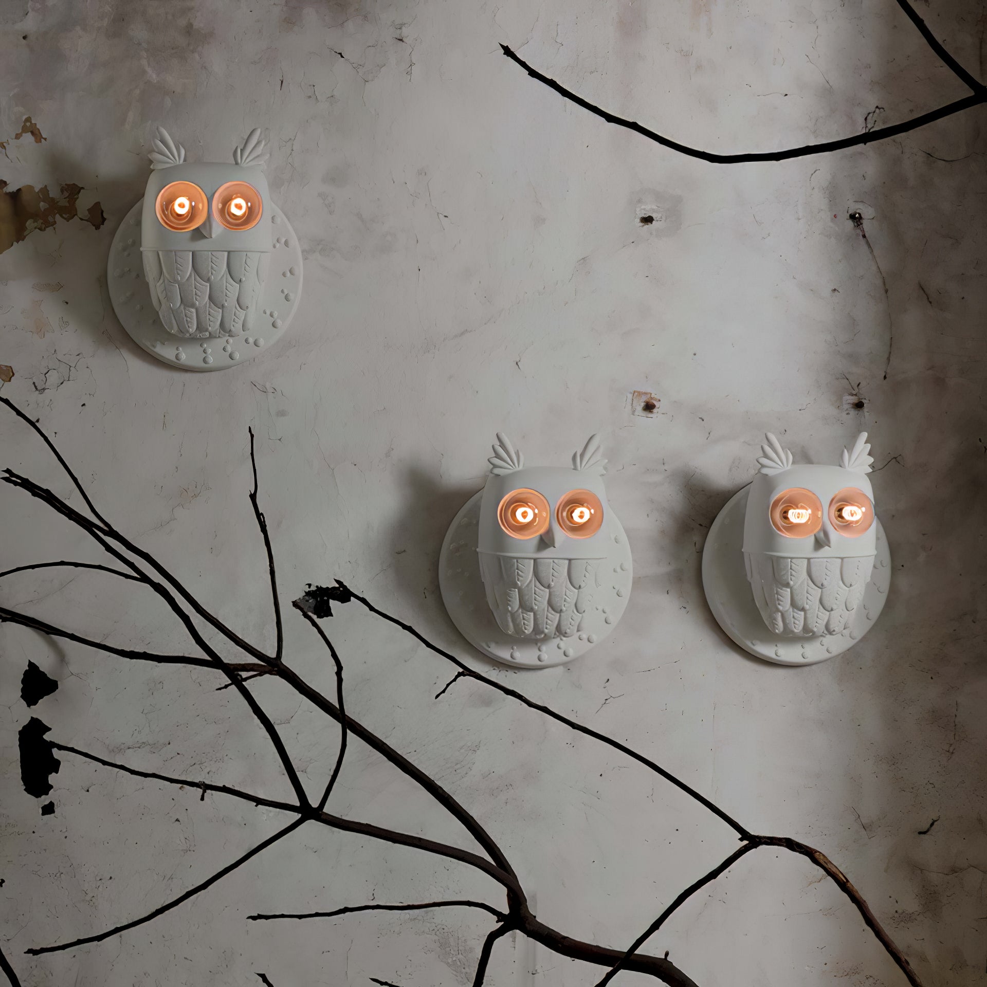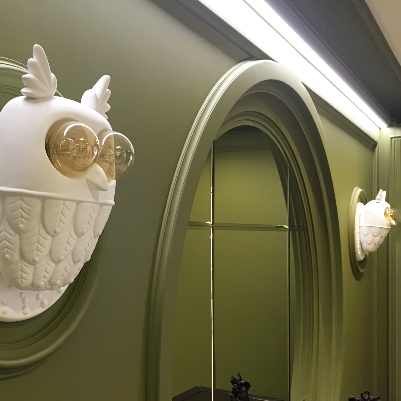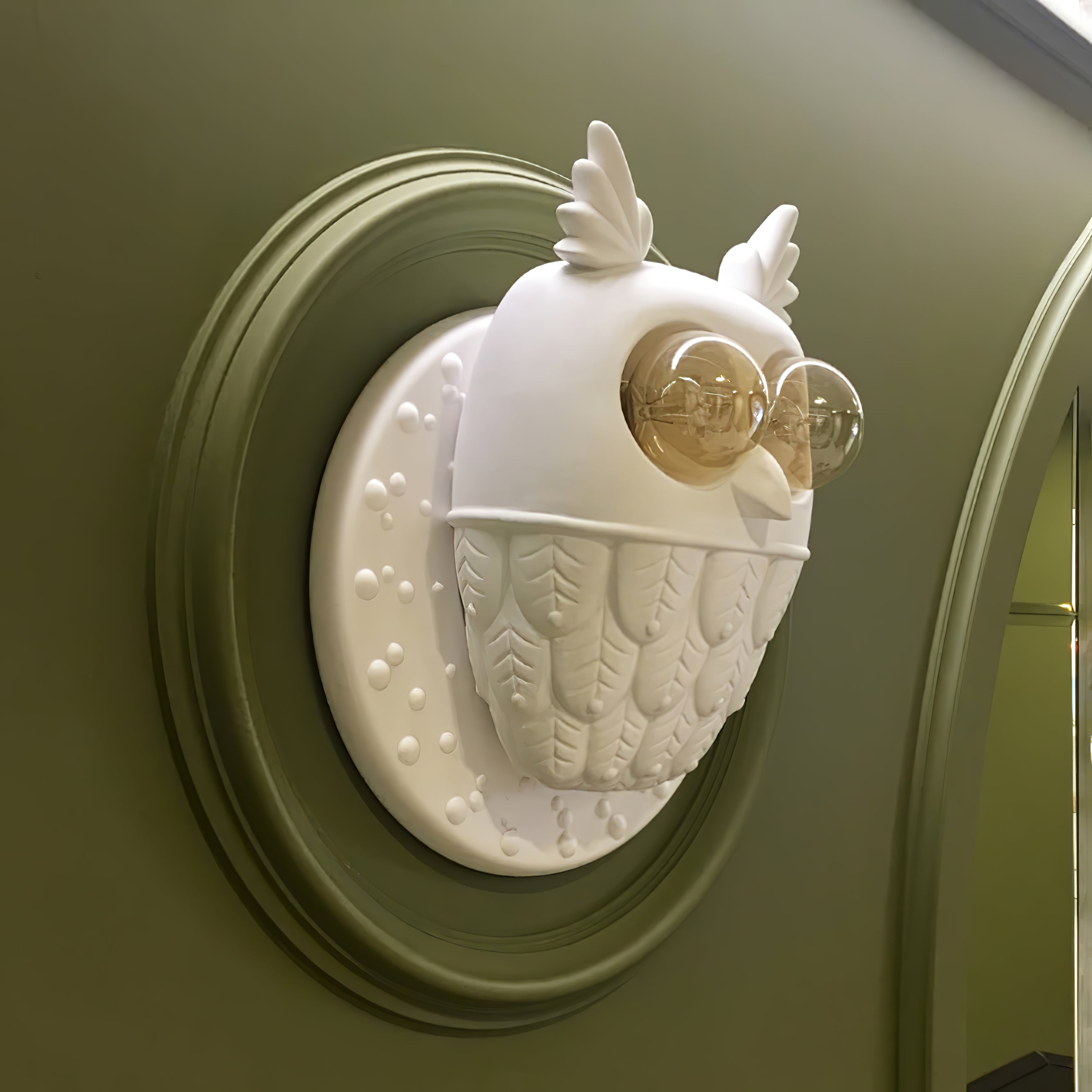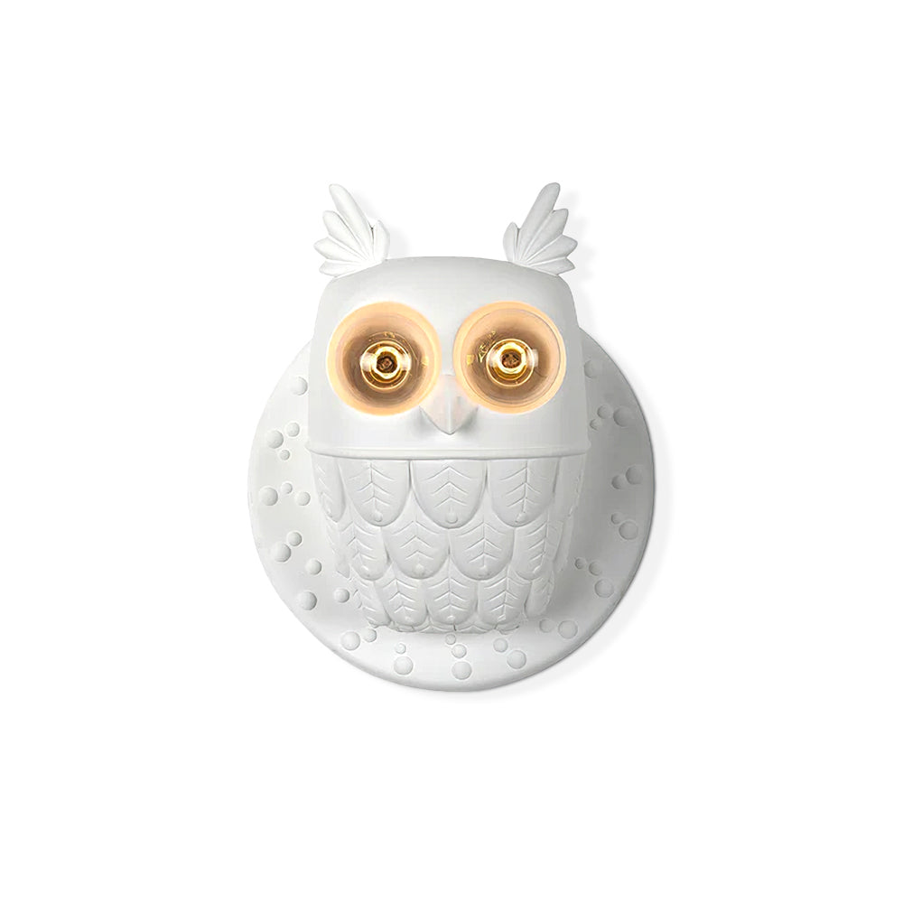 The owl wall light is singular and poetic, This owl-shaped lamp will bring a touch of whimsy and elegance to your home. Composed of white resin, it will fit in perfectly with industrial atmospheres. Alone or with others, It will decorate your interior and will release a soft light and warmth. This wall lamp will find its place in a living room, bedroom, kitchen, or dining room. The luminous owl has two light sources instead of eyes. Intended for all design enthusiasts unusual,It reflects the offbeat and provocative spirit.