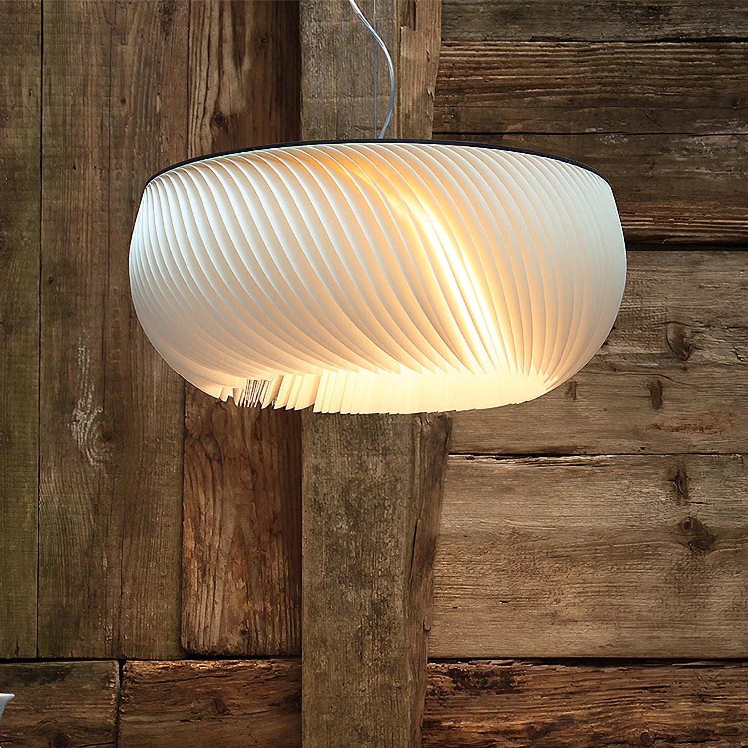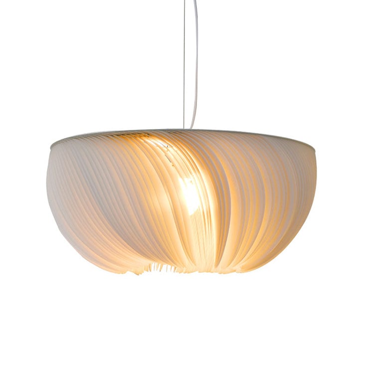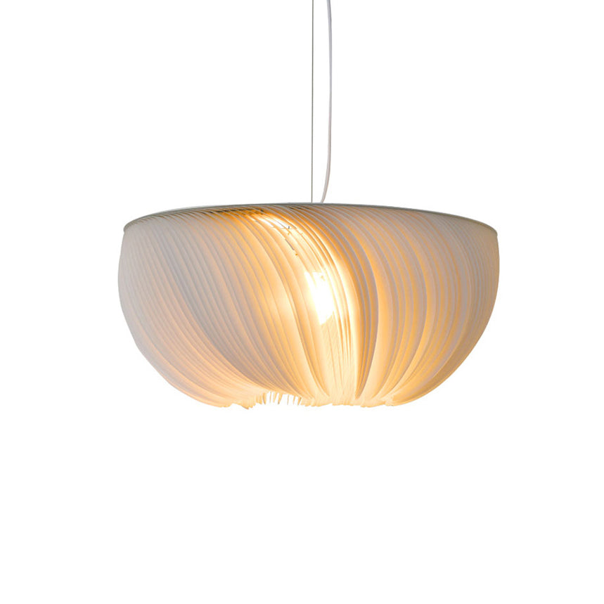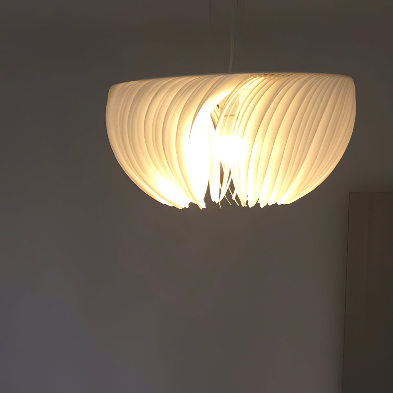 This pendant lamp has a unique design and material and inspires all with its wavy form. A functional, decorative addition to your house, the diffused light is soft and pleasant which adds a warm atmosphere. It is perfect to add warmth and happiness to your home.