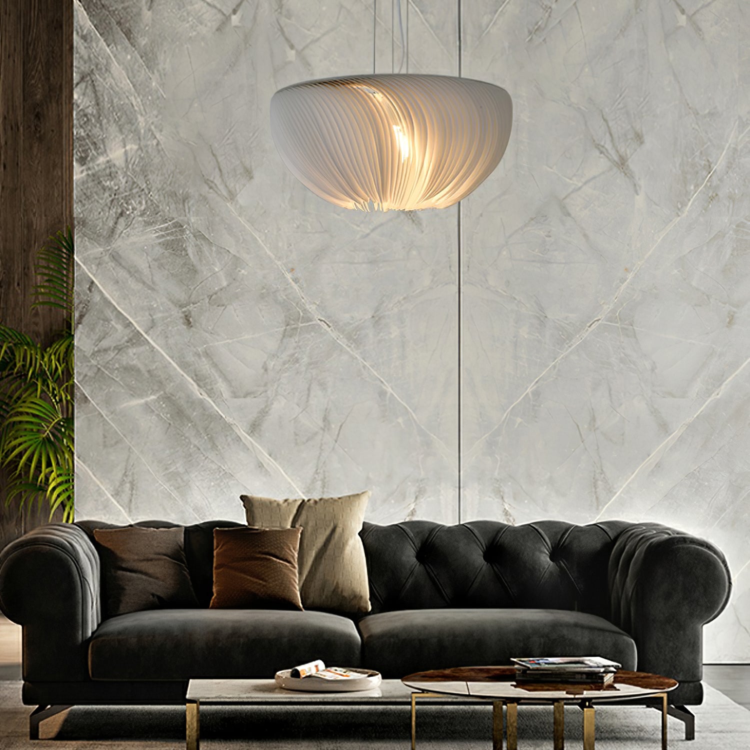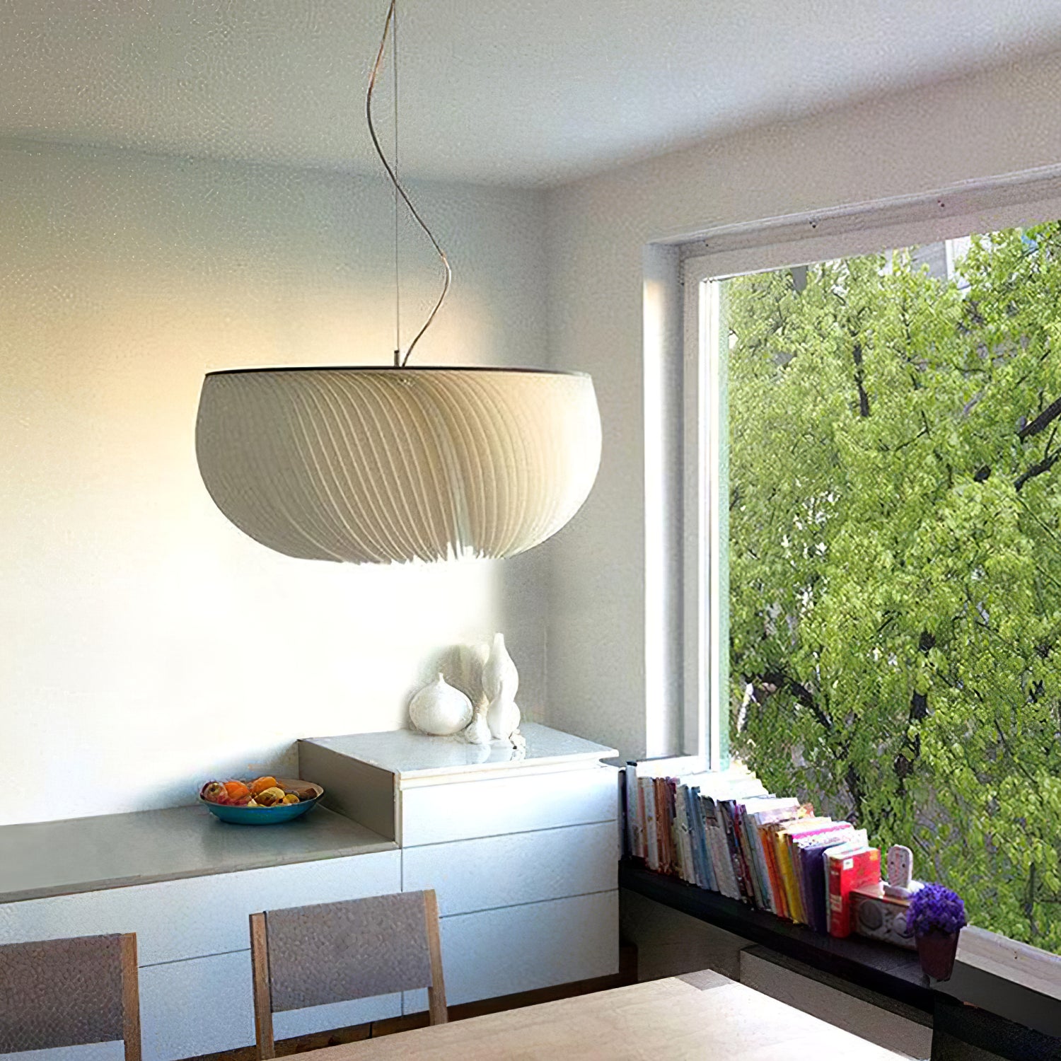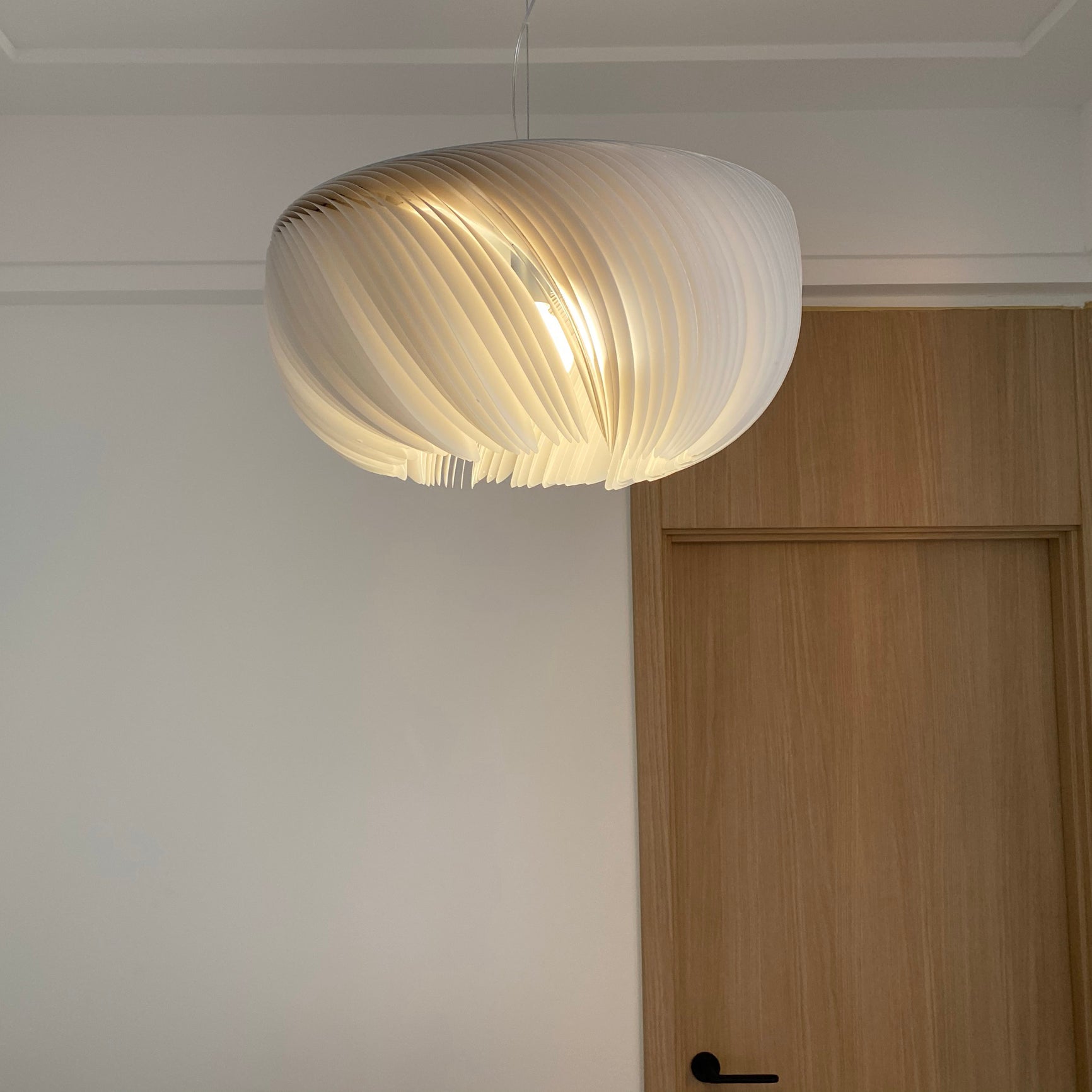 This pendant lamp has a unique design and material and inspires all with its wavy form. A functional, decorative addition to your house, the diffused light is soft and pleasant which adds a warm atmosphere. It is perfect to add warmth and happiness to your home.