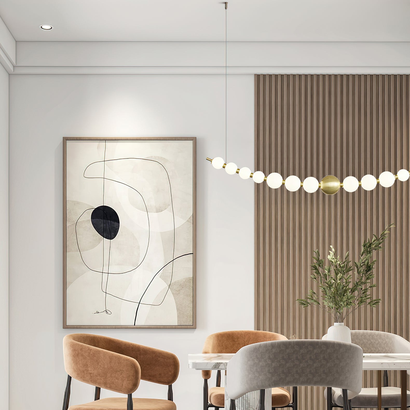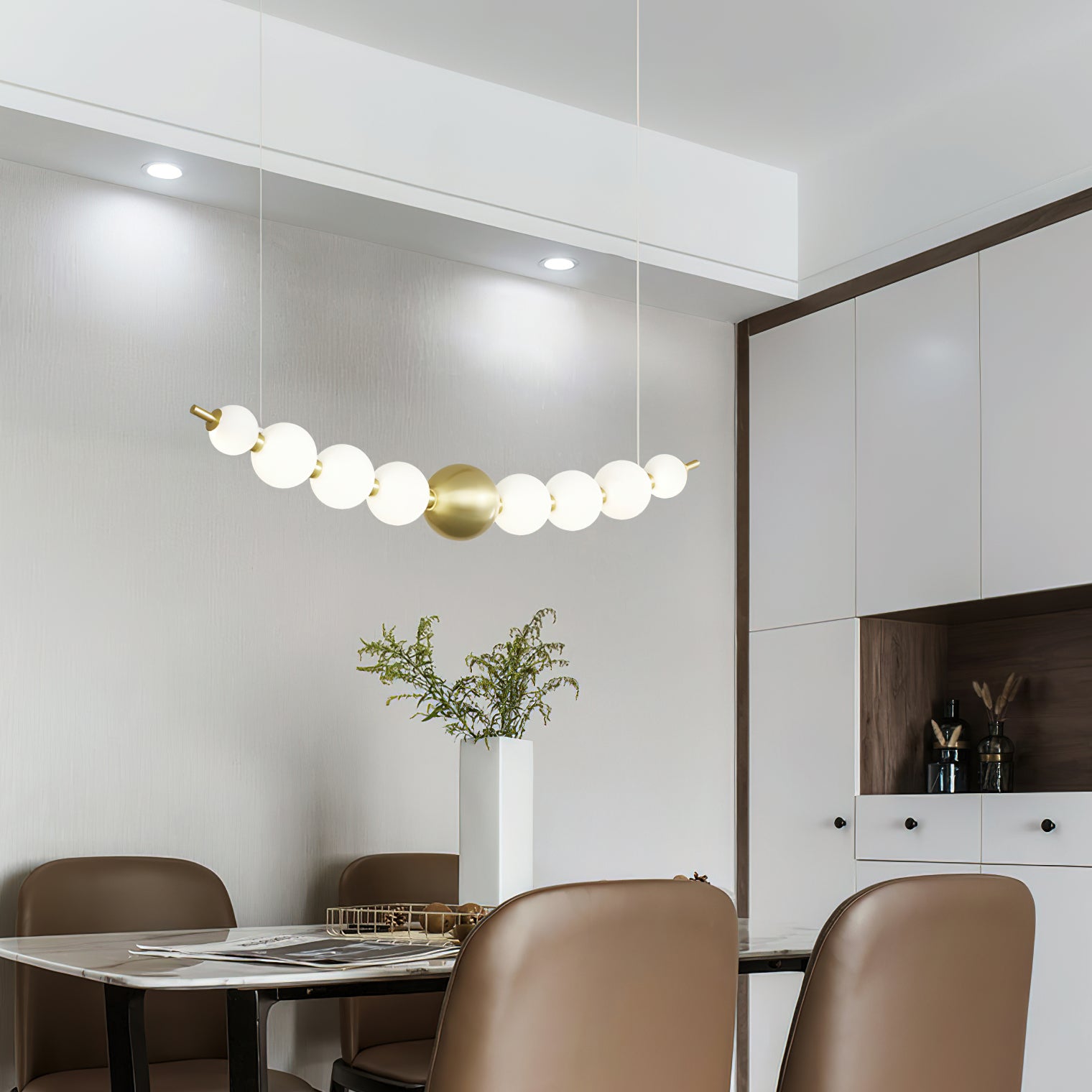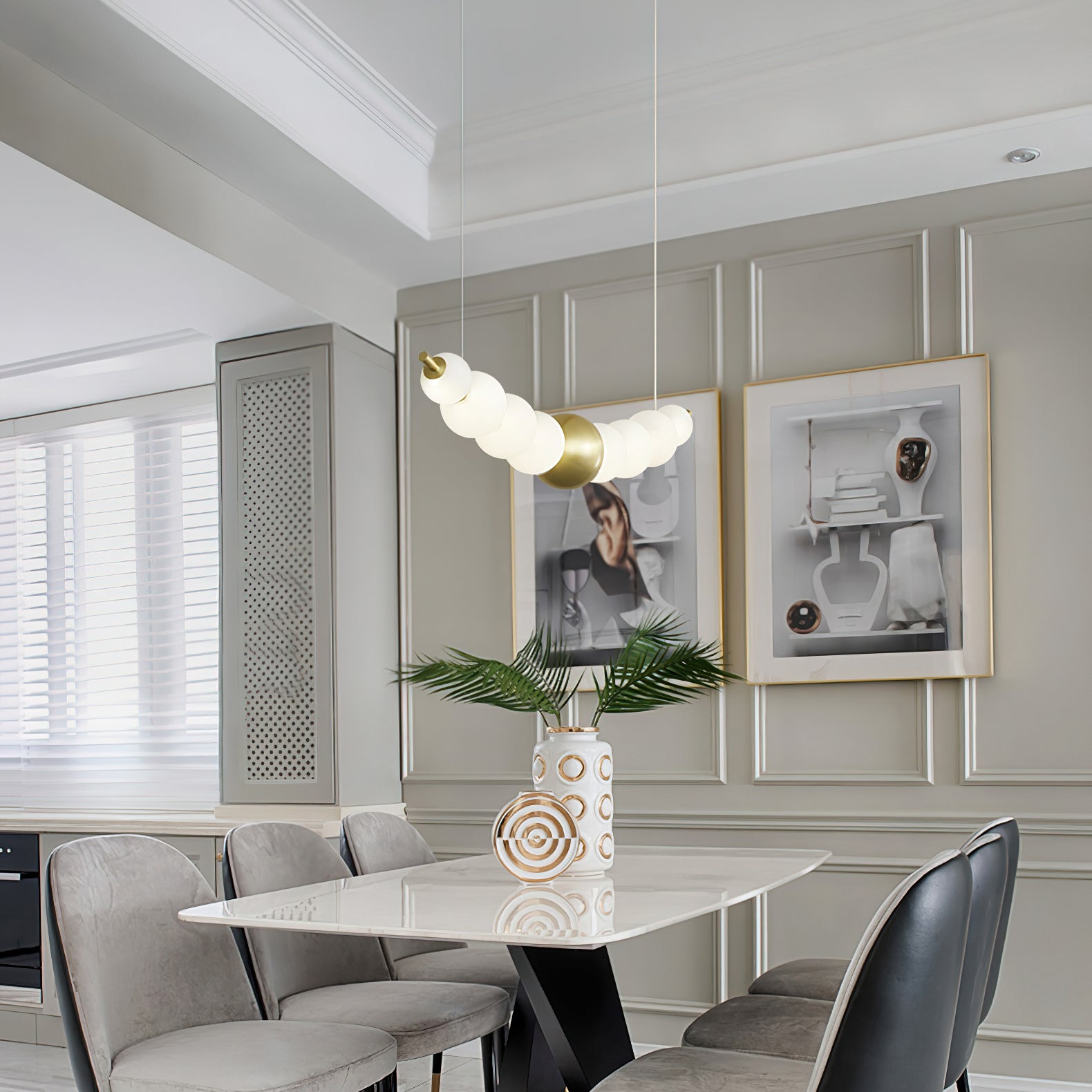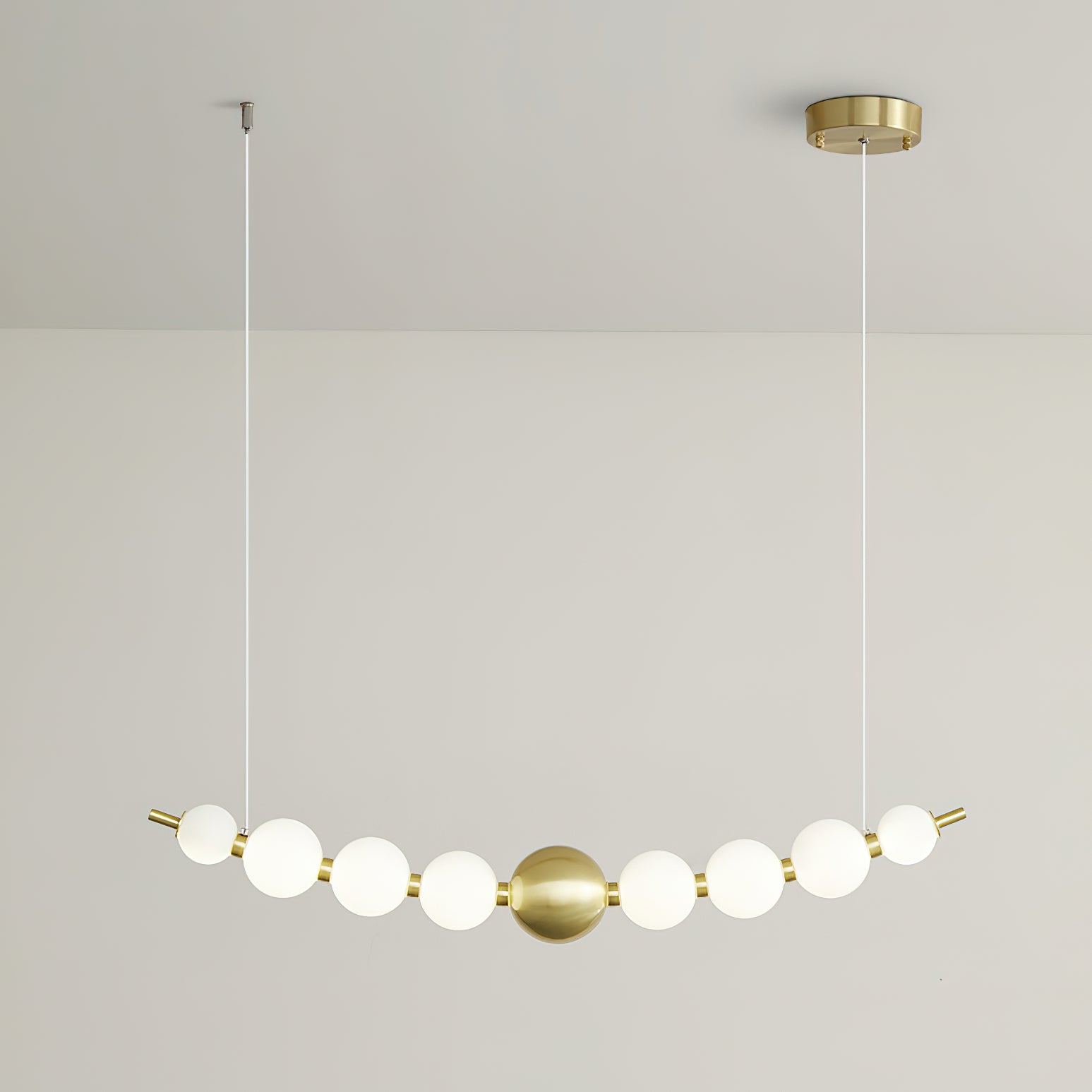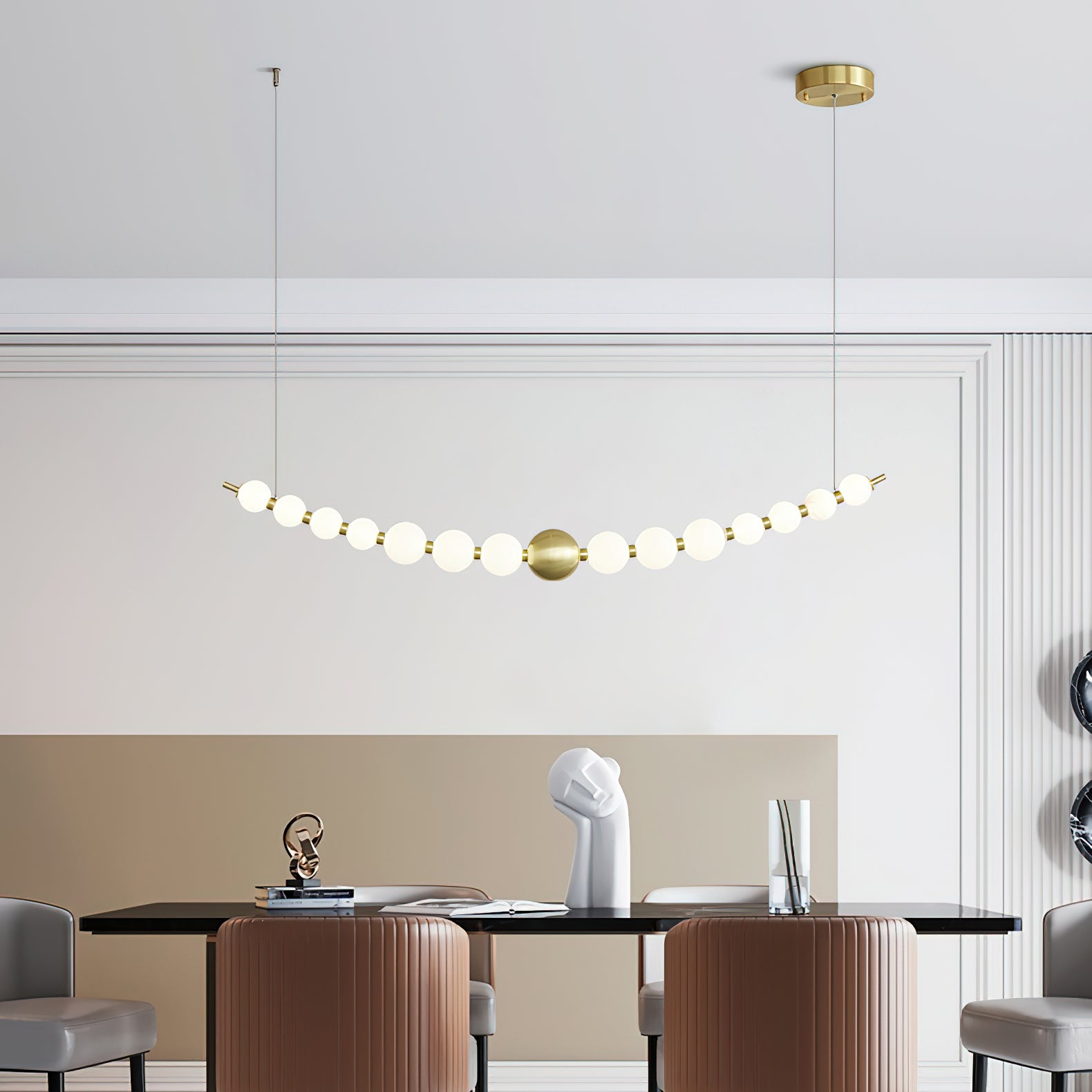 Elevate your home decor with our Pearl Necklace Chandelier from Mooijane. Made from high-quality acrylic and copper, this elegant chandelier will add a touch of sophistication to any room. Easy to install and with a stunning pearl design, it's the perfect addition to your home decor collection. Transform your space with this beautiful chandelier.
