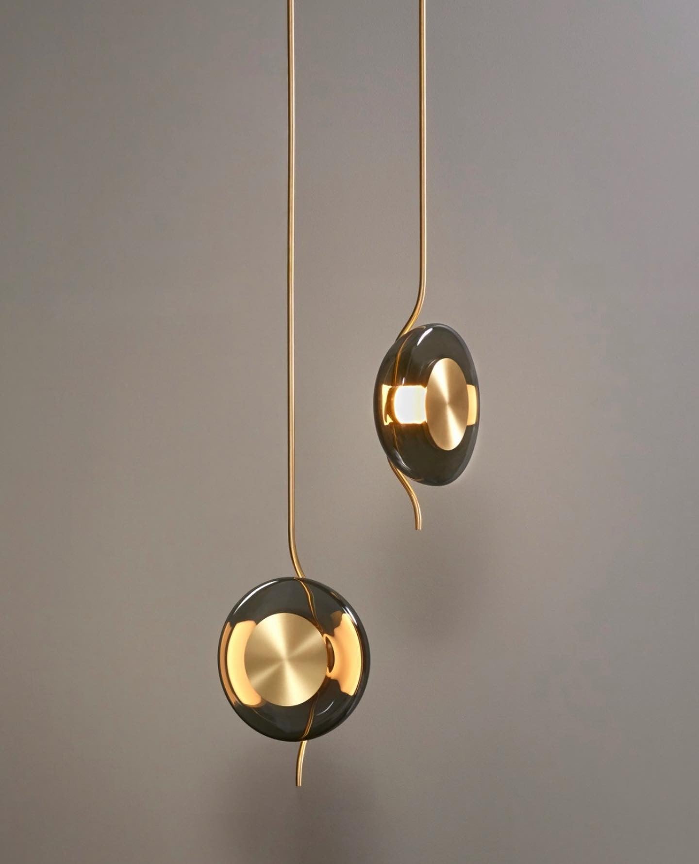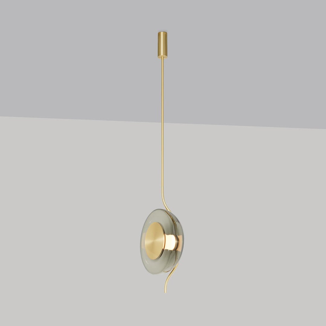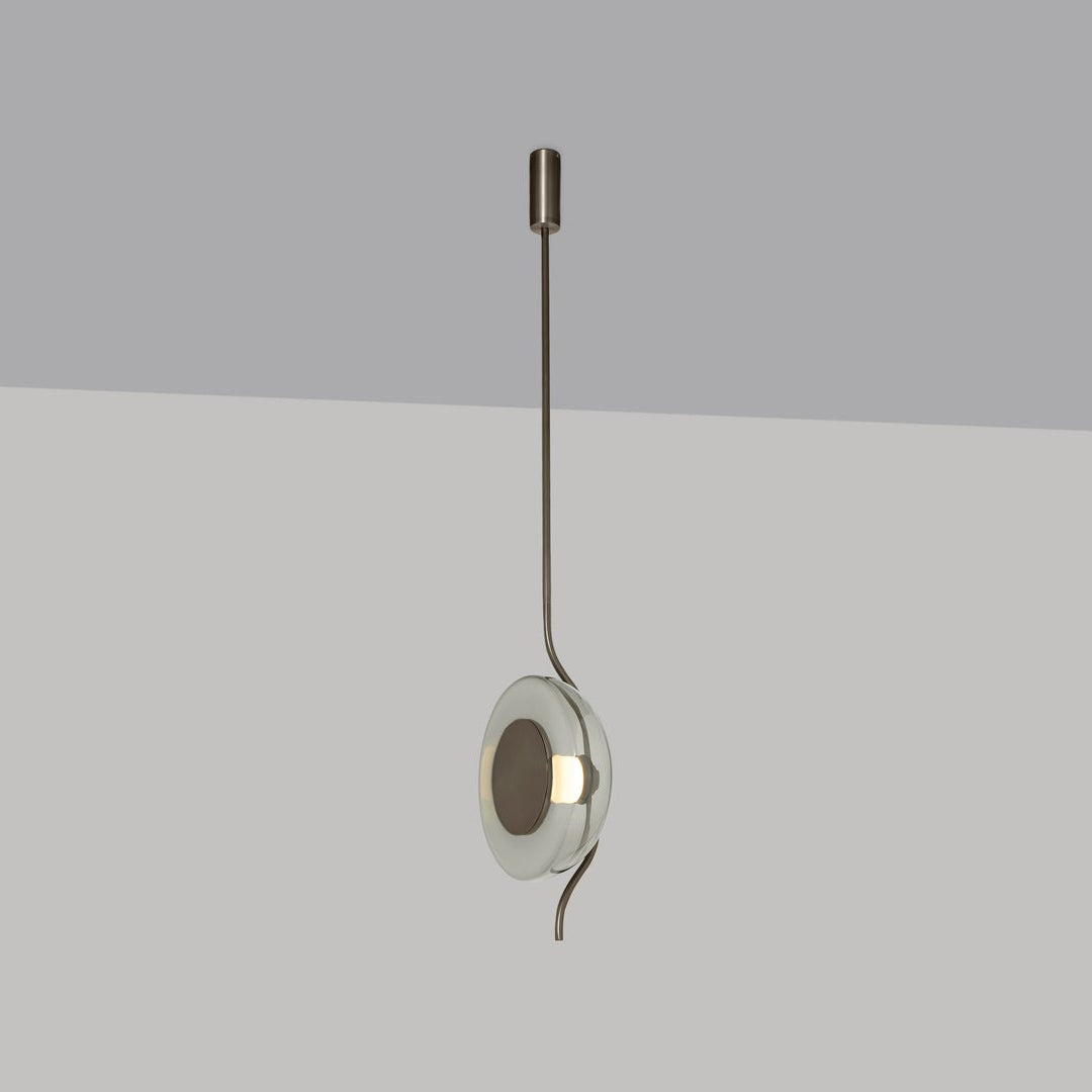 Balance and refinement are the key elements of the pendulum collection, inspired by the timepiece, with its mesmerizing and hypnotic qualities. The pendulum collection emanates light, which appears to oscillate in concentric bands from the light source, encased and diffused by the mouth-blown, curved glass.