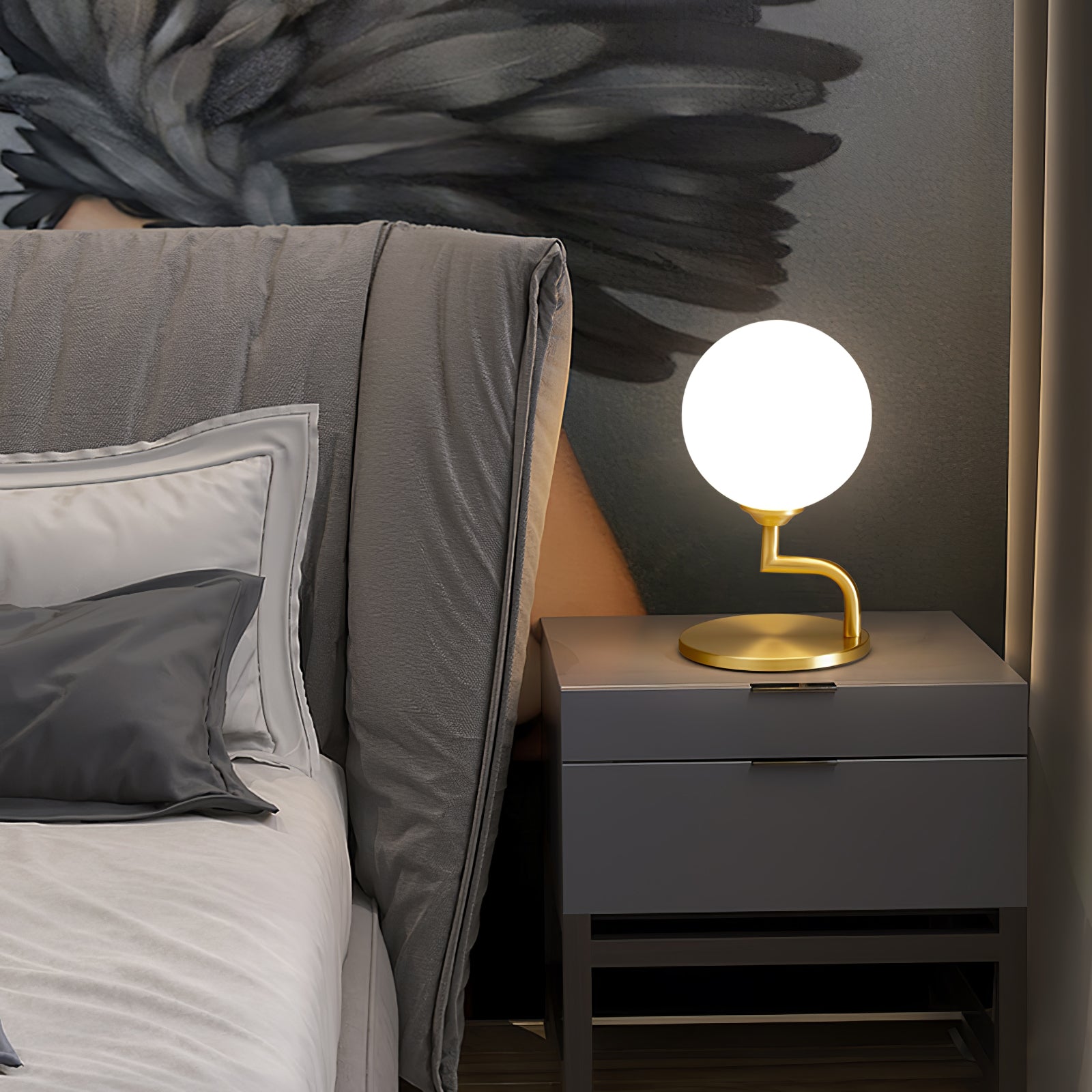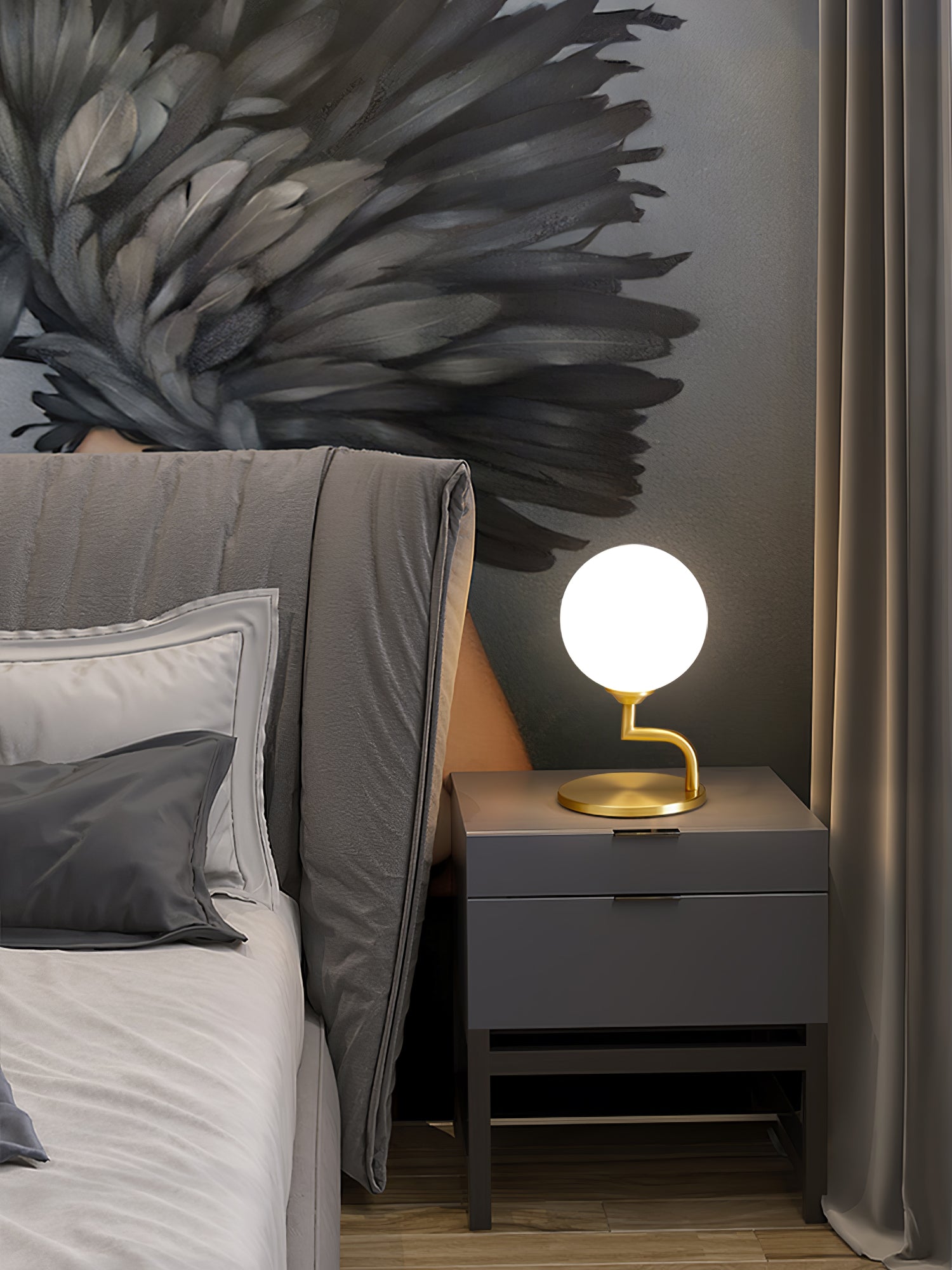 The Penelope Table Lamp is a creative and romantic design. With the big bulb supported by the copper base, the lamp is like a big toffee. It is made of high-quality copper and glass materials, and its finish of it is Milky White. The designer remakes the structure of the lamp to highlight the texture of all copper and make the furniture even better. The hand-blown glass lampshade is also a big plus.