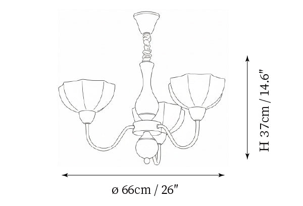 - 3-Lights Size: Dia 66cm x H 37cm / ∅26″ x H 14.6″