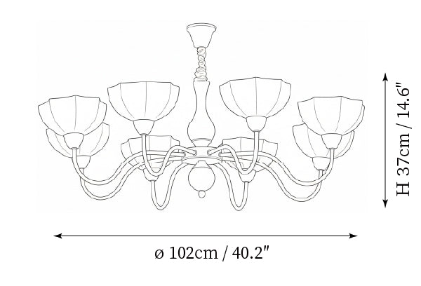 - 8-Lights Size: Dia 102cm x H 37cm / ∅ 40.2″ x 14.6″