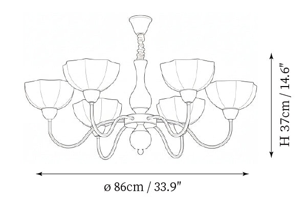 - 6-Lights Size: Dia 86cm x H 37cm / ∅ 33.9″ x H 14.6″