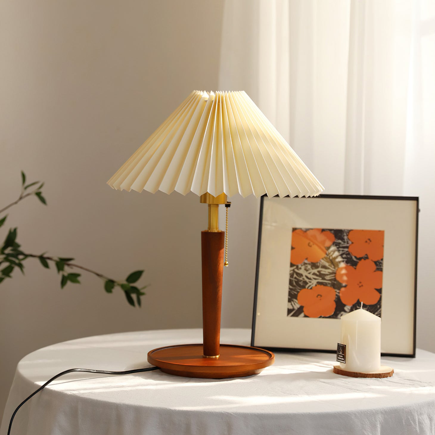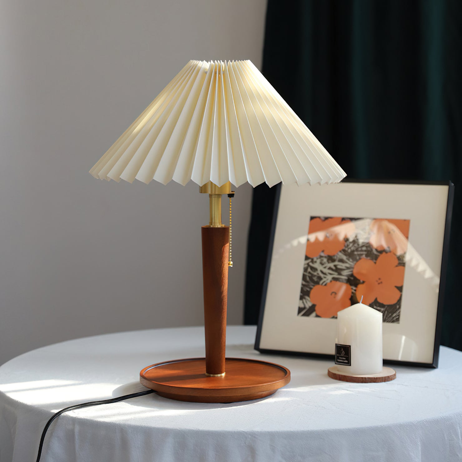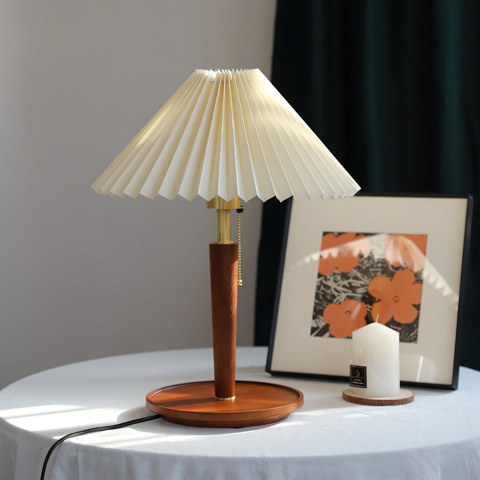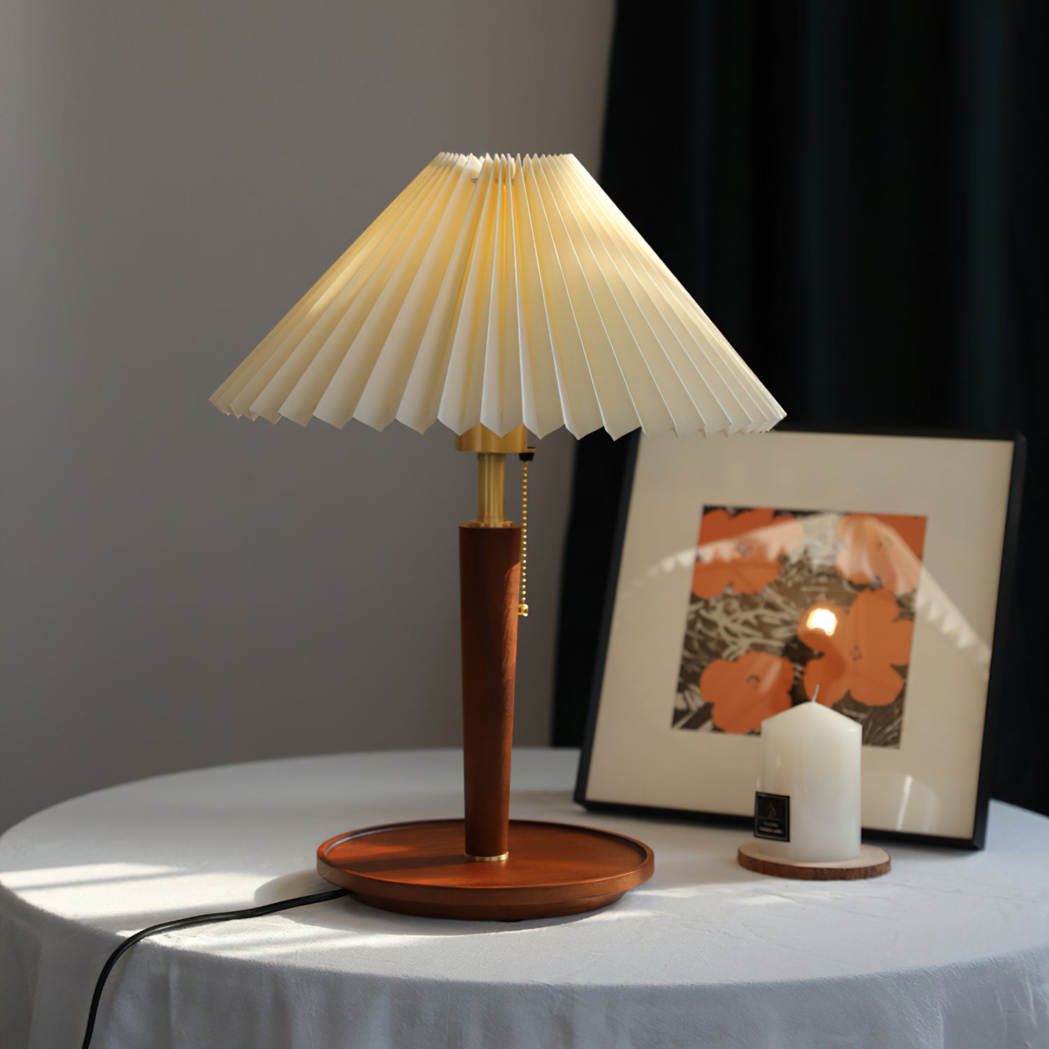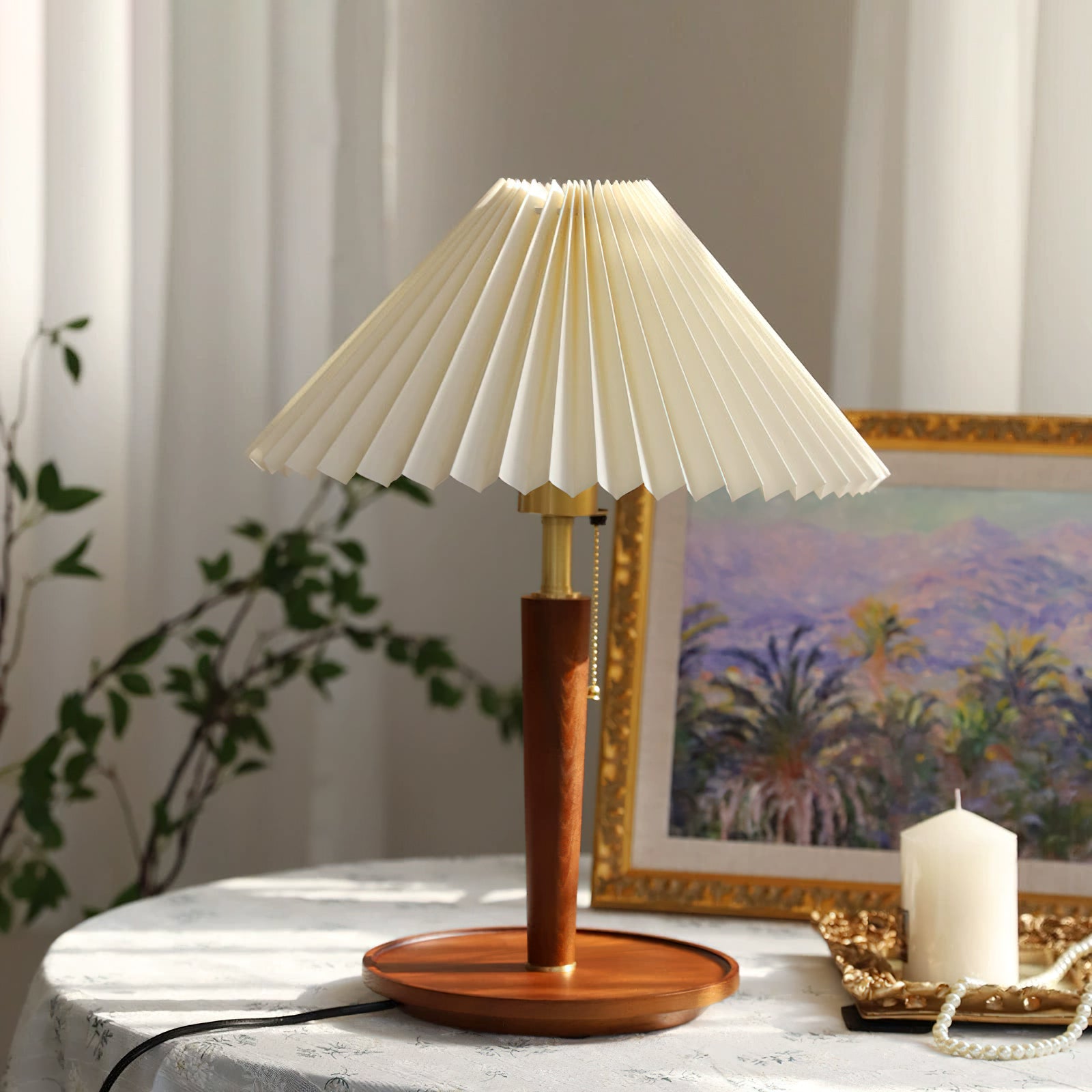 The Perla Pleated Table Lamp by Mooijane features a timeless pleated shade that brings an elegant, inviting atmosphere to any room. Its copper lamp holder and solid wood base are seamlessly integrated, combining warmth and durability. Emitting a soft, relaxing light, it’s perfect for reading, unwinding, or adding a refined accent to bedrooms, living rooms, or study spaces.