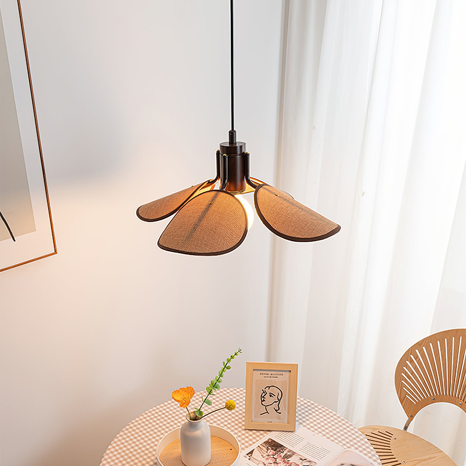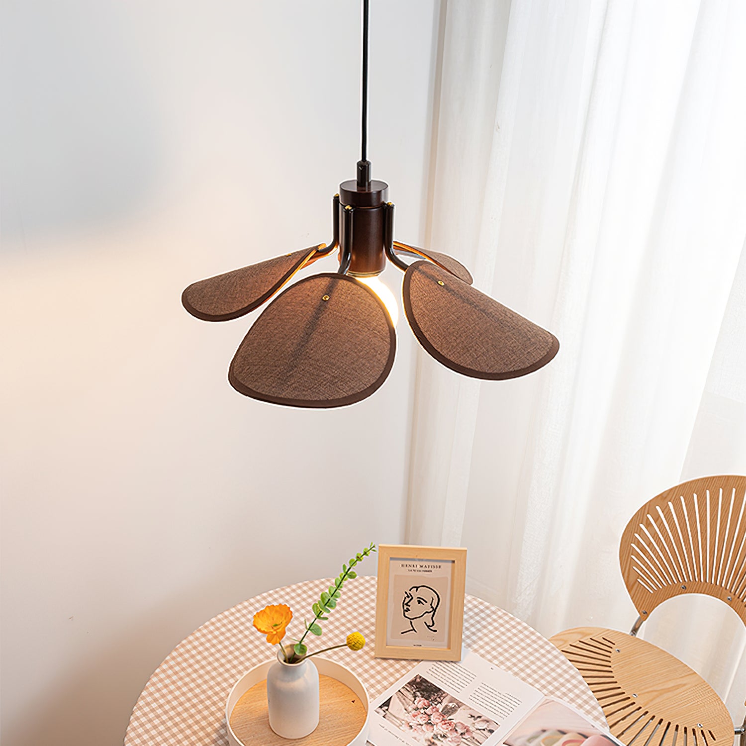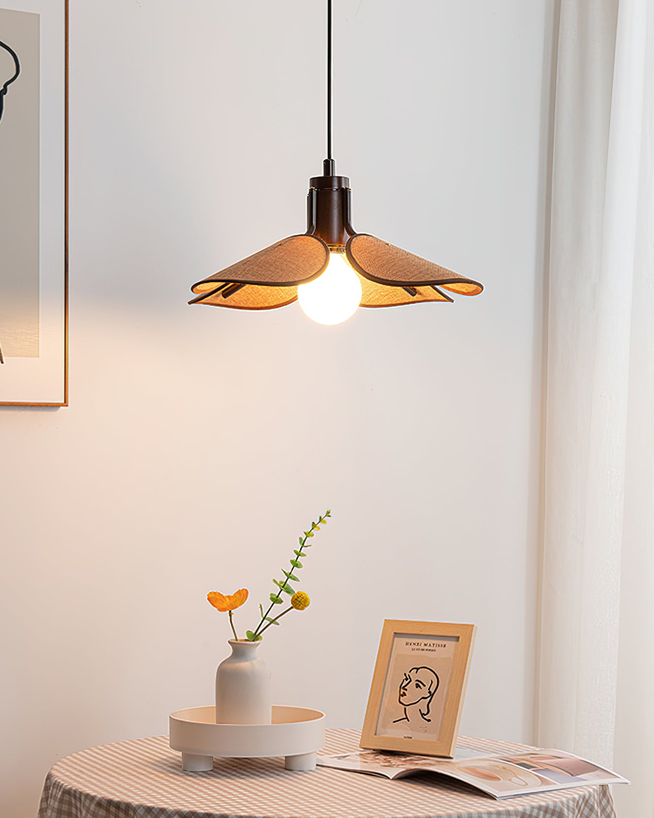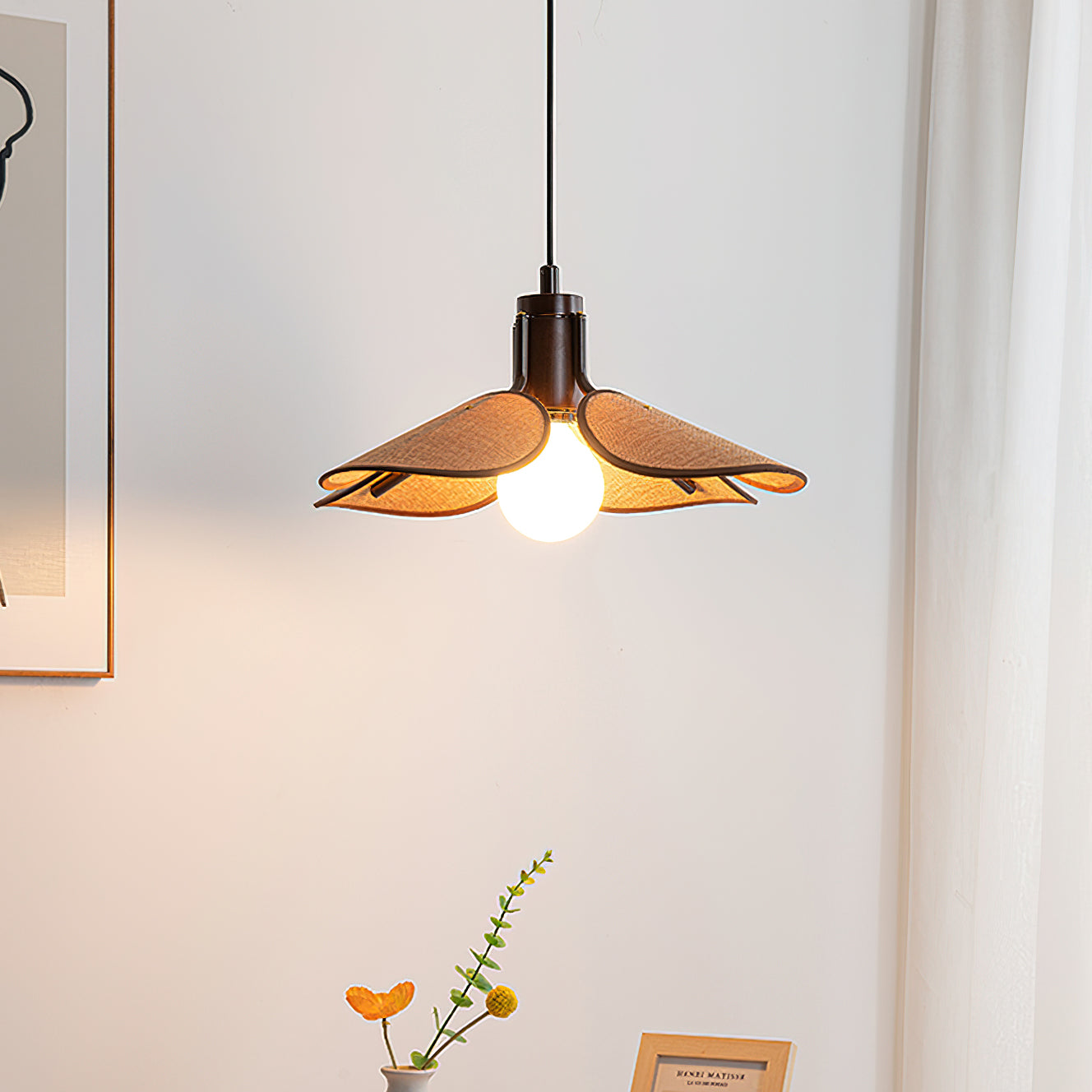 Upgrade your home with the Petal Bloom Pendant Light from Mooijane. With its intricate floral design and delicate fabric shade, this lamp exudes vintage elegance and adds warmth to any room. Elevate your space with this sophisticated and exclusive statement piece.