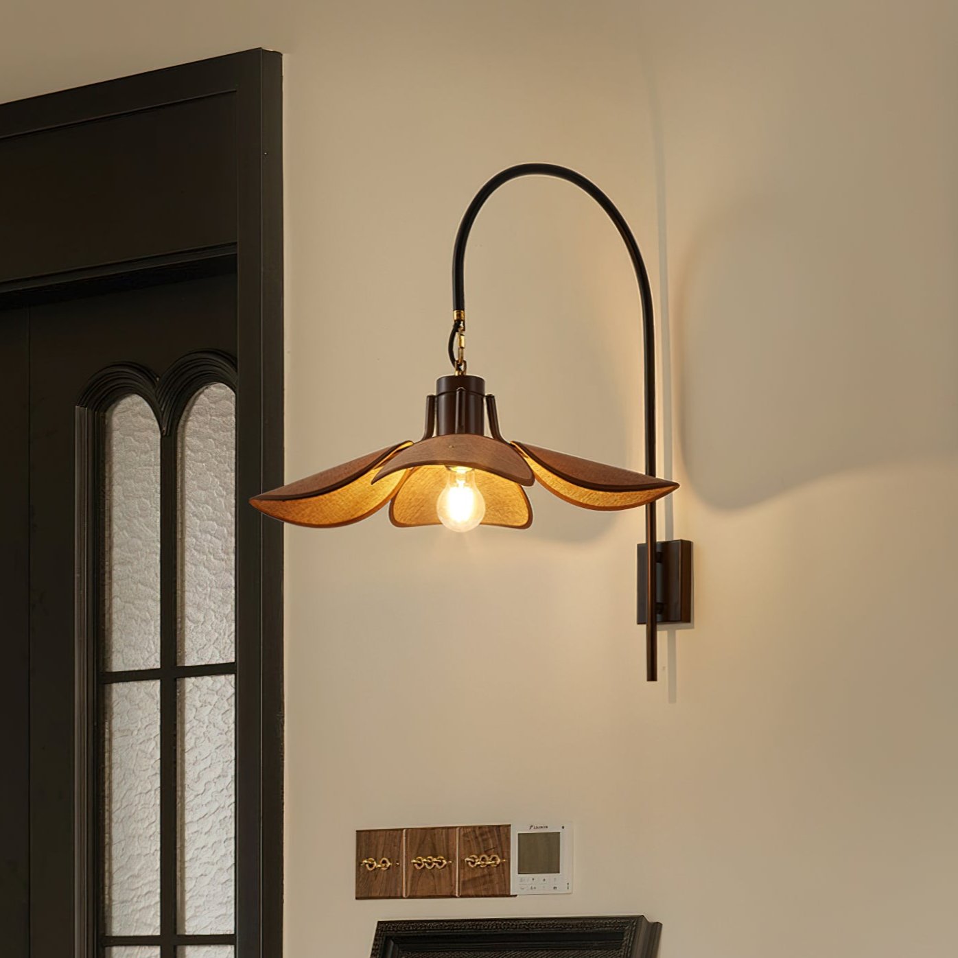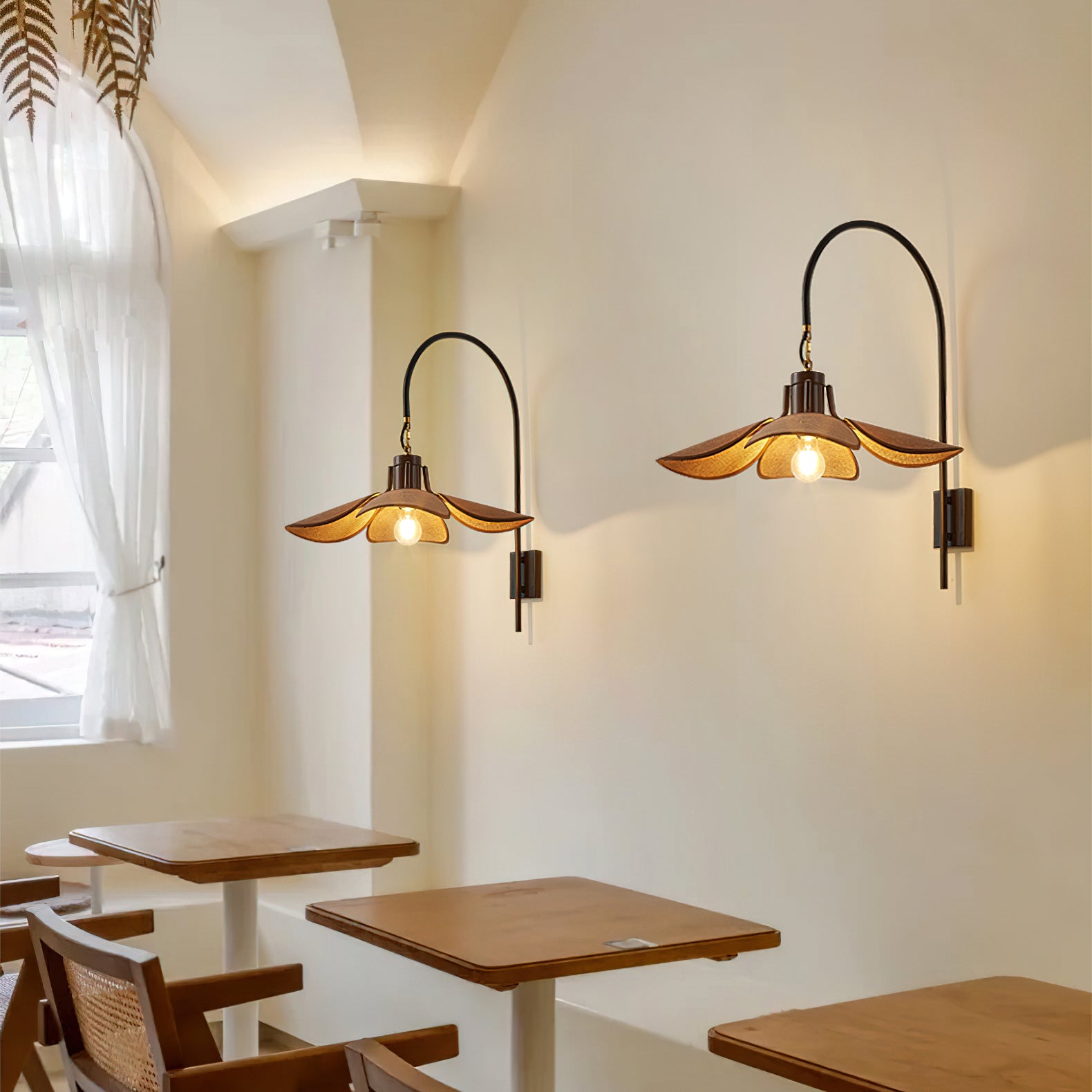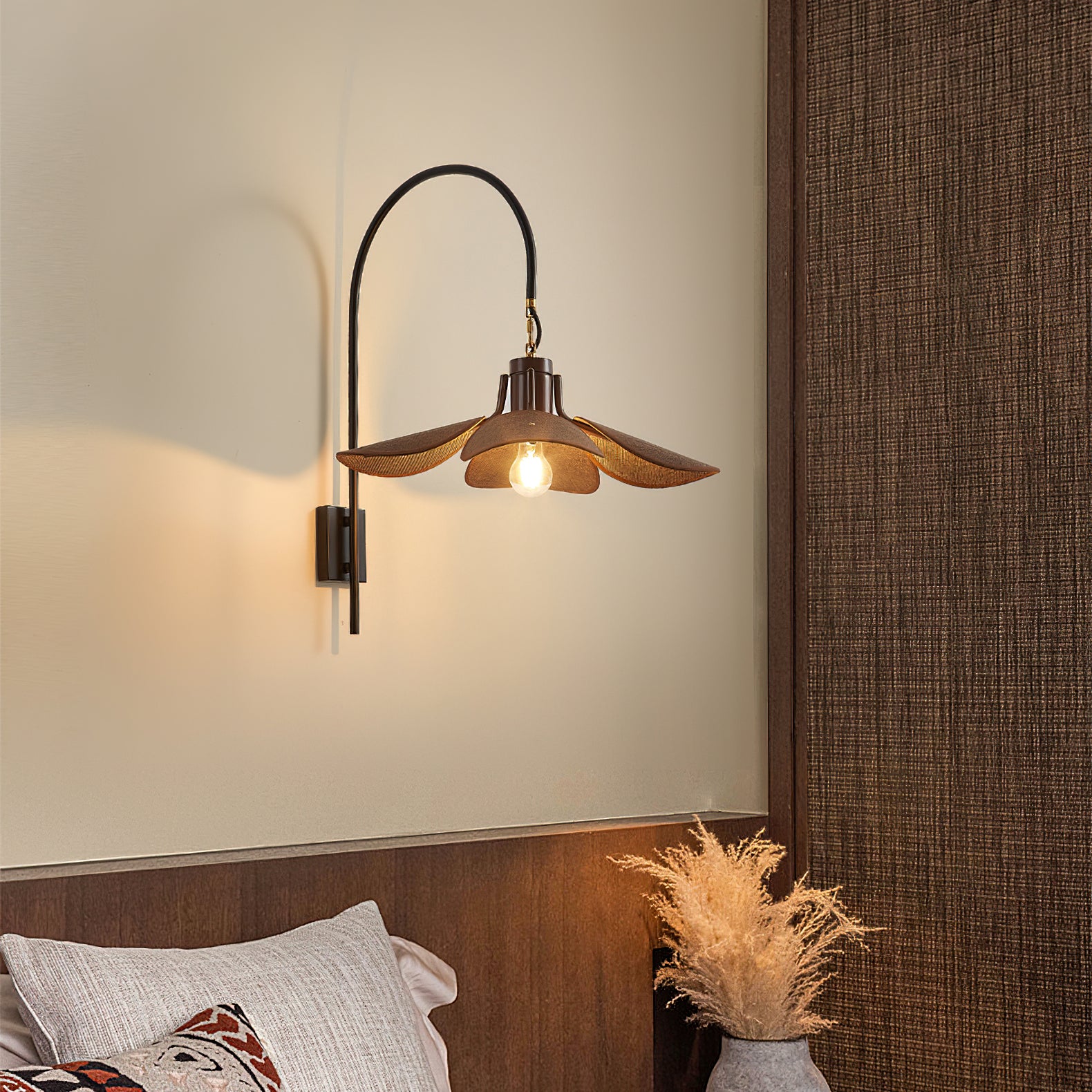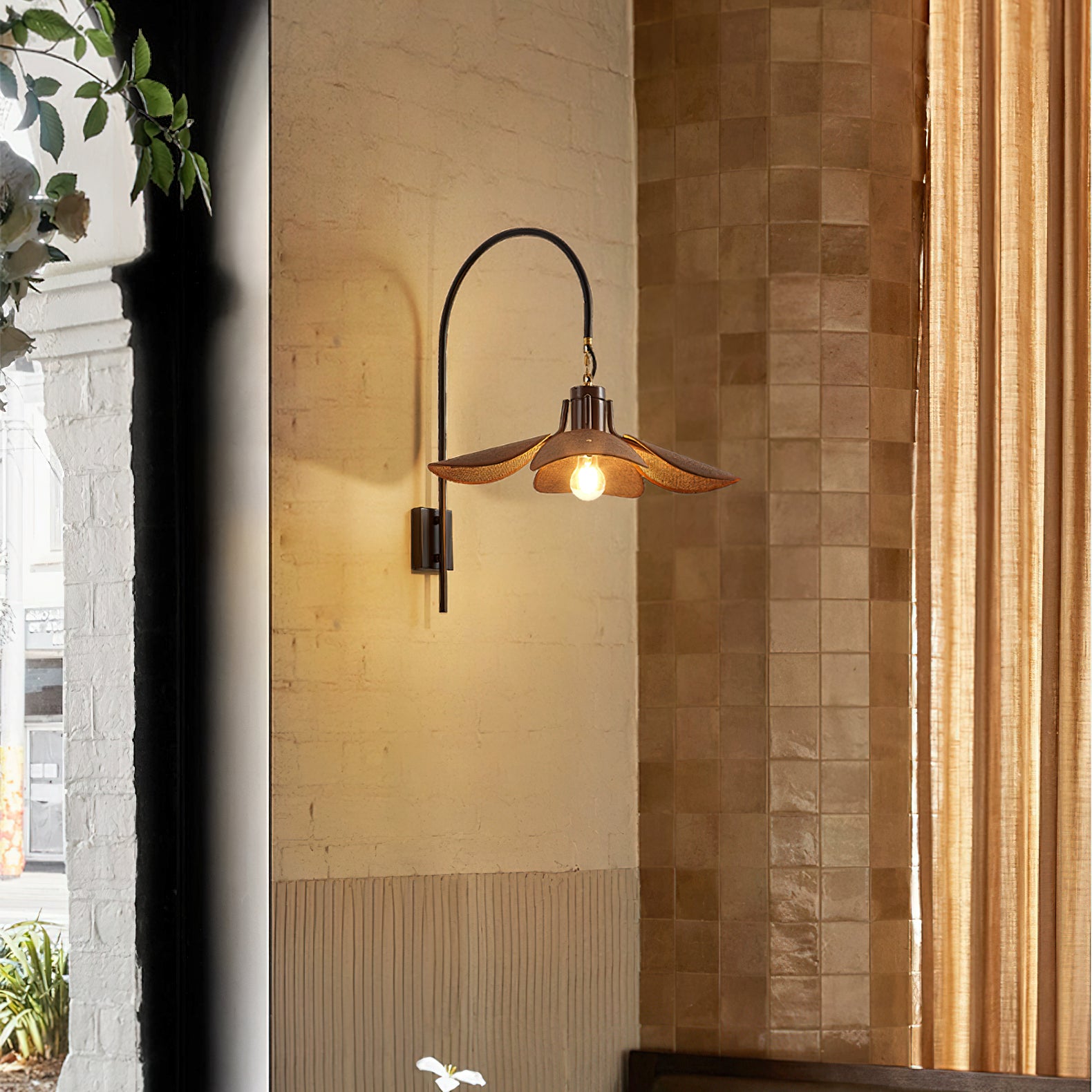 Elevate your home decor with the Petal Bloom Wall Lamp from Mooijane. With its delicate chestnut-inspired design, this lamp brings a touch of vintage elegance to any room. The soft fabric shade and intricate floral details add warmth and sophistication, making it the perfect addition to your space.