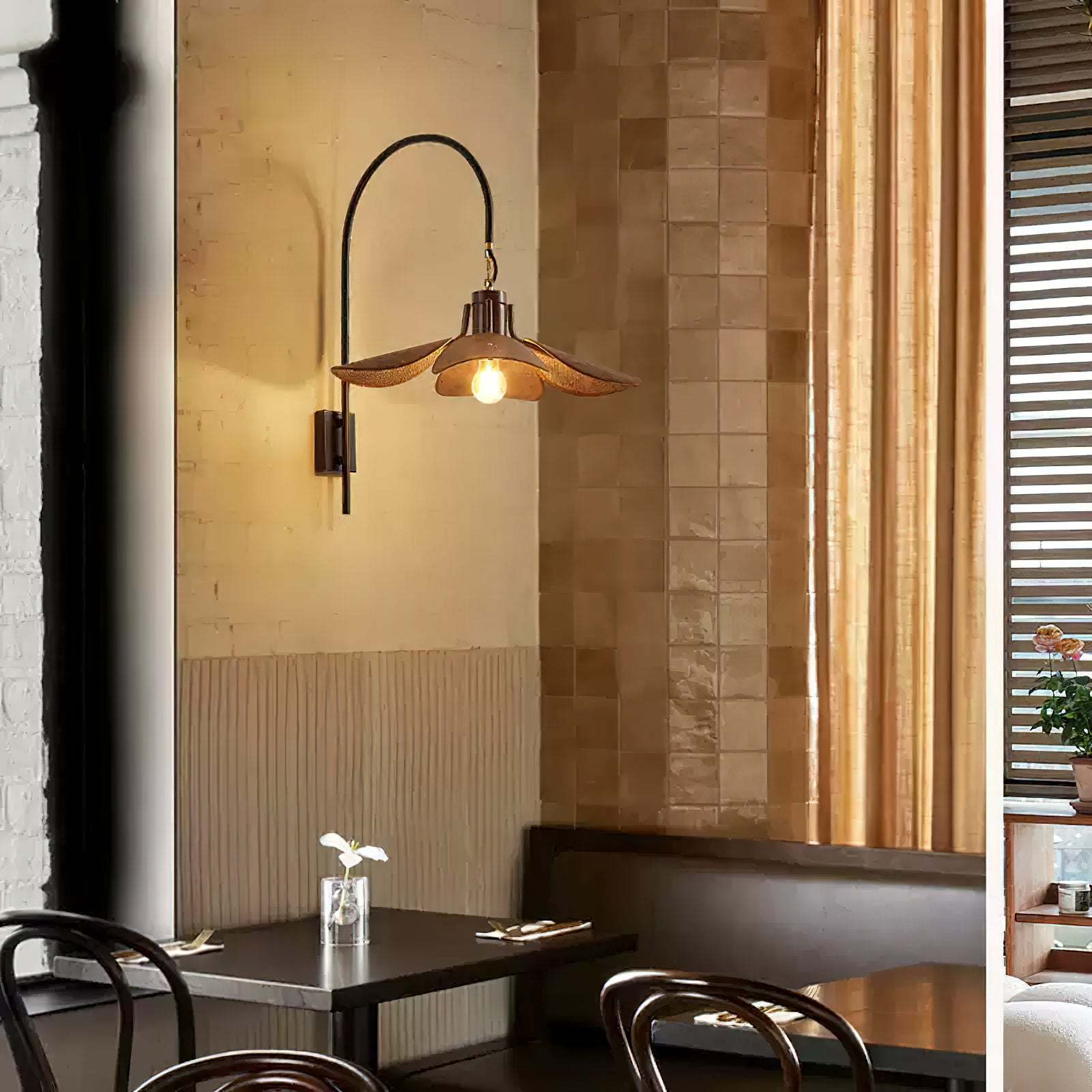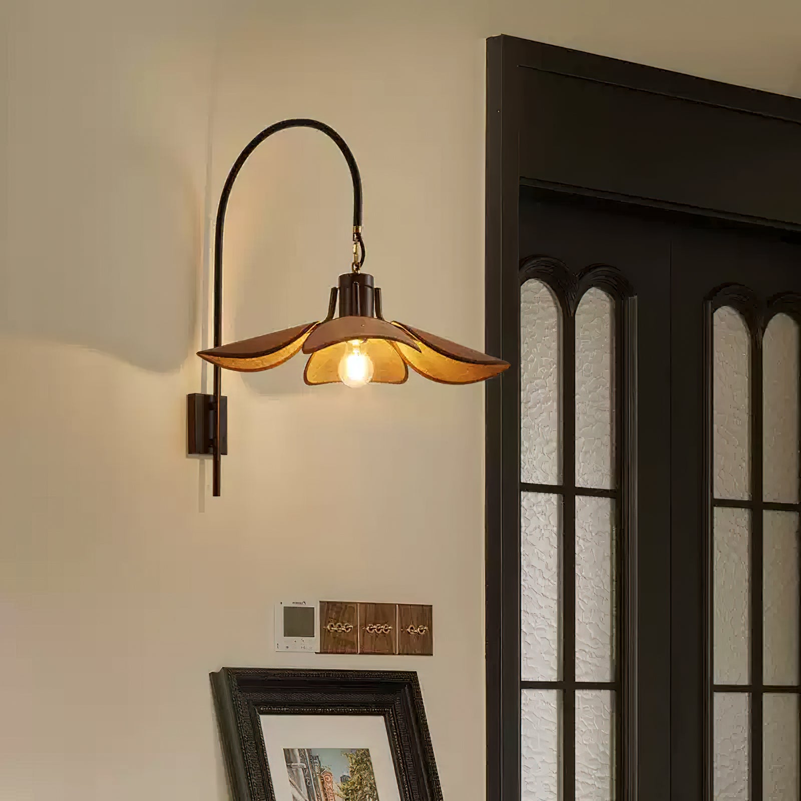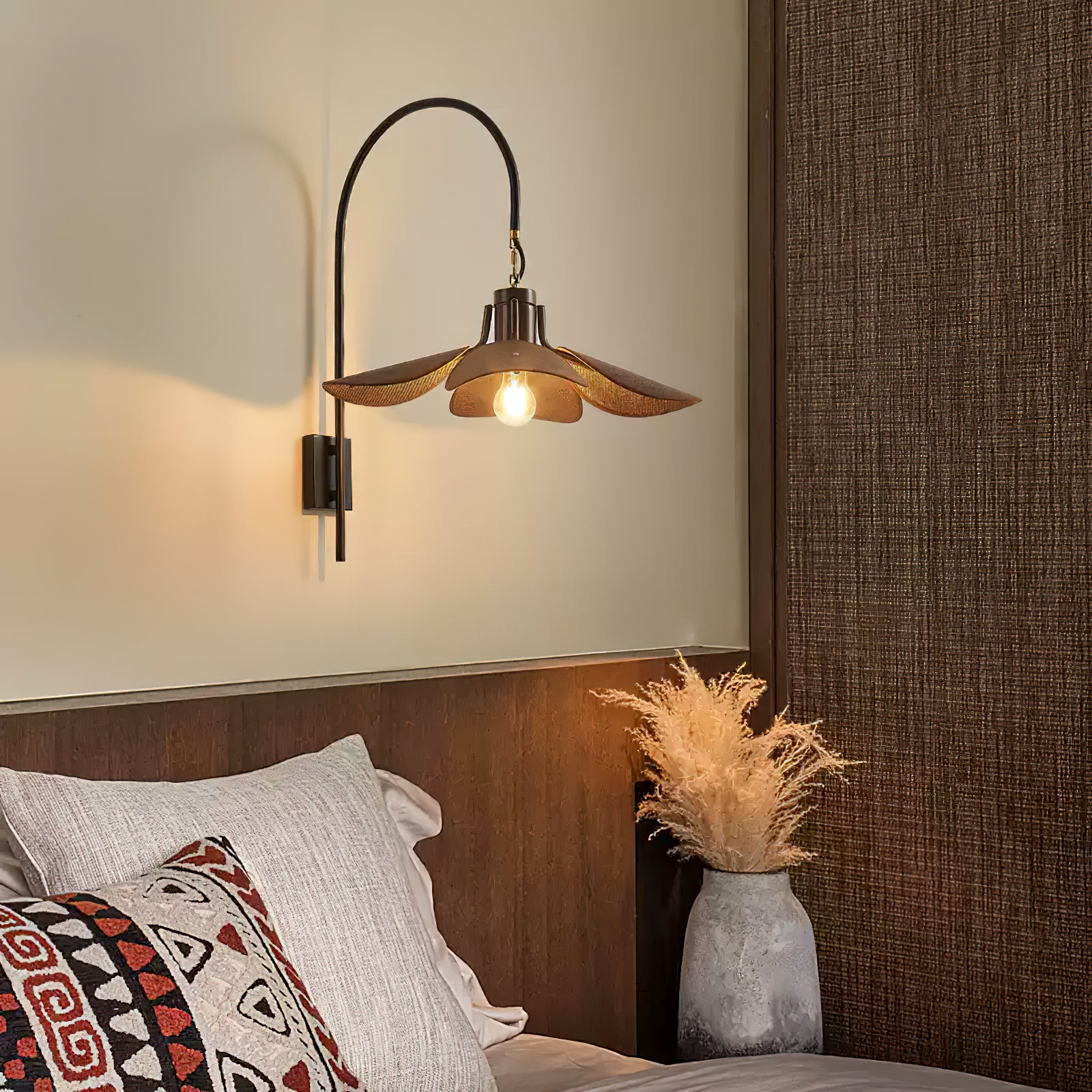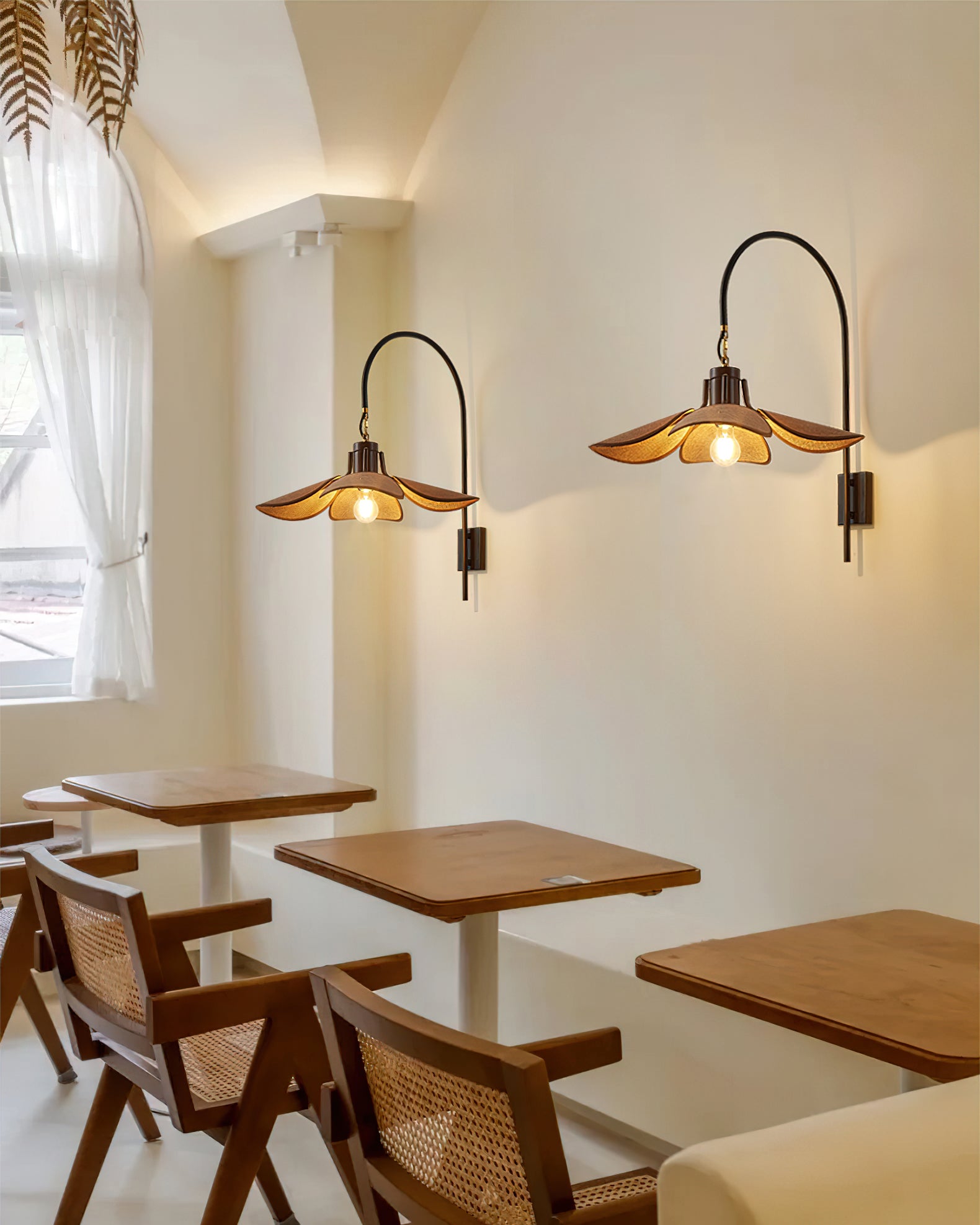Elevate your home decor with the Petal Bloom Wall Lamp from Mooijane. With its delicate chestnut-inspired design, this lamp brings a touch of vintage elegance to any room. The soft fabric shade and intricate floral details add warmth and sophistication, making it the perfect addition to your space.