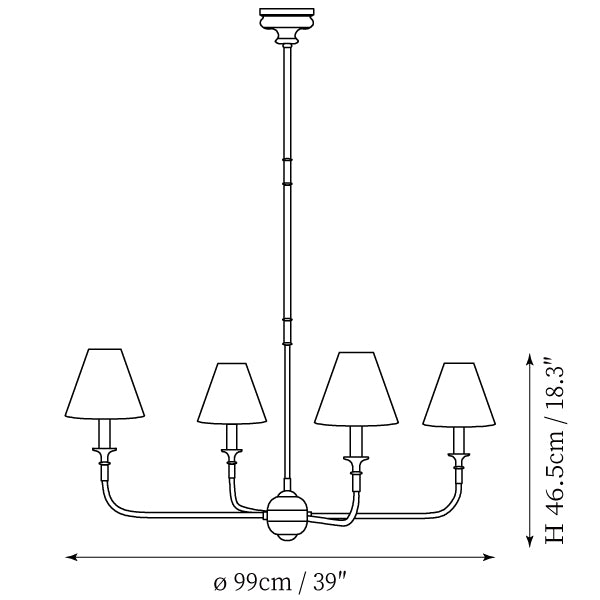 - 4-Lights Size: Dia 99cm x H 46.5cm / ∅ 39″ x H 18.3"