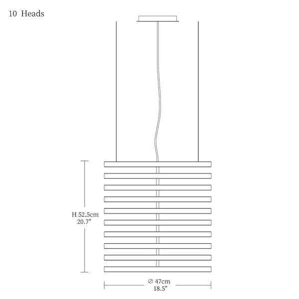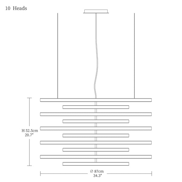 - 10heads size: Dia 87cm x H 52.5cm / L 34.3″ x W 20.7″