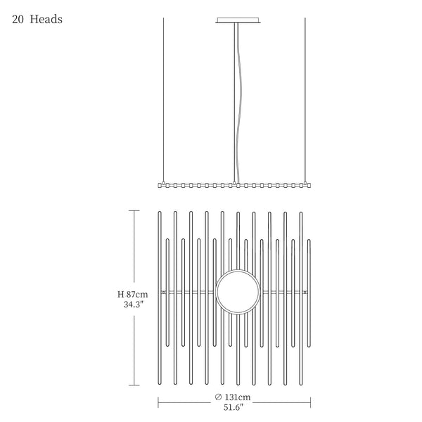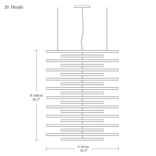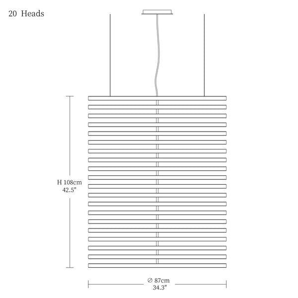 - 20heads size: Dia 87cm x H 108cm / L 34.3″ x W 42.5″