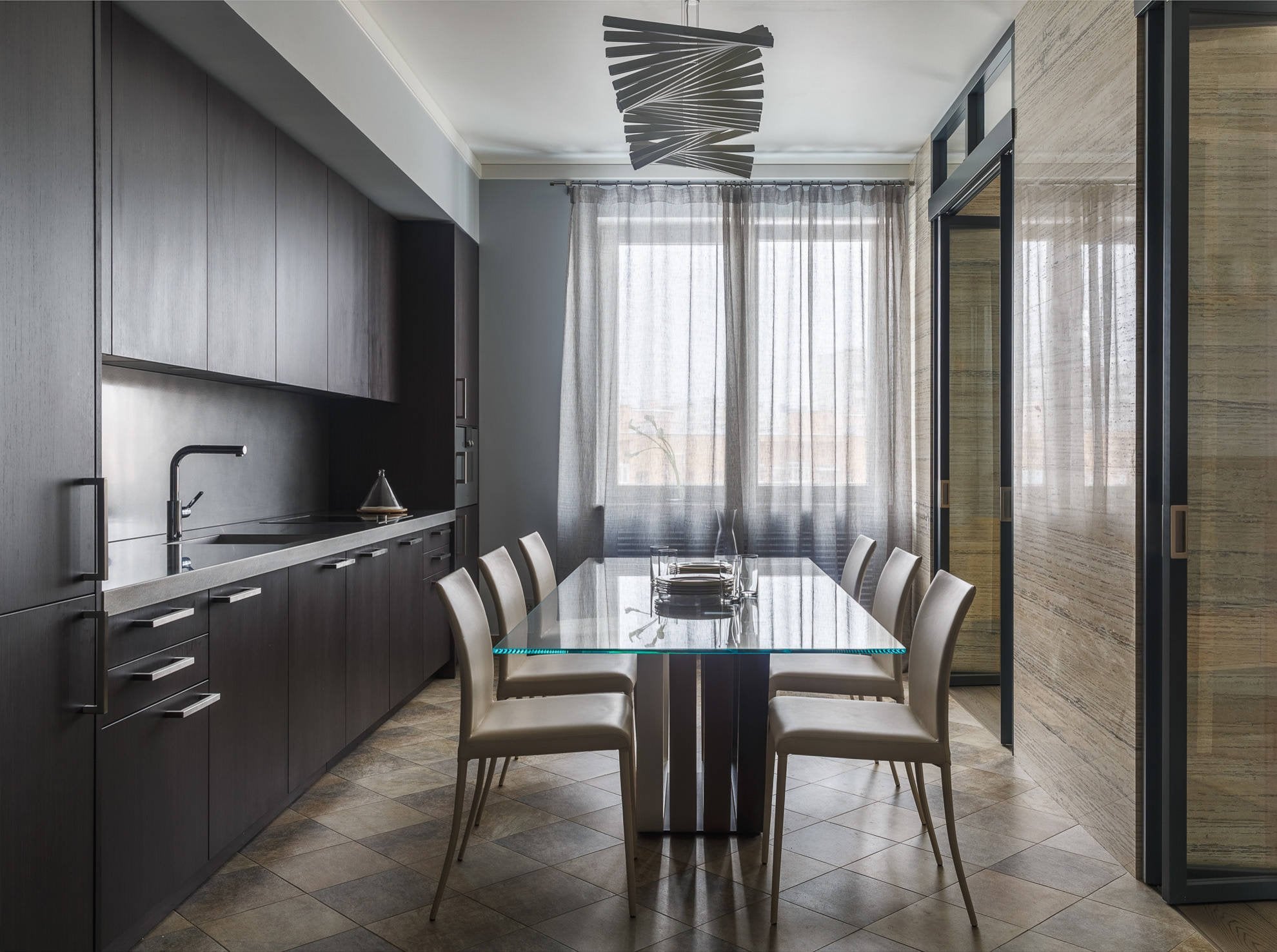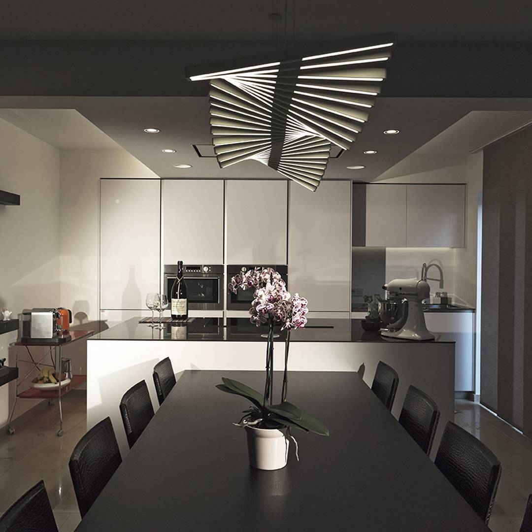 Rhythm is a pendant lamp with a groundbreaking design, allowing infinite configurations thanks to modules of horizontal, short stickers. Designed by Arik Levy, it is available in two colors: off-white lacquer or matt black.