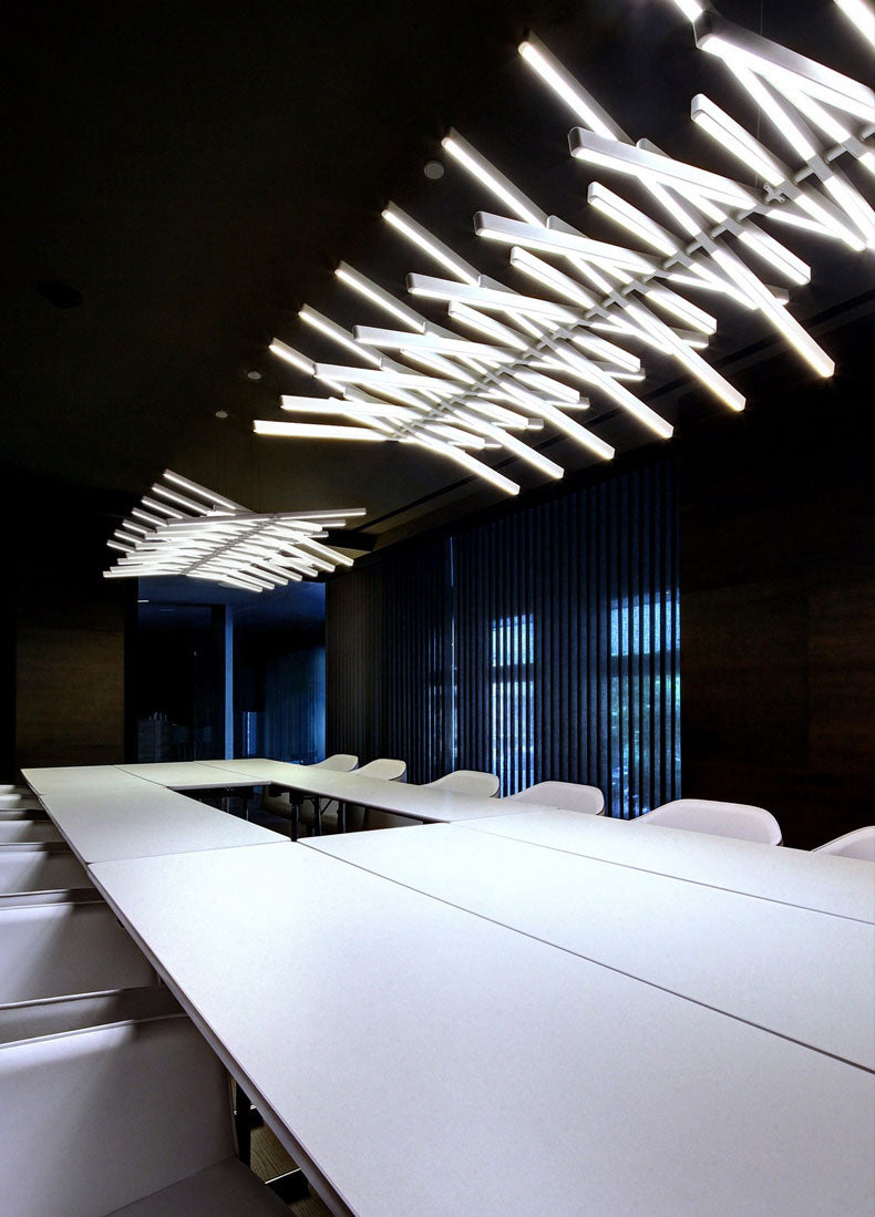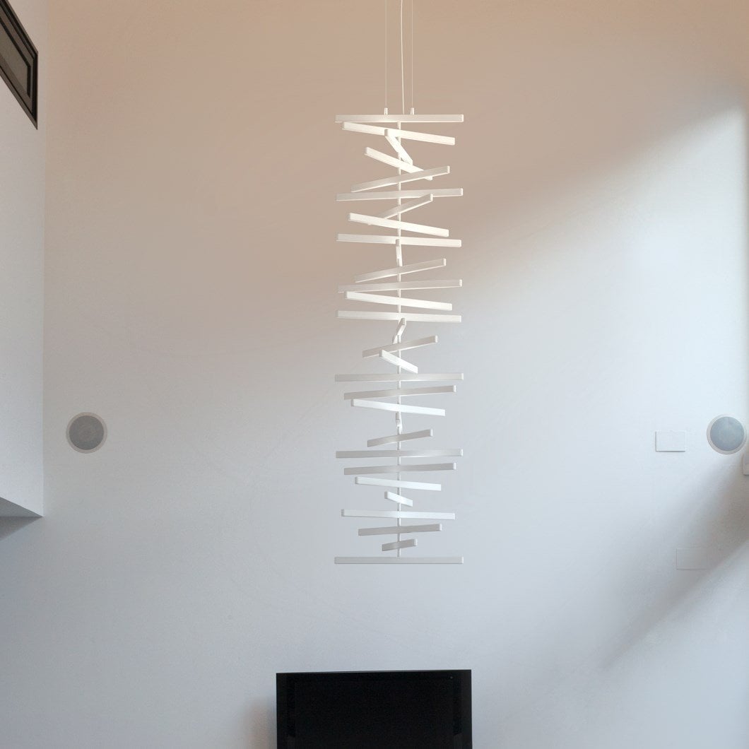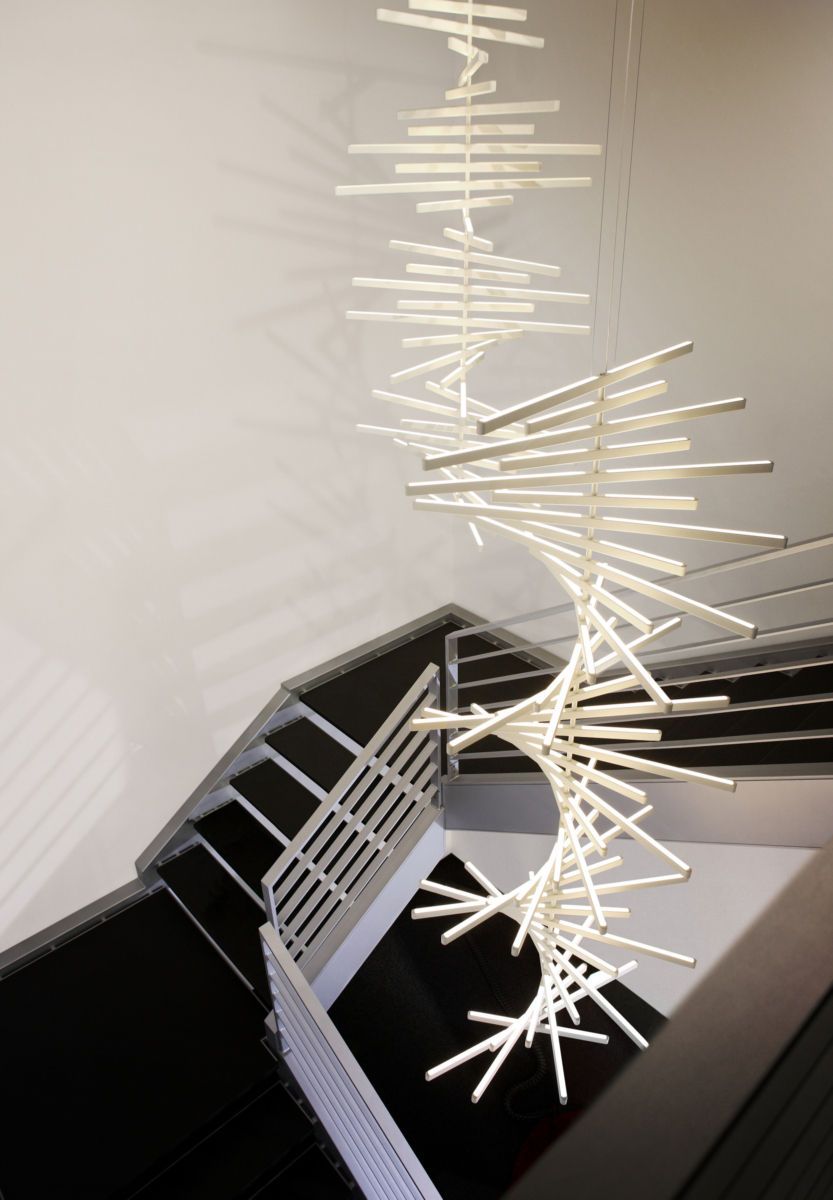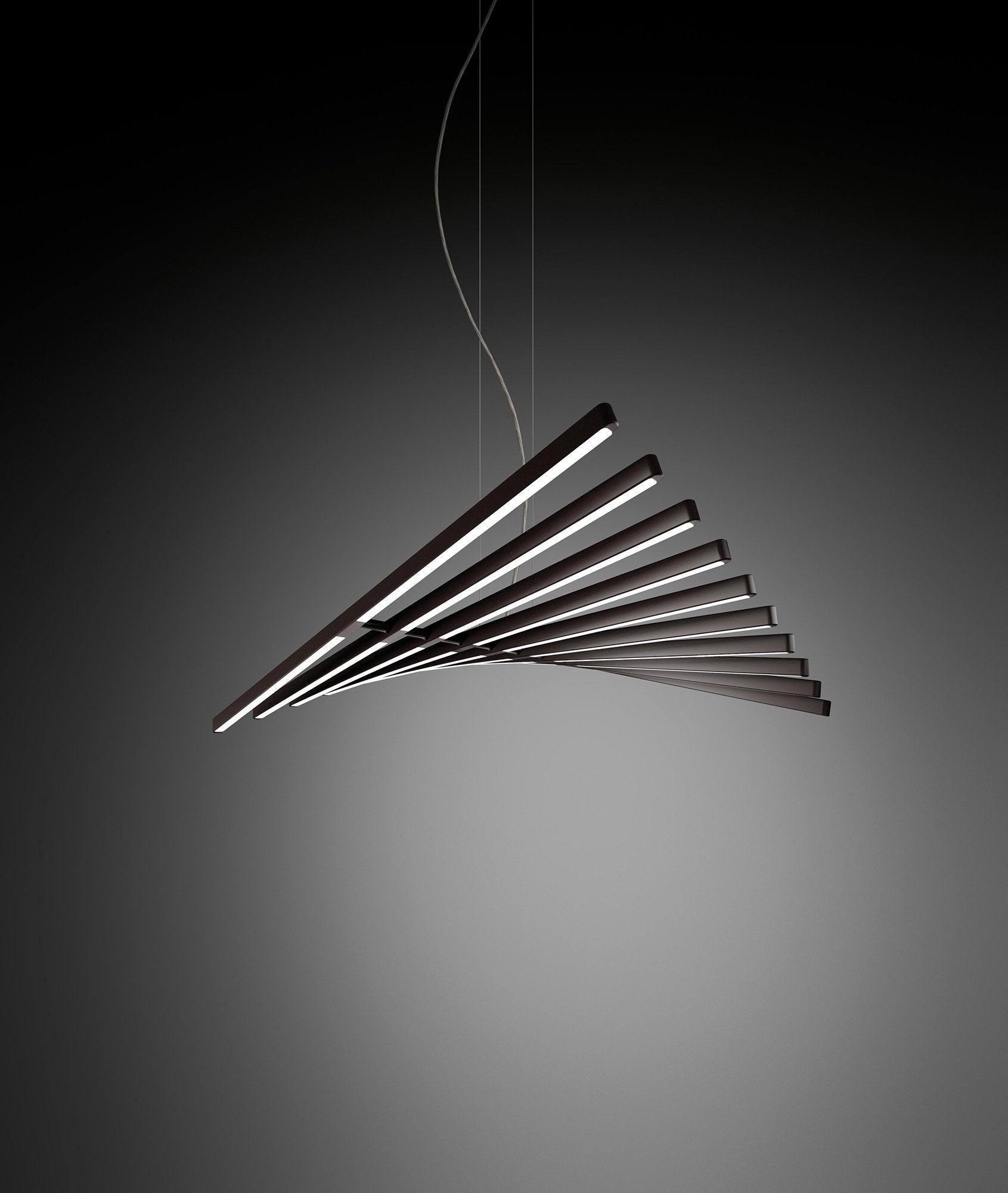 The Rhythm lamps are an Arik Levy design. The Rhythm collection is capable of adopting many configurations thanks to its rotation around a central axis which allows for free movement at an angle of its light sticks. This approach allows the Rhythm lamps to be configured into smooth waves or bespoke chaotic shapes.