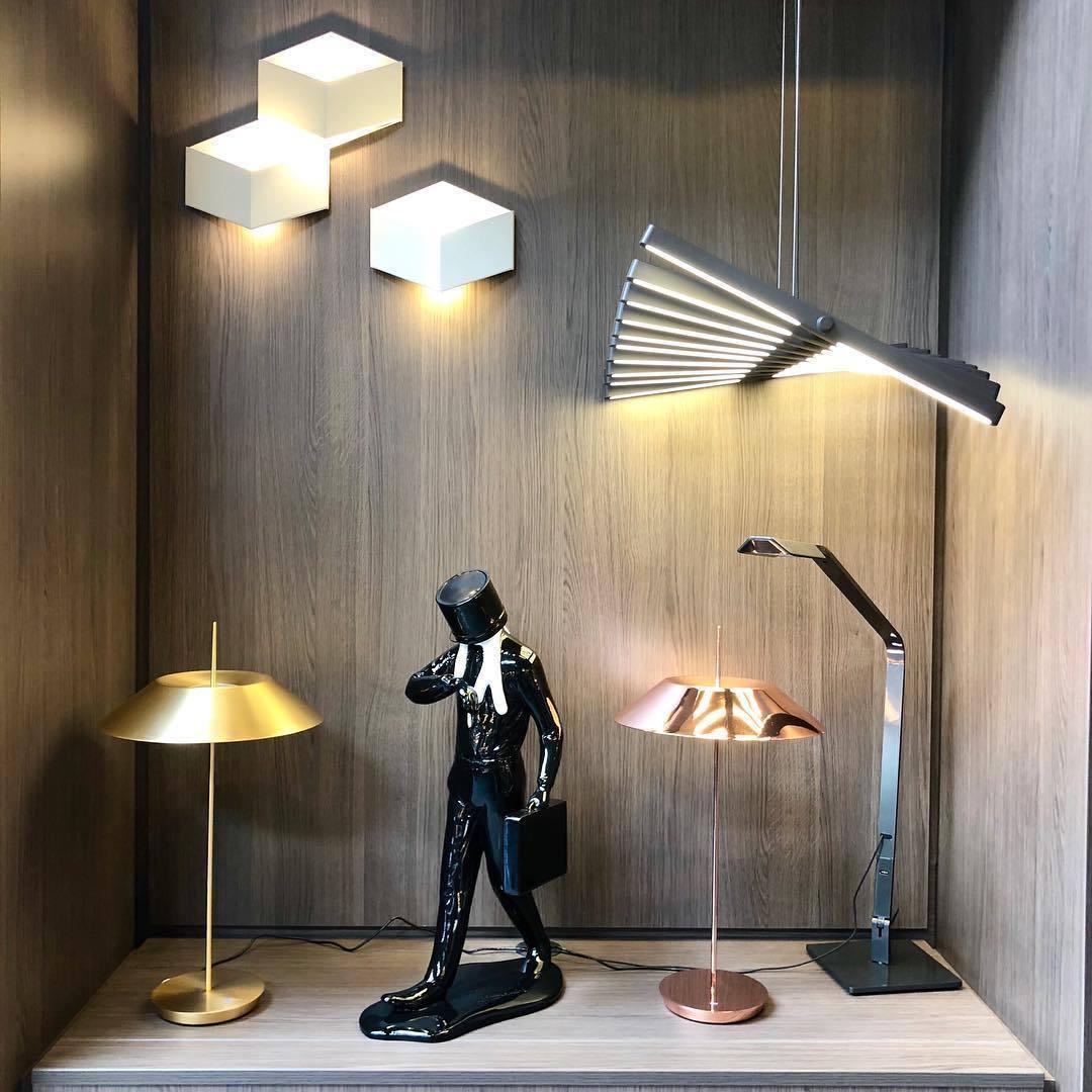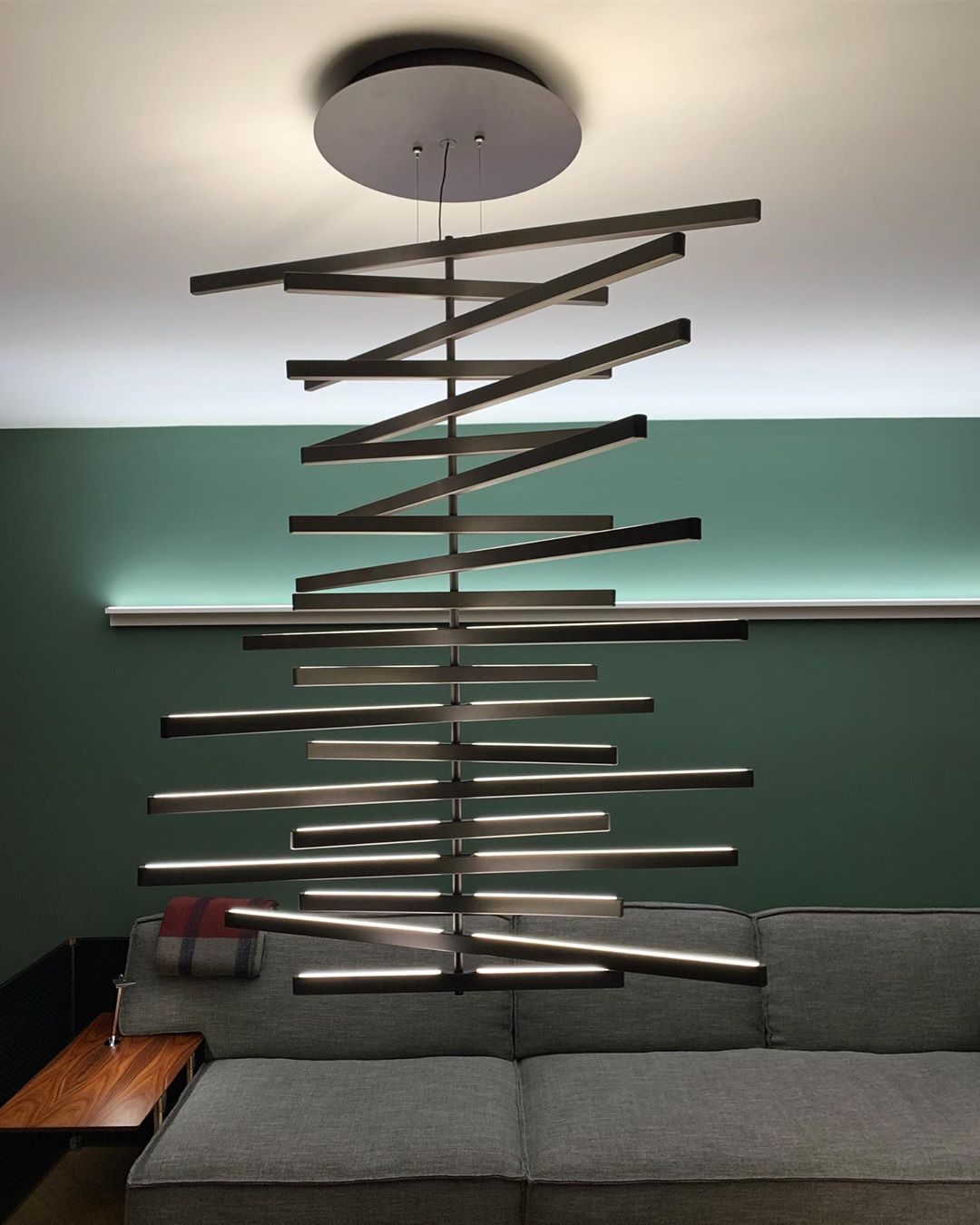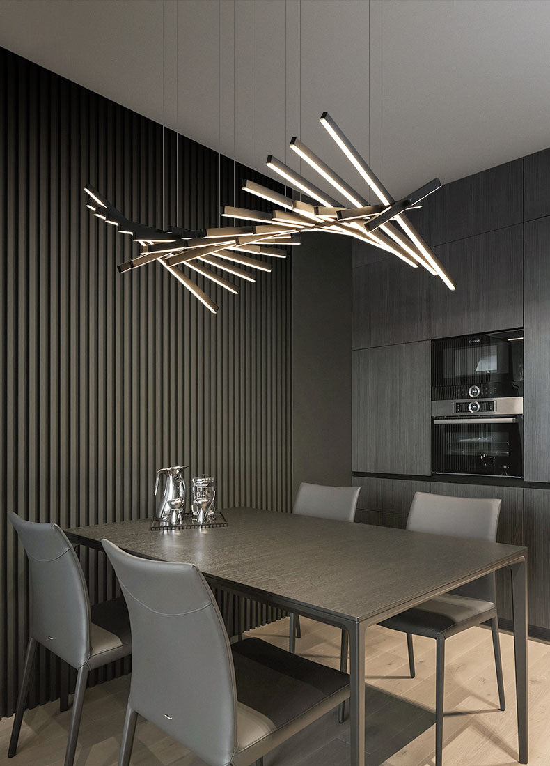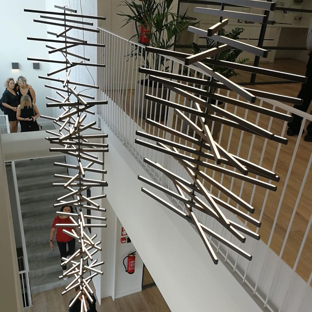 The Rhythm lamps are an Arik Levy design. The Rhythm collection is capable of adopting many configurations thanks to its rotation around a central axis which allows for free movement at an angle of its light sticks. This approach allows the Rhythm lamps to be configured into smooth waves or bespoke chaotic shapes.