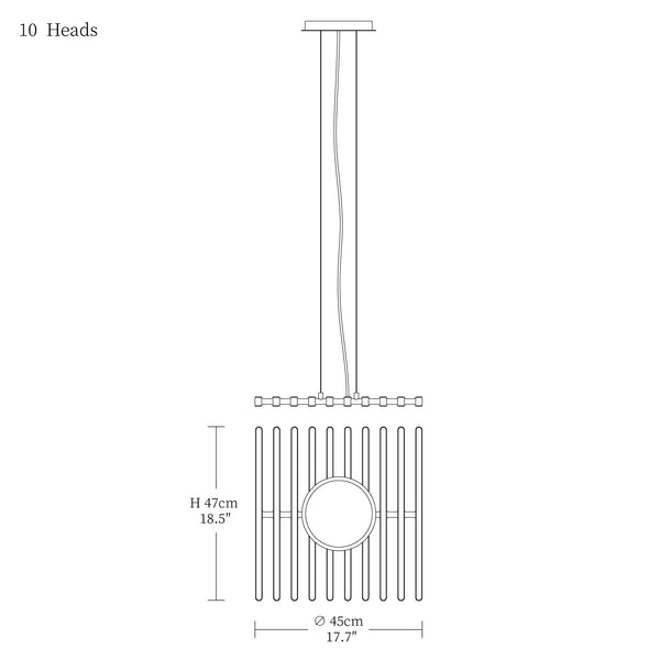 - 10heads size: Dia 45cm x W 47cm / L 17.7″ x W 18.5″