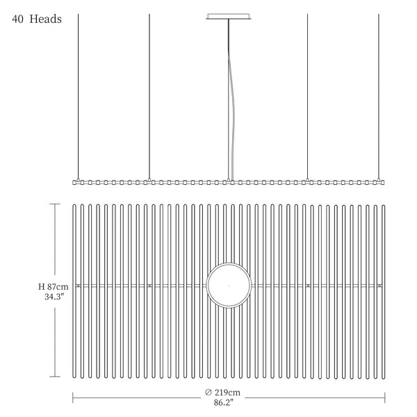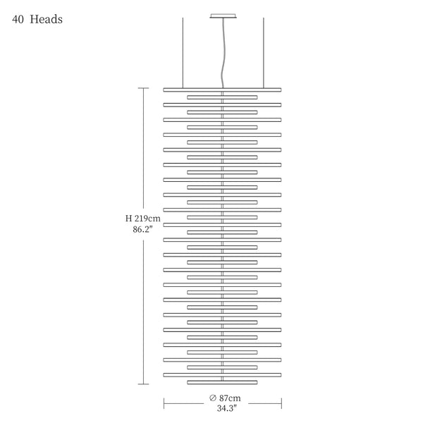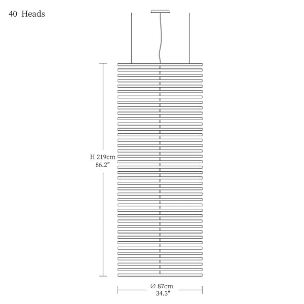 - 40heads size: Dia 87cm x H 219cm / L 34.3″ x W 86.2″