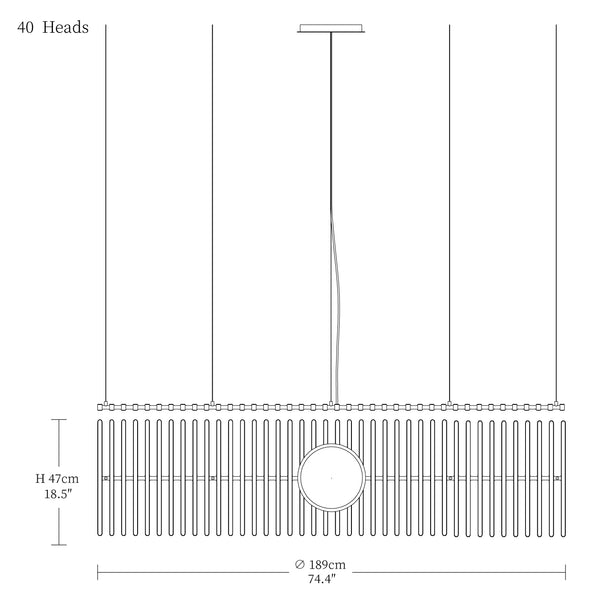 - 40heads size: Dia 189cm x W 47cm / L 74.4″ x W 18.5″