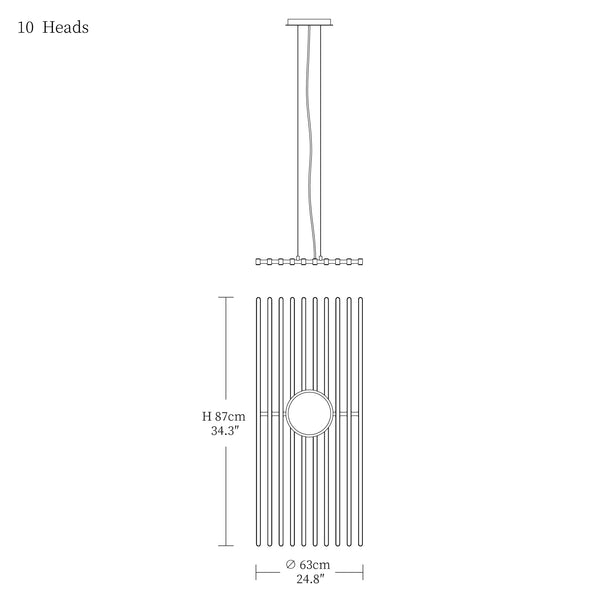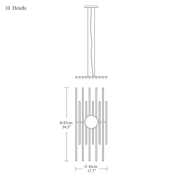 - 10heads size: Dia 45cm x W 87cm / L 17.7″ x W 34.3″