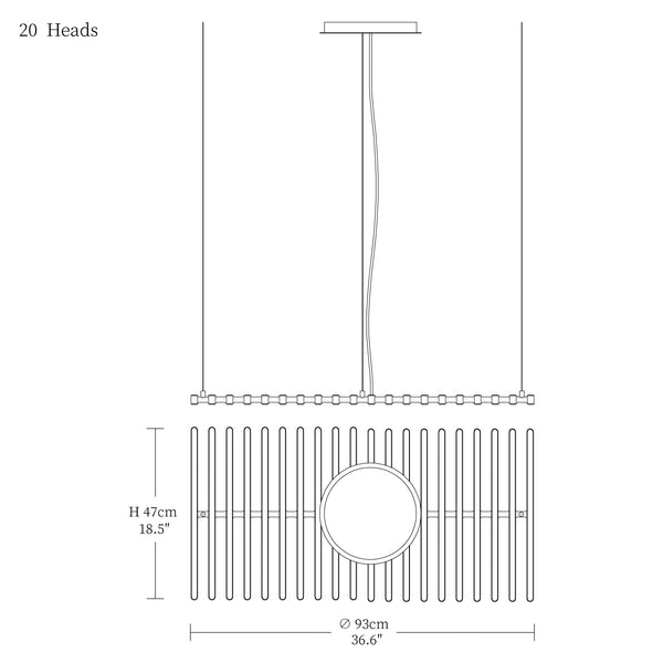 - 20heads size: Dia 93cm x W 47cm / L 36.6″ x W 18.5″