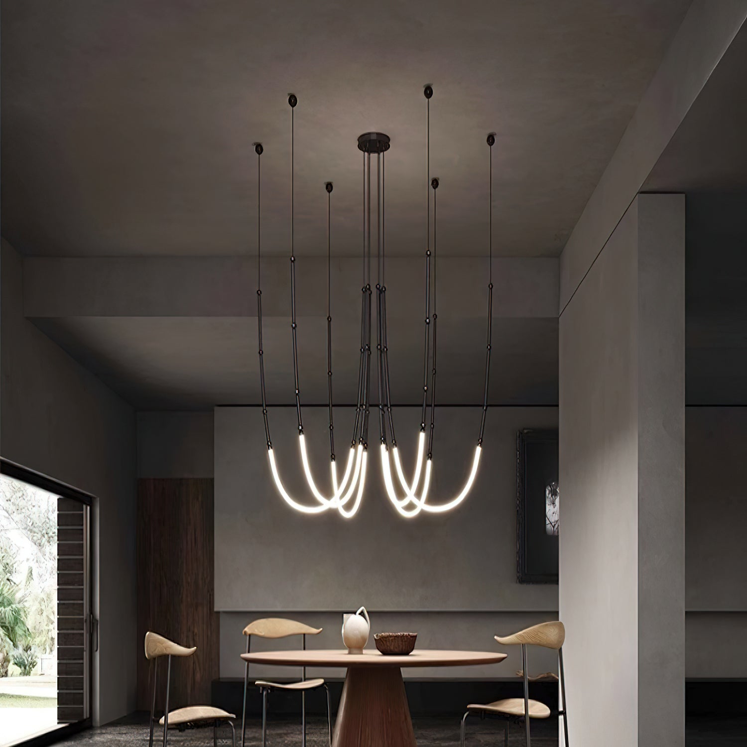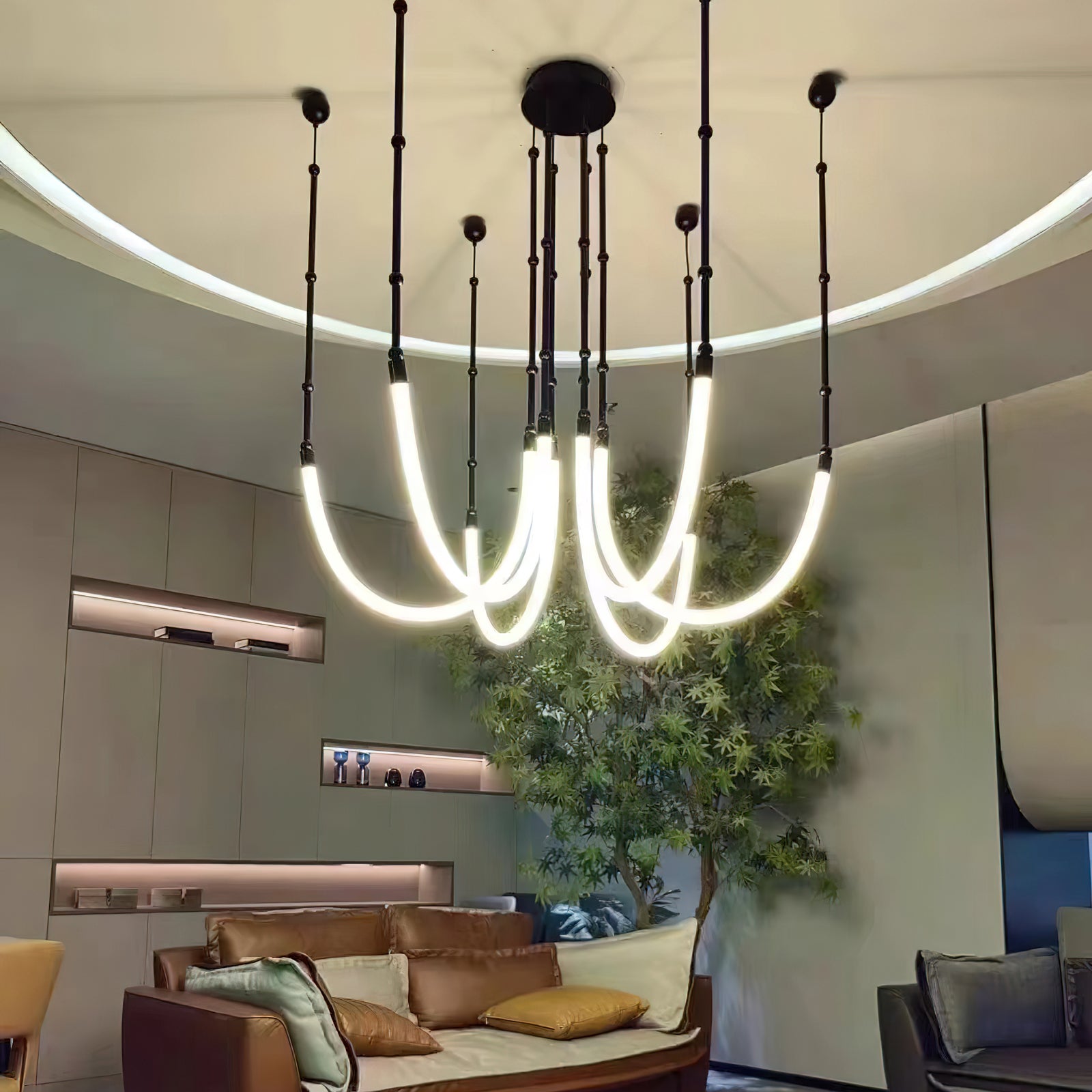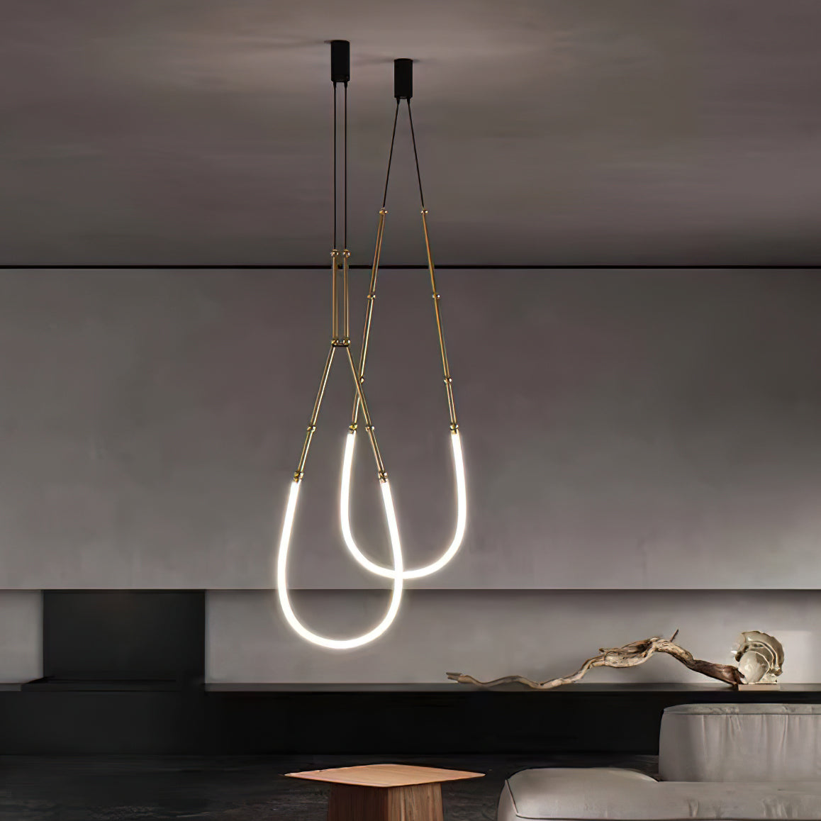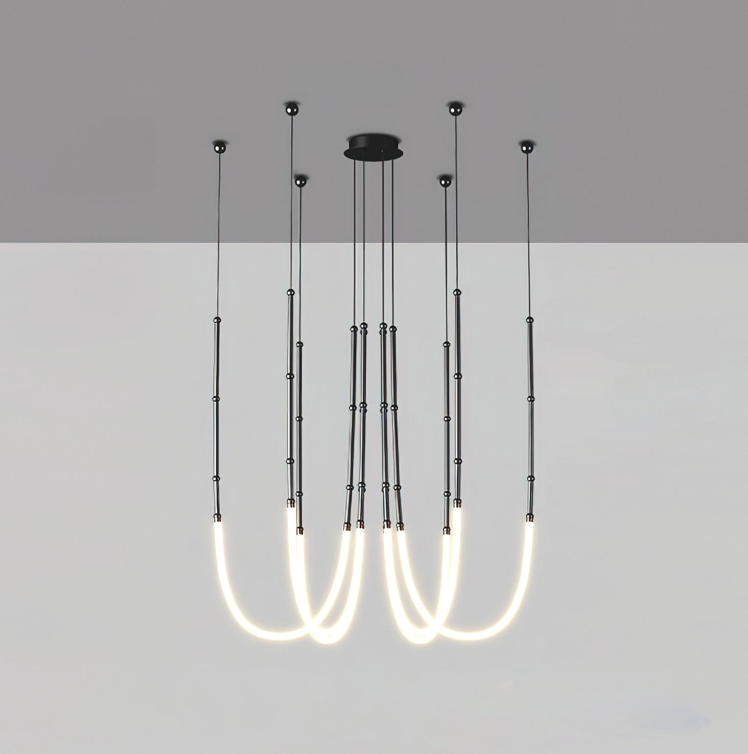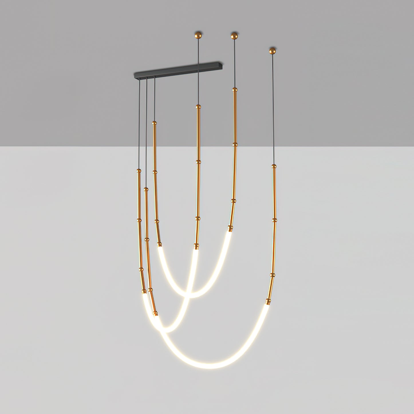 This Pierlas Chandelier by Mooijane is a modern, minimalist lamp that will add elegance and sophistication to any room. With its unique shape and gold finish, this chandelier creates a luxurious ambiance and upgrades your lighting to a sleek and modern design. Add a touch of glamour to your space with this eye-catching lamp.