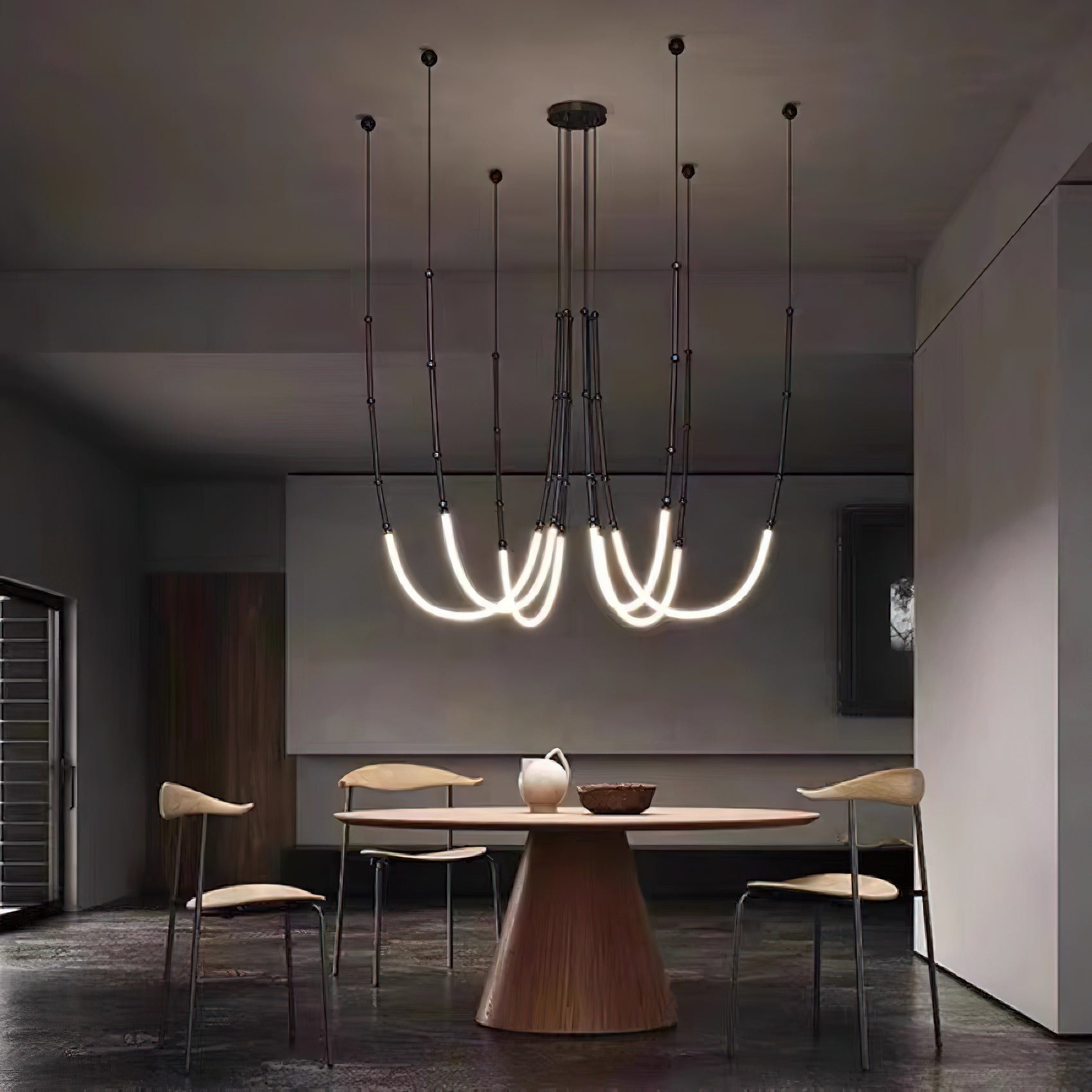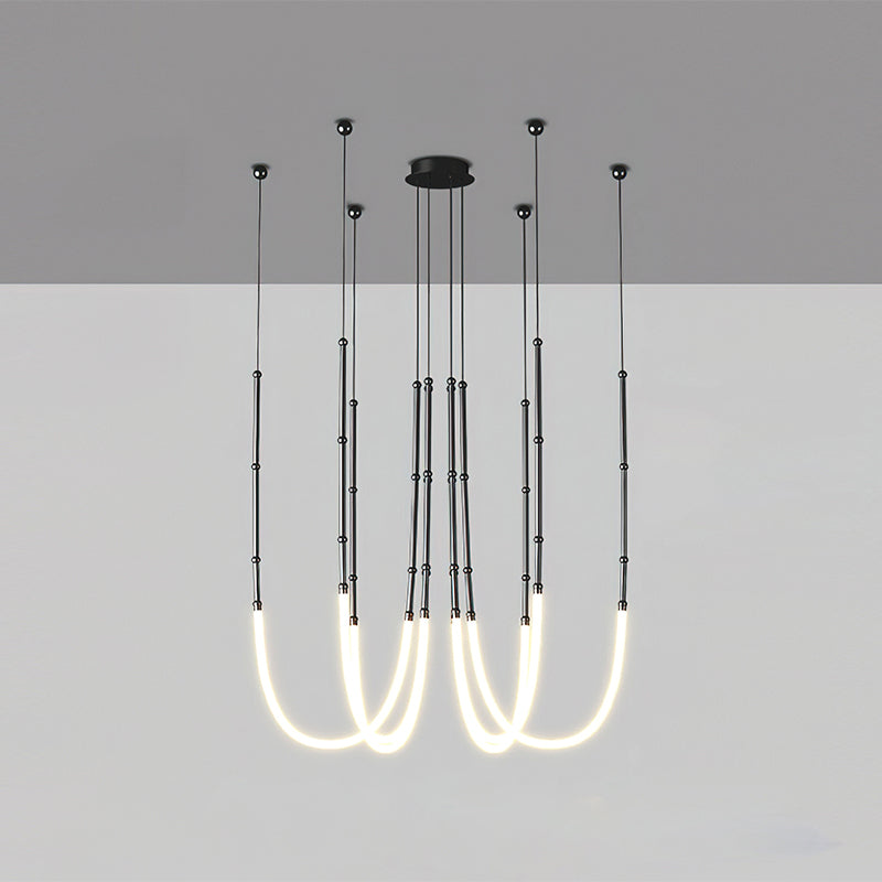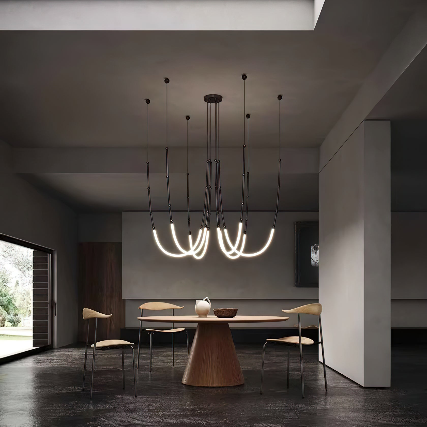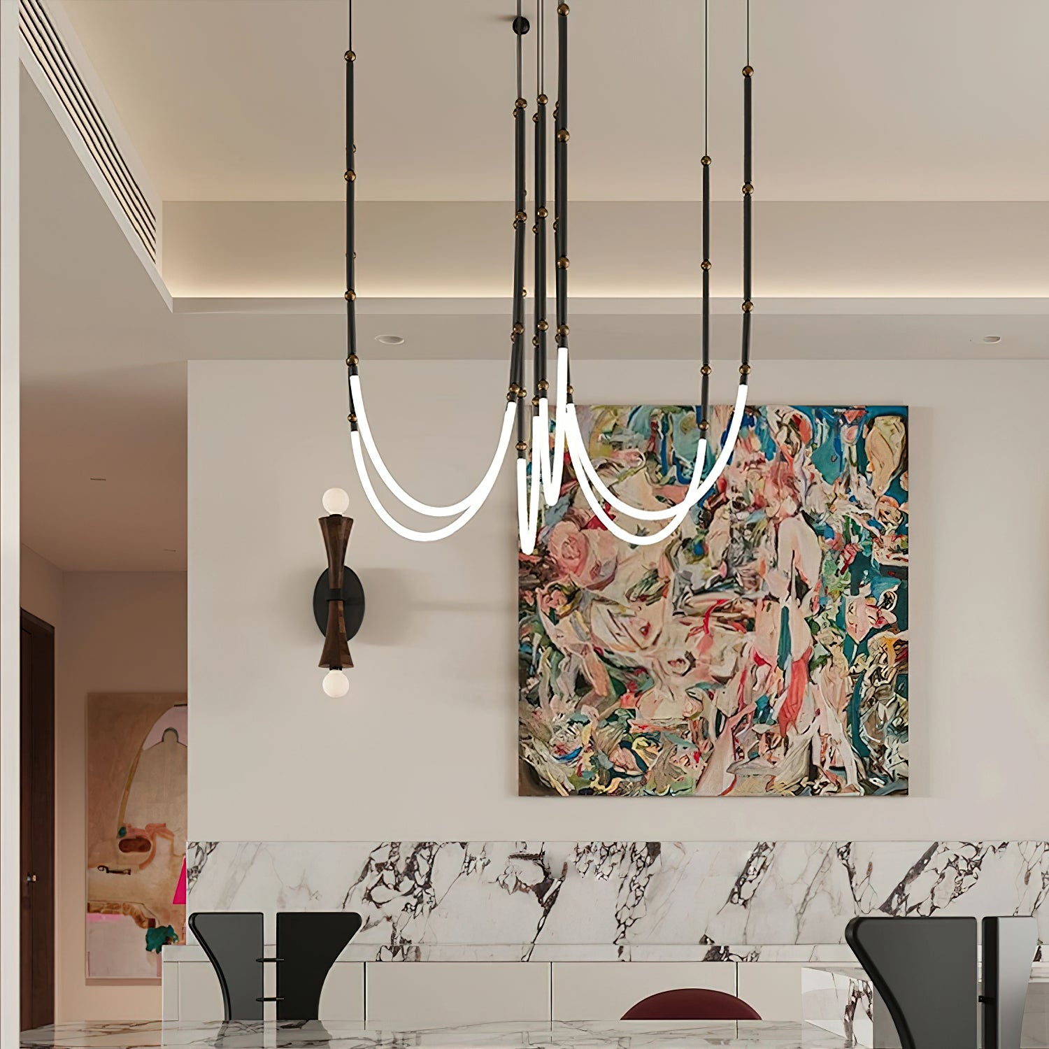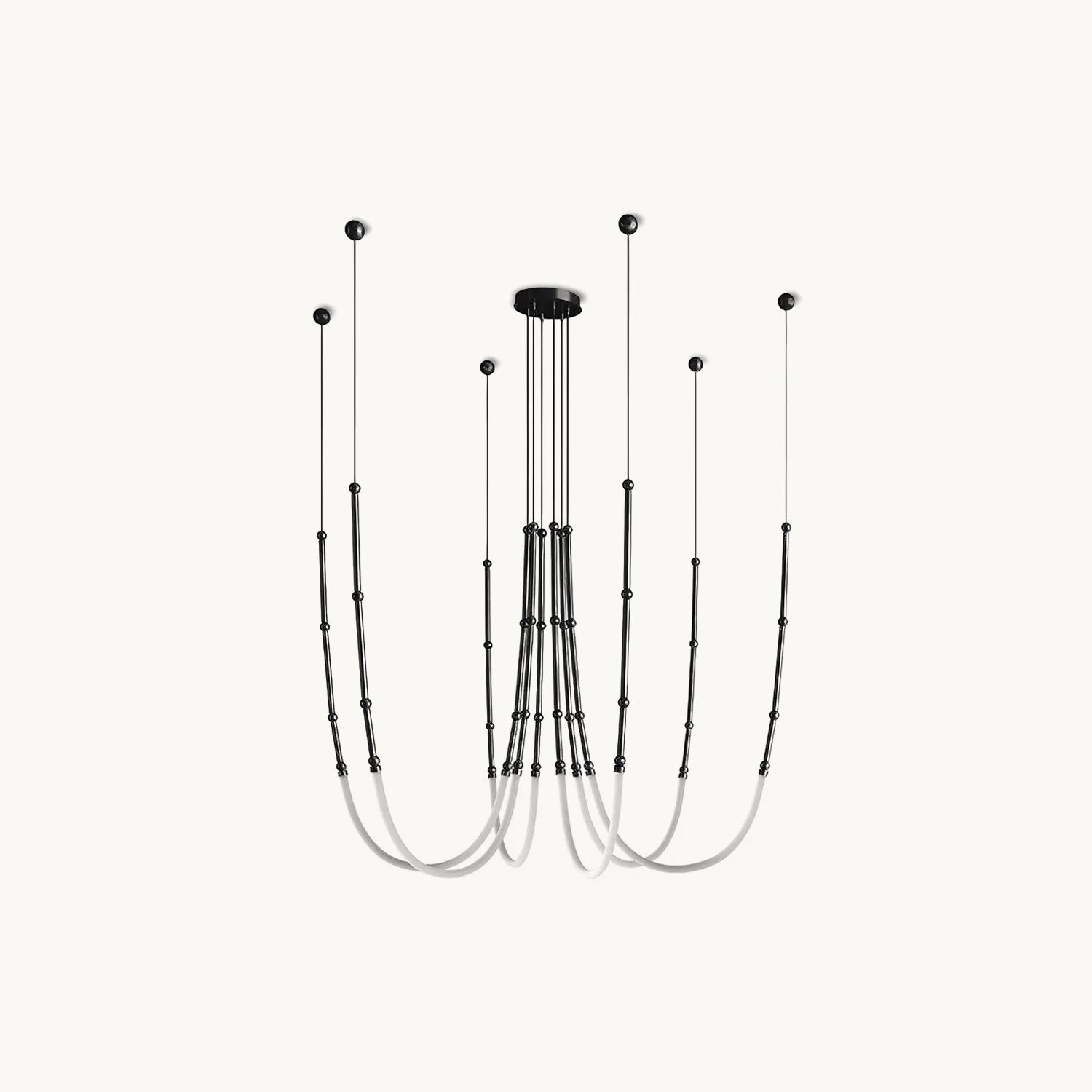 This Pierlas Chandelier by Mooijane is a modern, minimalist lamp that will add elegance and sophistication to any room. With its unique shape and gold finish, this chandelier creates a luxurious ambiance and upgrades your lighting to a sleek and modern design. Add a touch of glamour to your space with this eye-catching lamp.