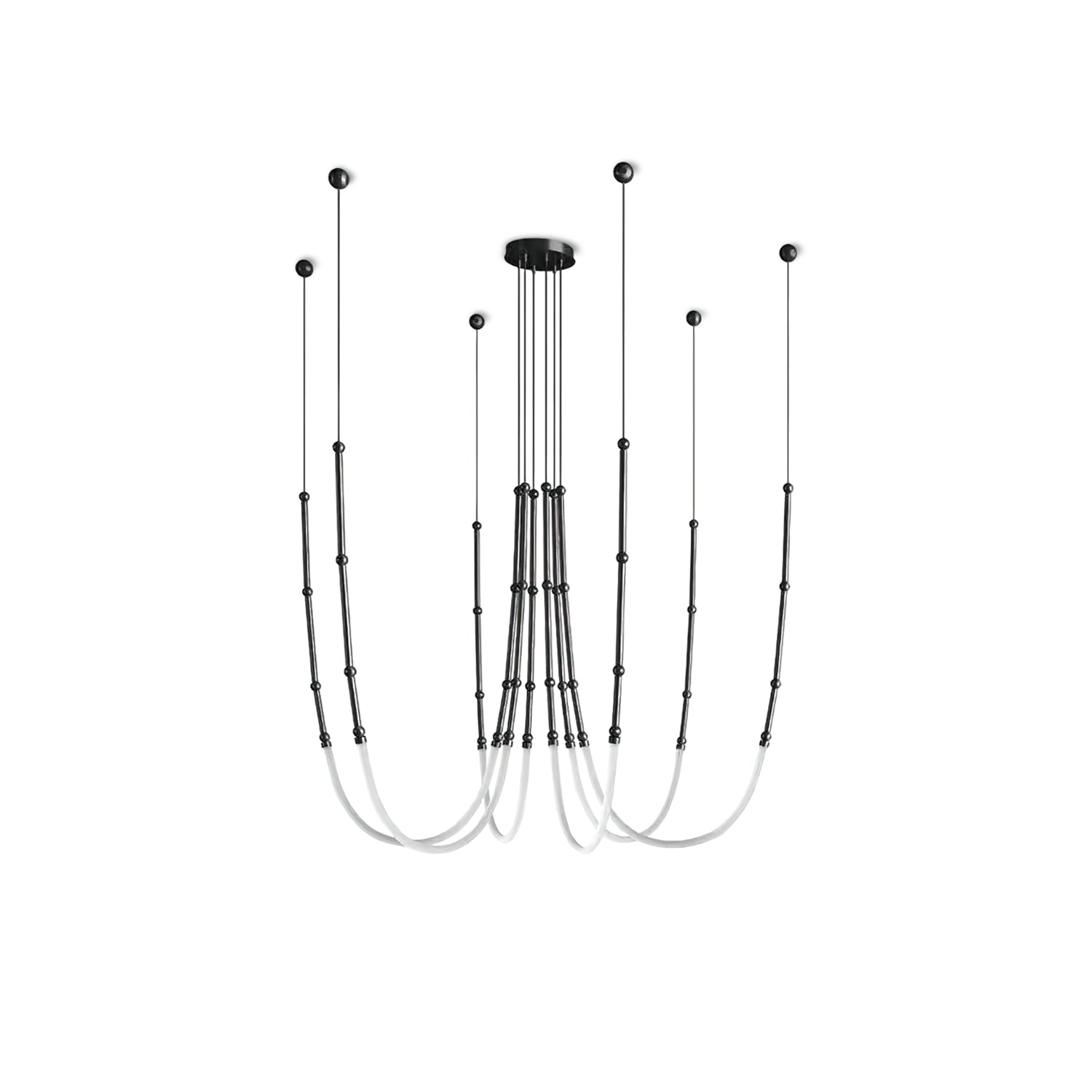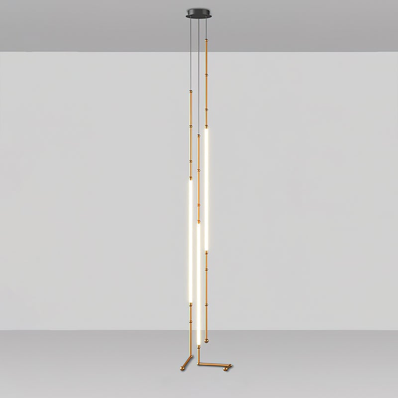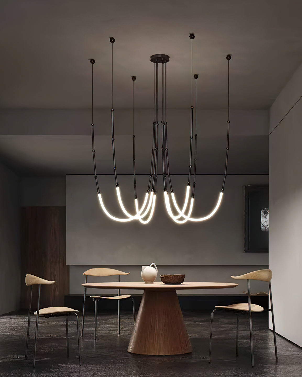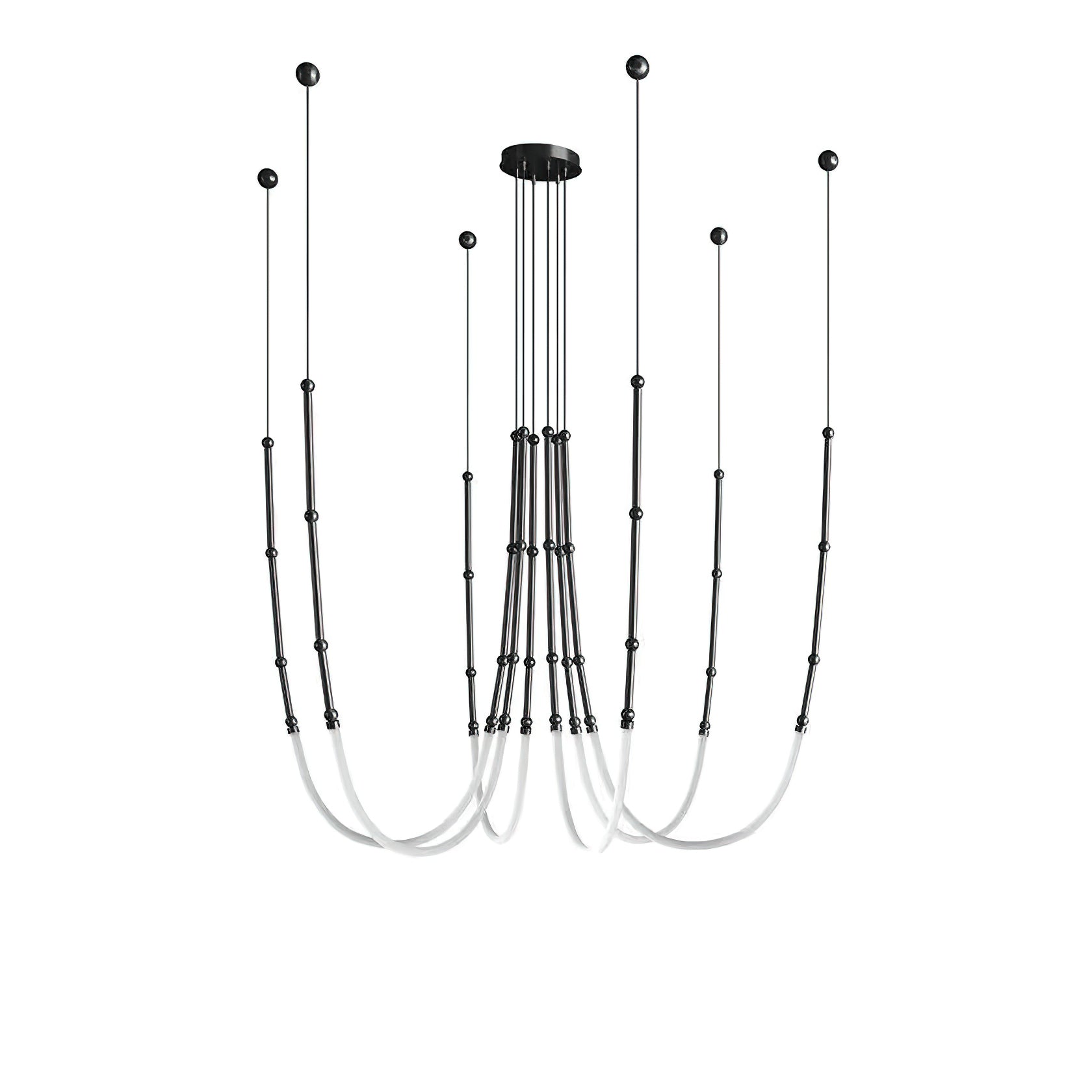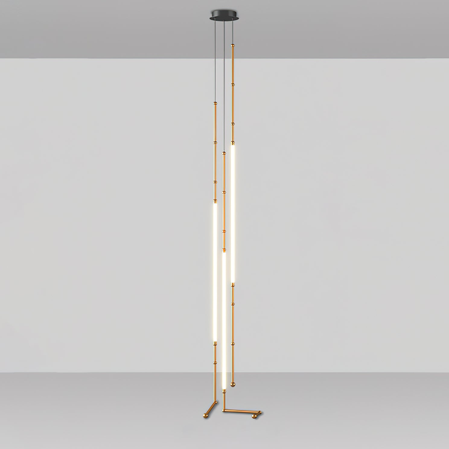 This Pierlas Chandelier by Mooijane is a modern, minimalist lamp that will add elegance and sophistication to any room. With its unique shape and gold finish, this chandelier creates a luxurious ambiance and upgrades your lighting to a sleek and modern design. Add a touch of glamour to your space with this eye-catching lamp.