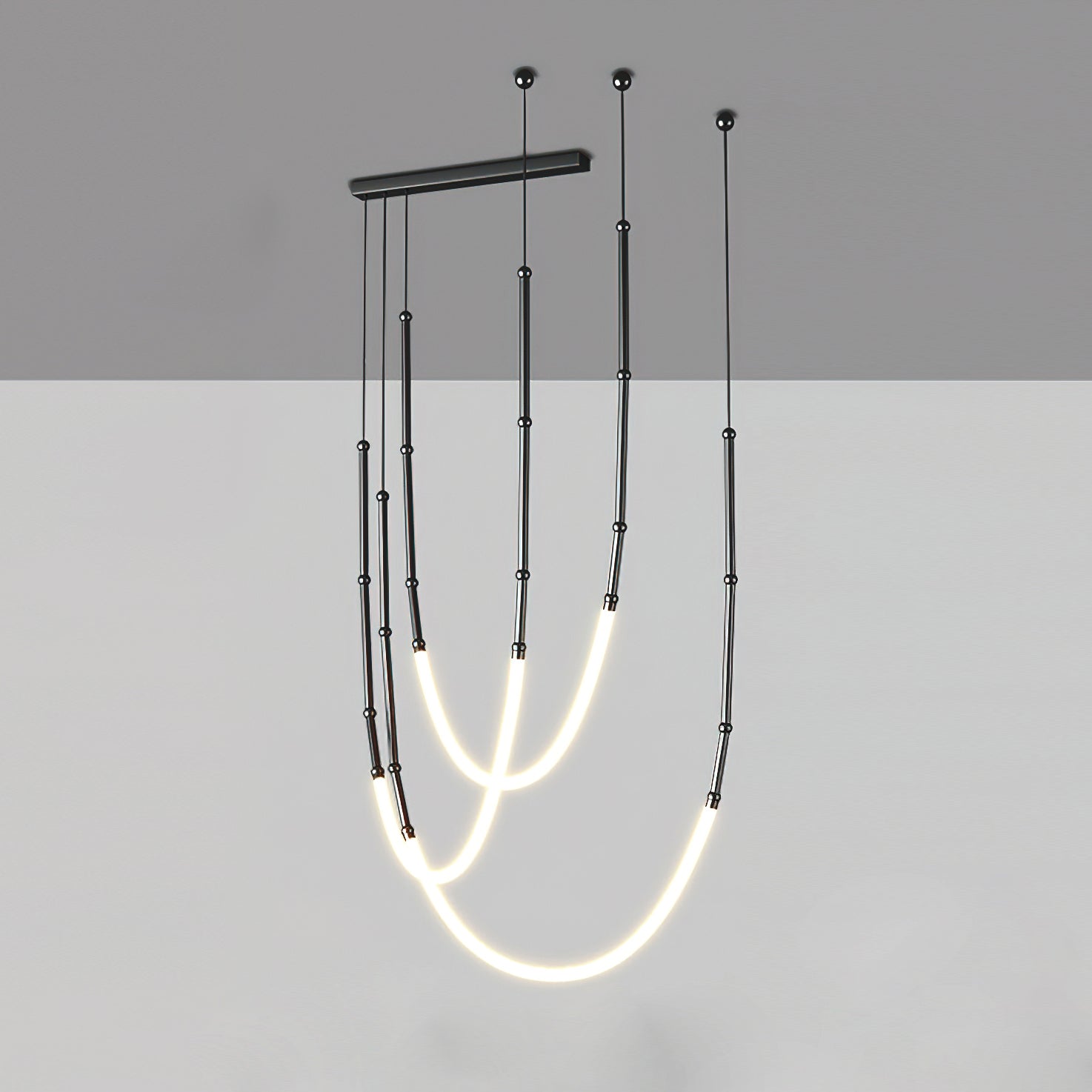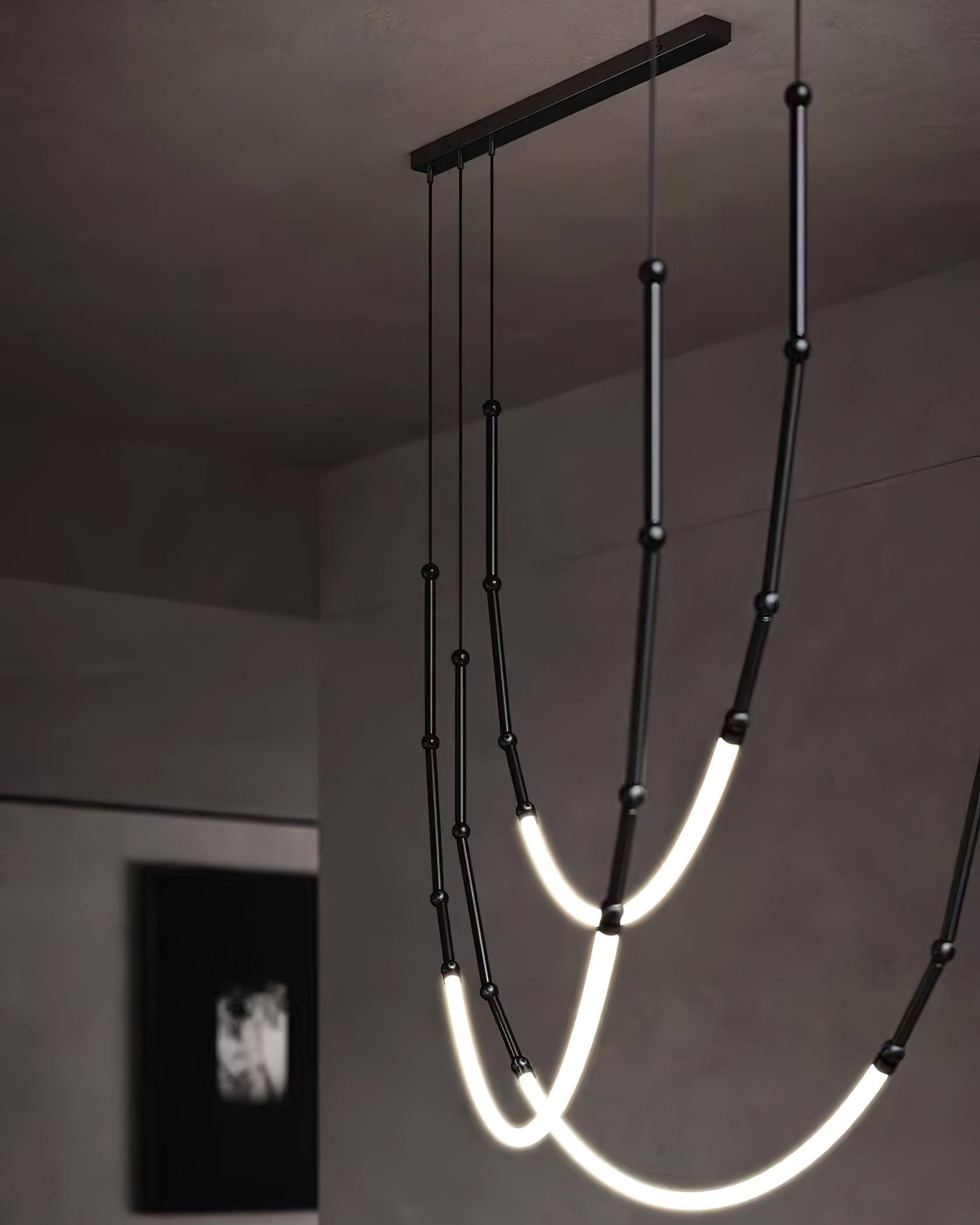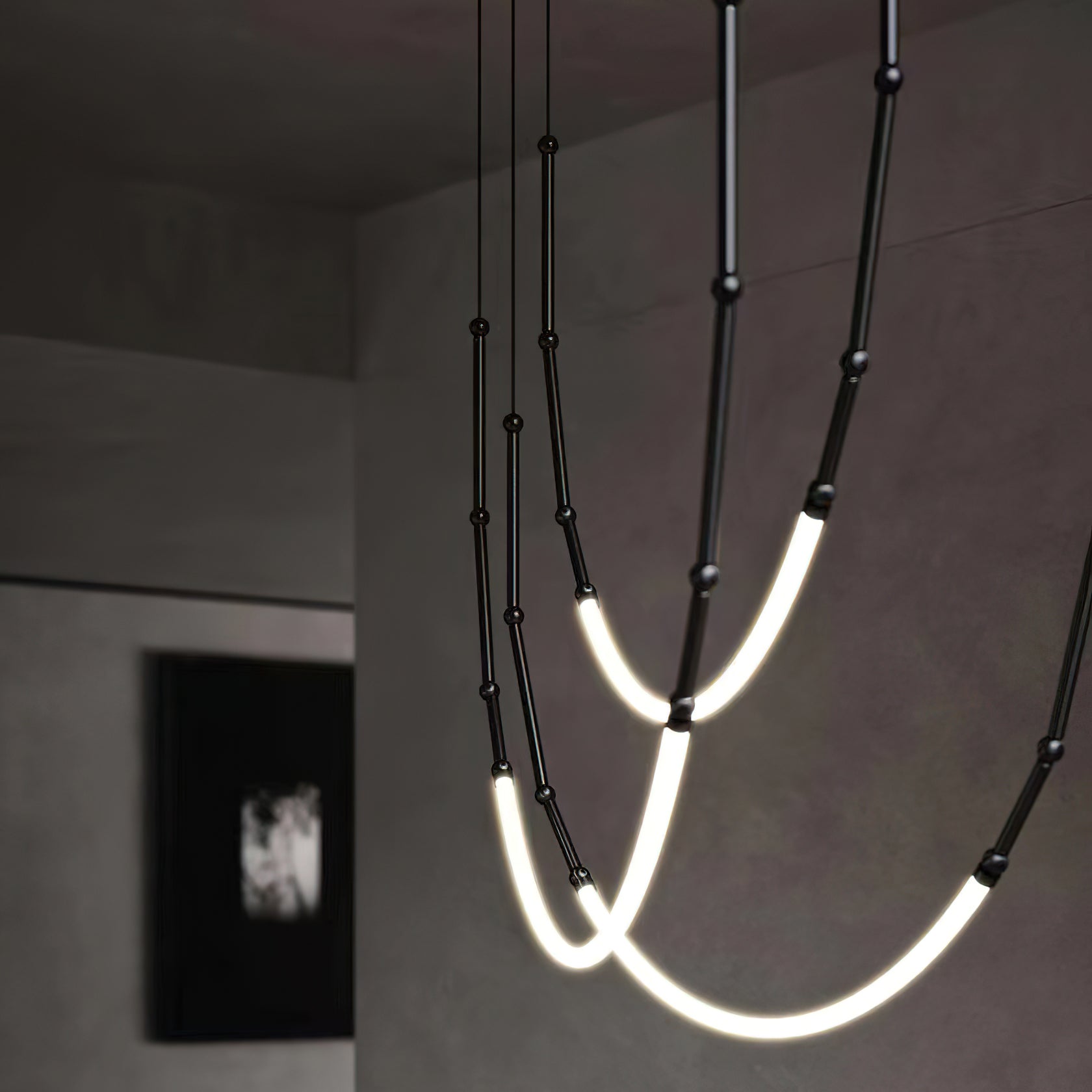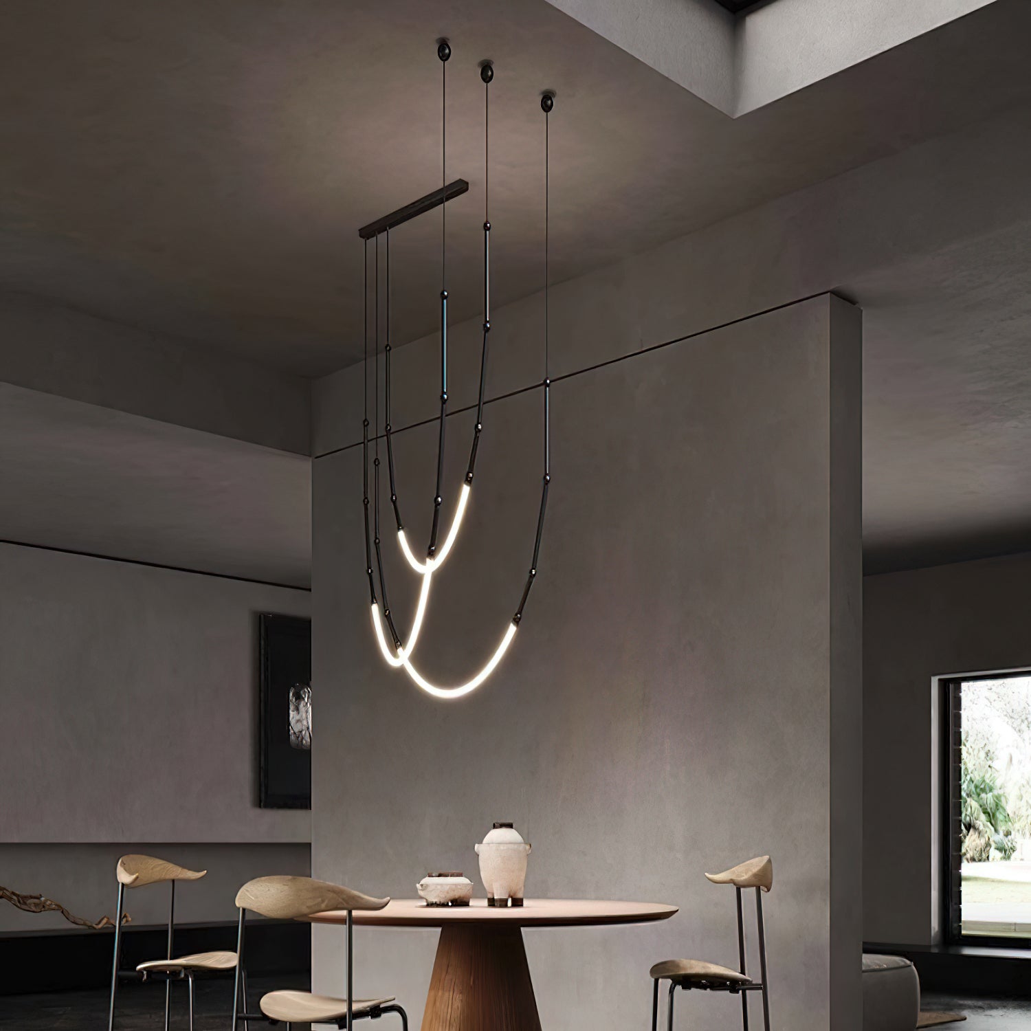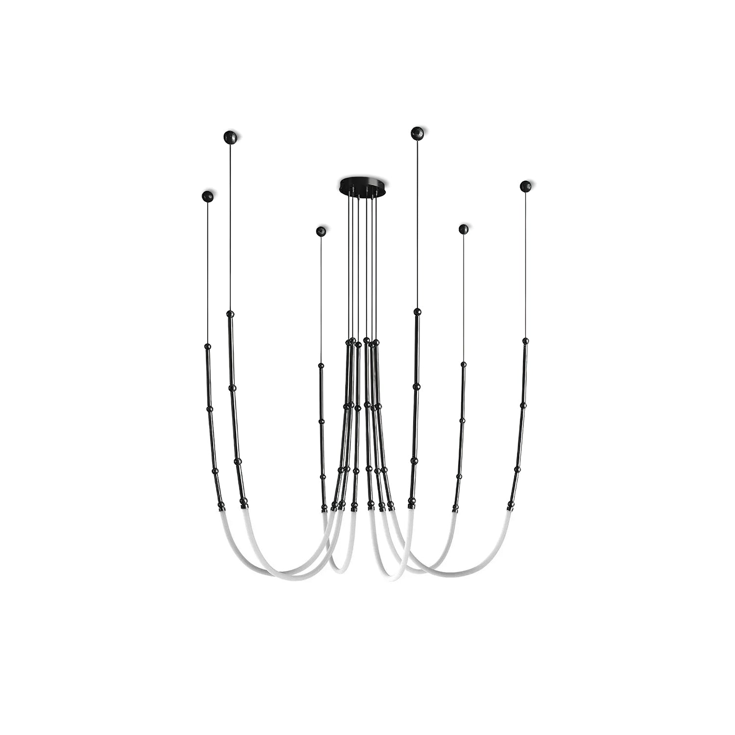 This Pierlas Chandelier by Mooijane is a modern, minimalist lamp that will add elegance and sophistication to any room. With its unique shape and gold finish, this chandelier creates a luxurious ambiance and upgrades your lighting to a sleek and modern design. Add a touch of glamour to your space with this eye-catching lamp.