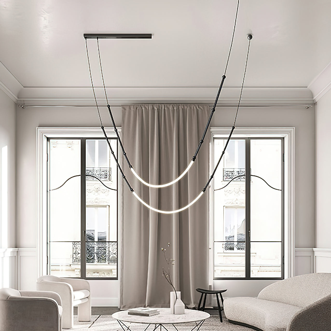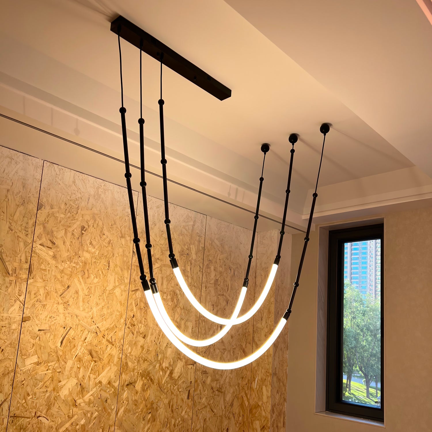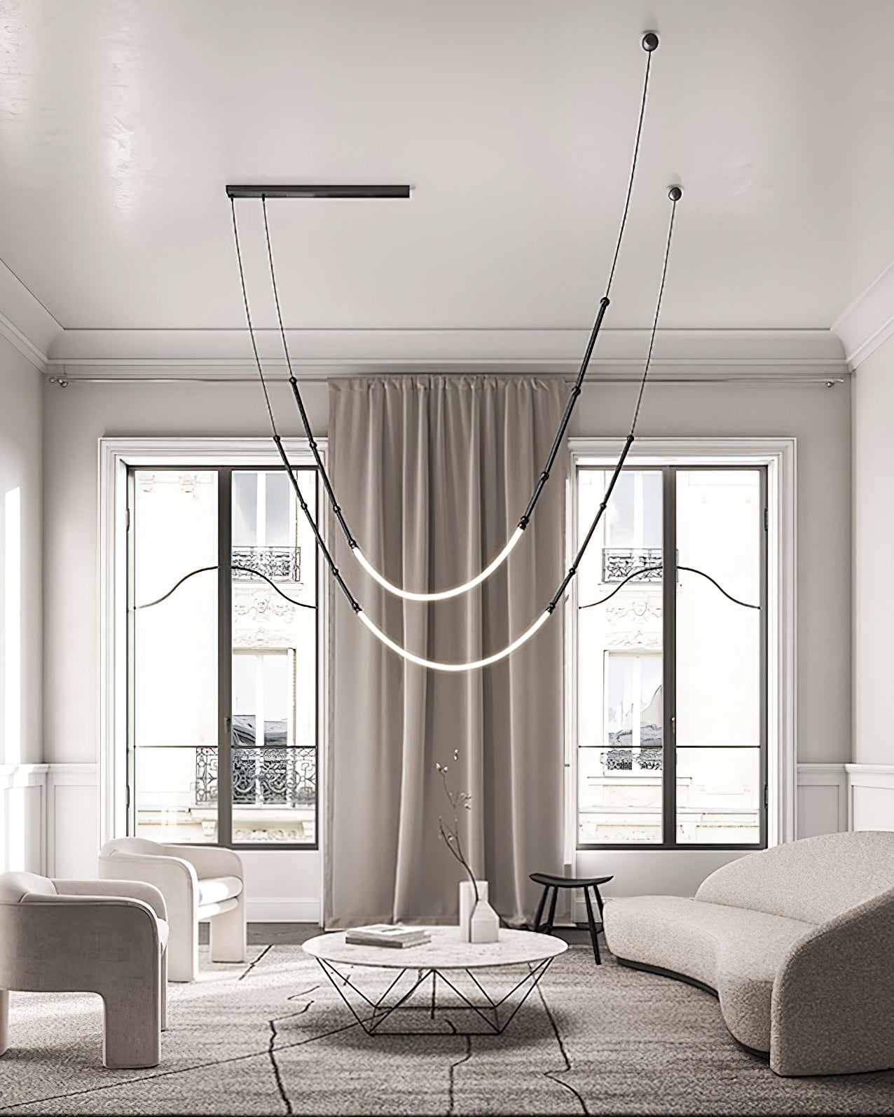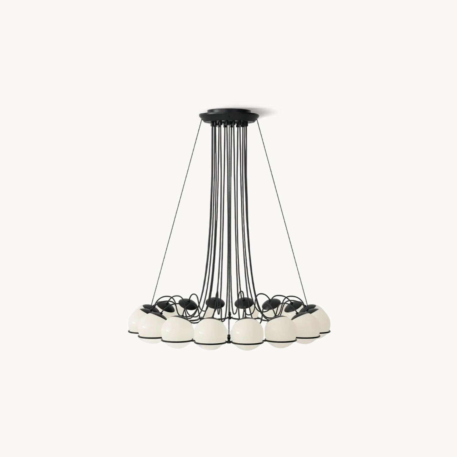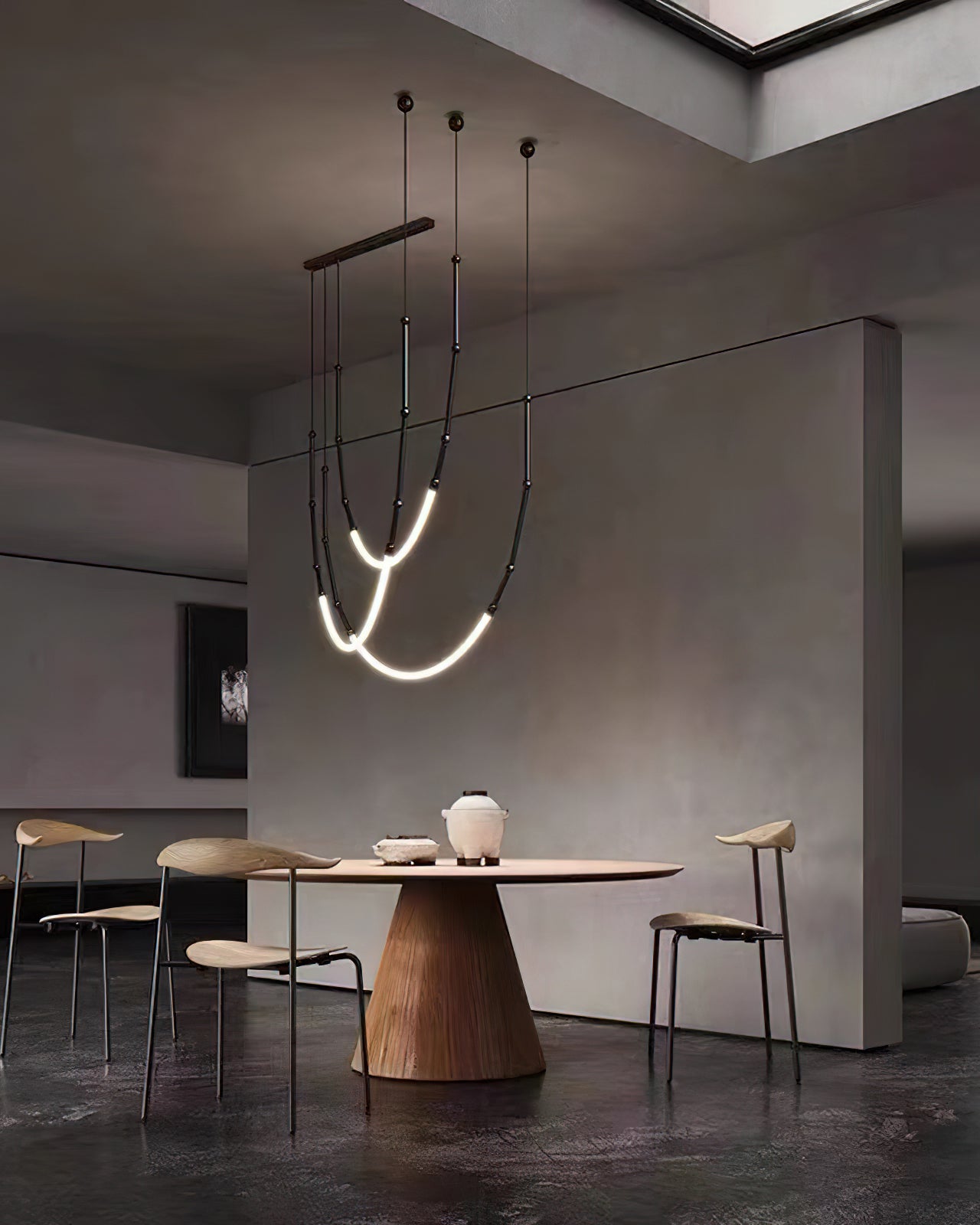 This Pierlas Chandelier by Mooijane is a modern, minimalist lamp that will add elegance and sophistication to any room. With its unique shape and gold finish, this chandelier creates a luxurious ambiance and upgrades your lighting to a sleek and modern design. Add a touch of glamour to your space with this eye-catching lamp.