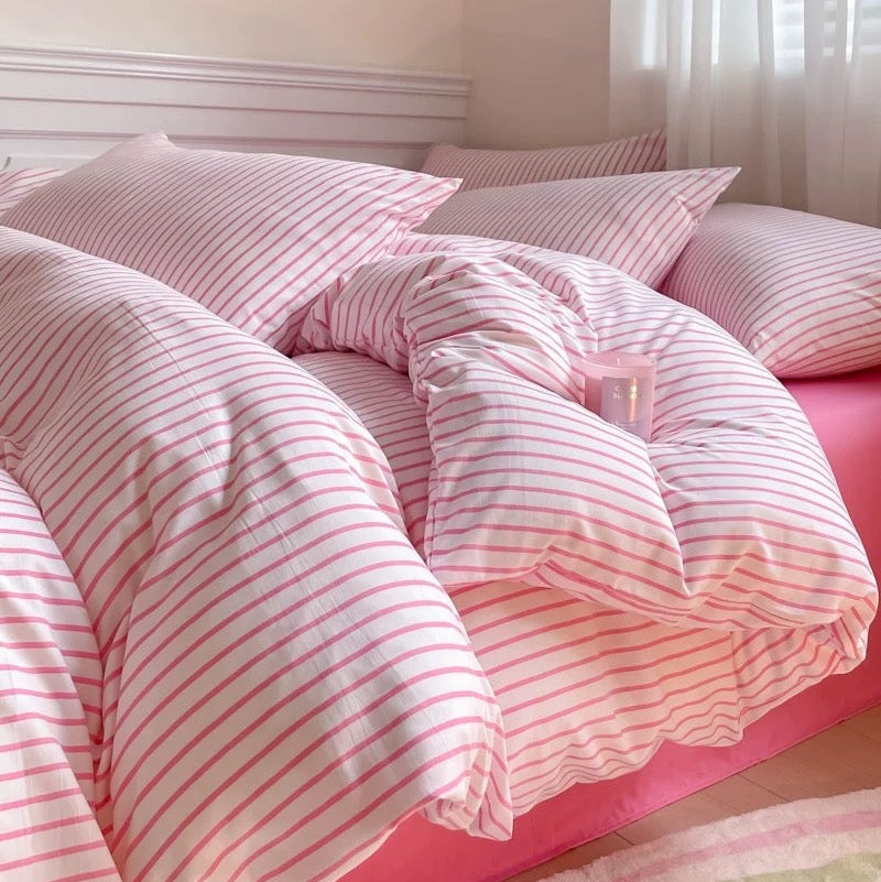 Make your room feel like a pastel Pinterest board with this Pink Striped Cotton Bedding Set. Soft 100% cotton, modern skinny stripes, and cozy coquette vibes—perfect for dorms, apartments, and aesthetic bedroom makeovers.