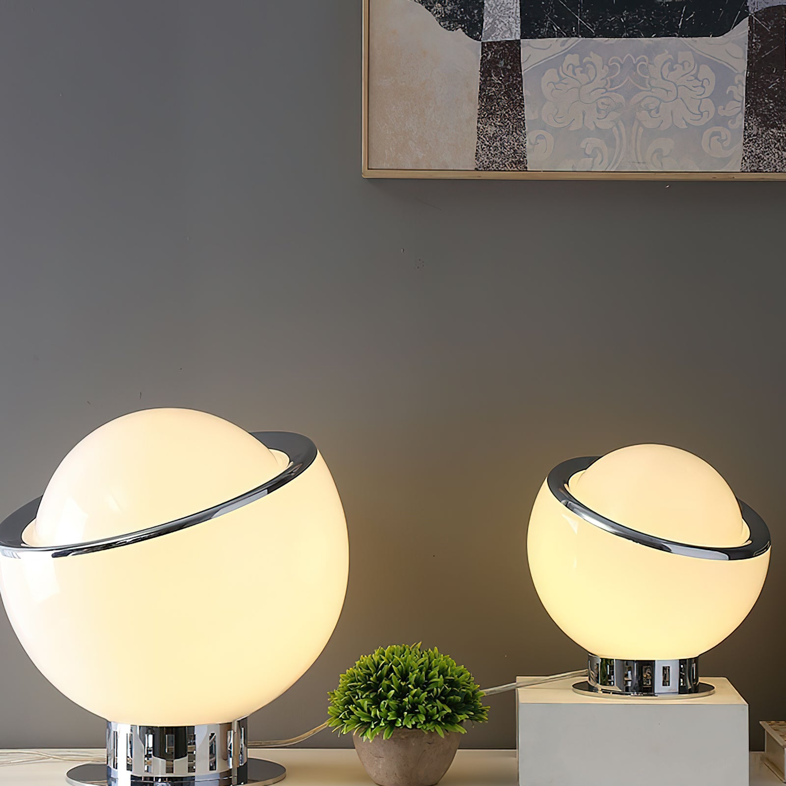 This colorful planet table lamp brightens up any room with its unique spherical shape. Made of stainless steel and glass, it's durable and a great addition to any living space. Its vibrant colors will bring a fun and unique touch to any home.