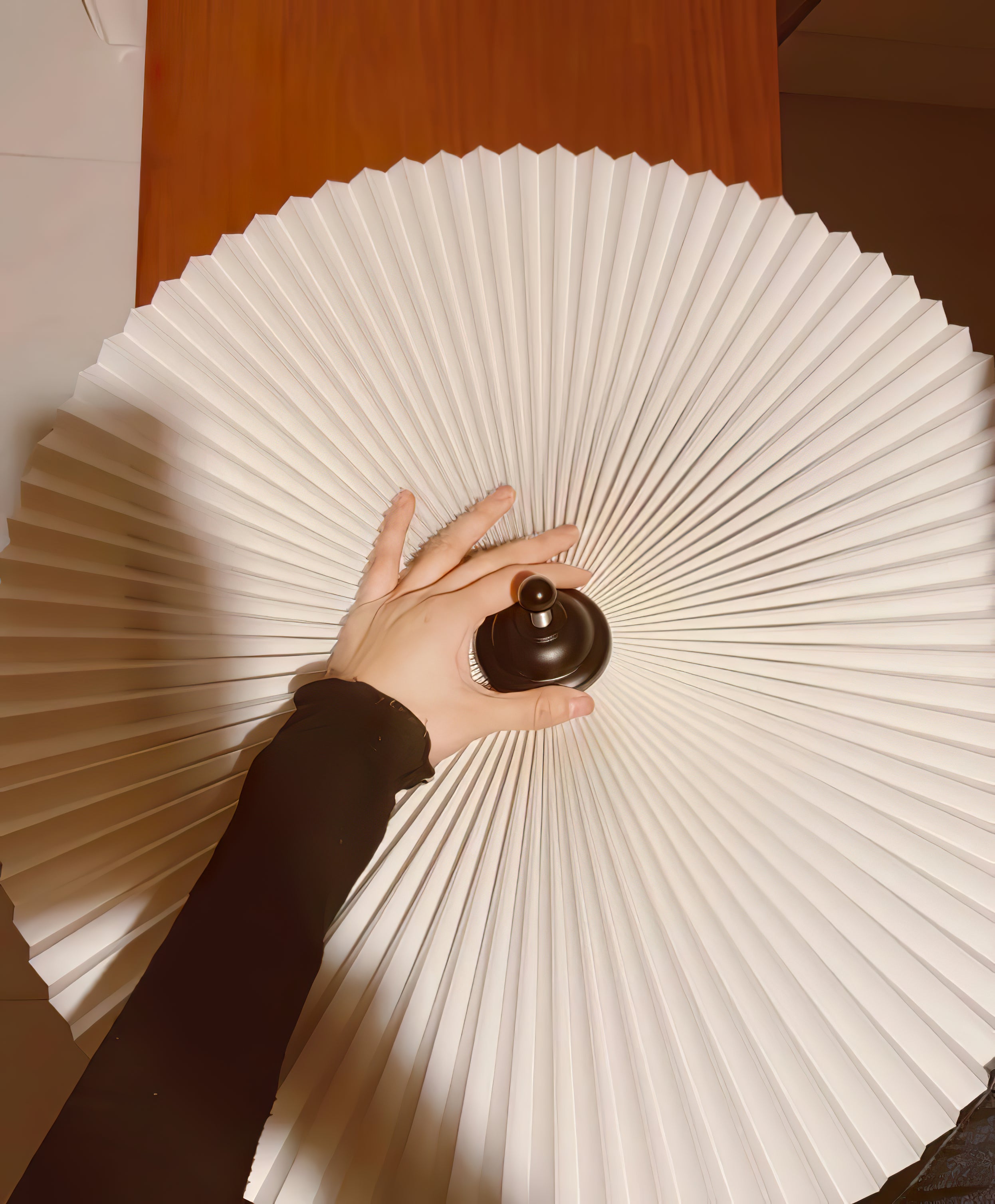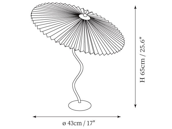 This lamp was inspired by a pleated hat/ old lampshade I found. The handcrafted Sicilian Iron base has been designed to complement the subtle lightness of the pleated lampshade. Measuring approximately 75cm in height with a Cappello of 43cm in diameter, the lamp will need some basic assembly before use.