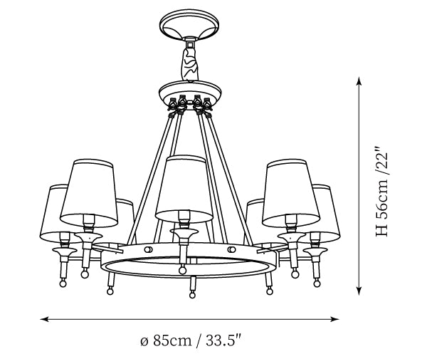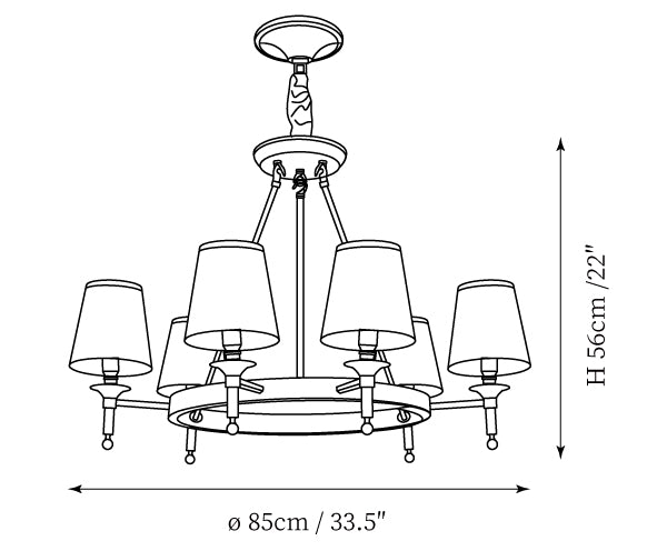 - 6Heads Size: Dia 85cm x H 56cm / ∅ 33.5″ x H 22″