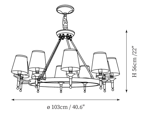 - 10Heads Size: Dia 103cm x H 56cm / ∅ 40.6″ x H 22″