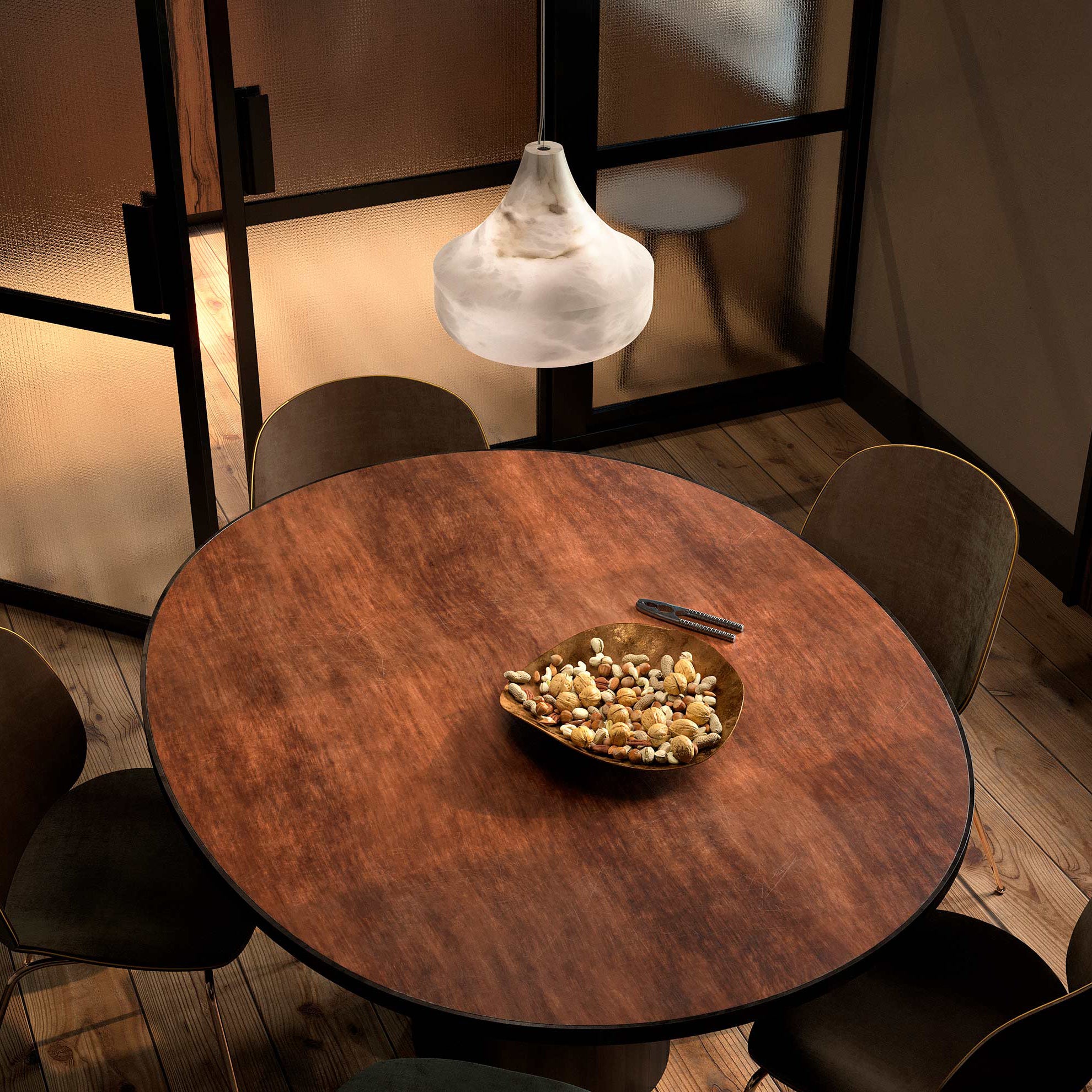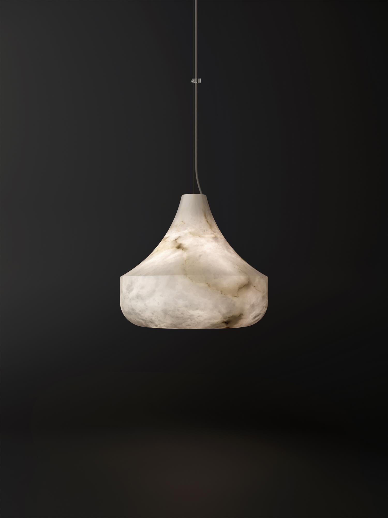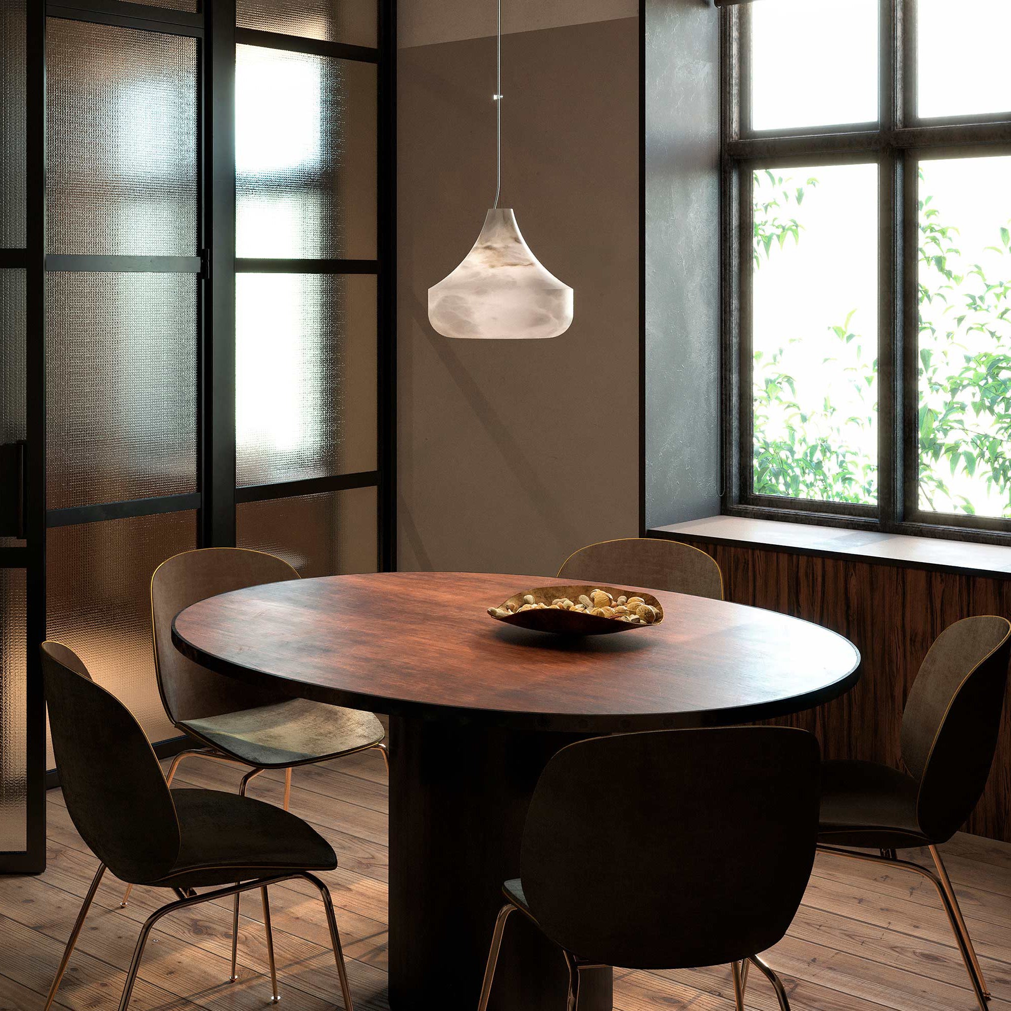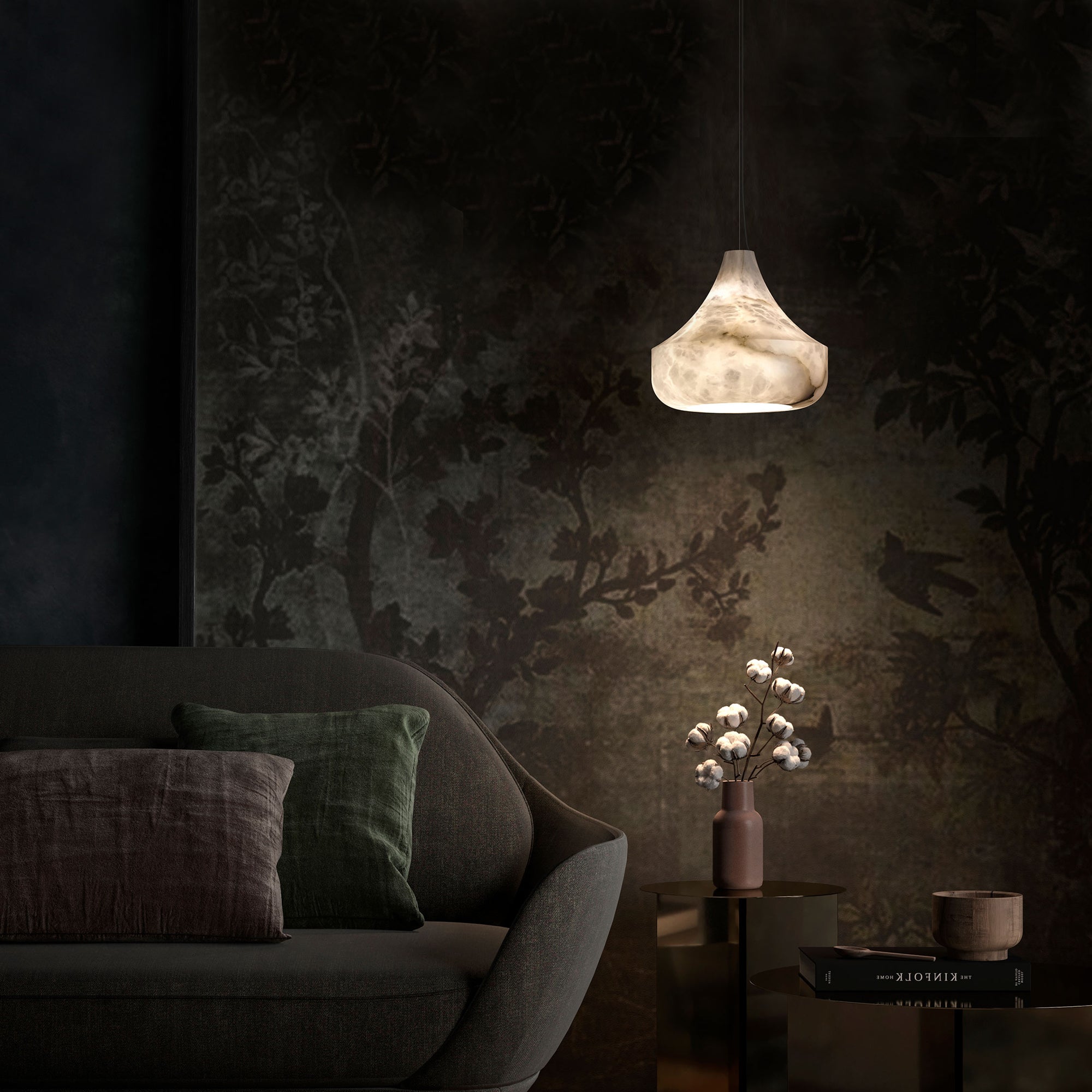 Bring a touch of sophistication with Mooijane's elegant Prague Alabaster Pendant Light. Combining a traditional lampshade shape with a modern cylindrical design, this lamp exudes an elegance that complements any space. With its natural lines and sleek shape, the Prague Alabaster Pendant Light is a timeless choice for dining rooms and living rooms.