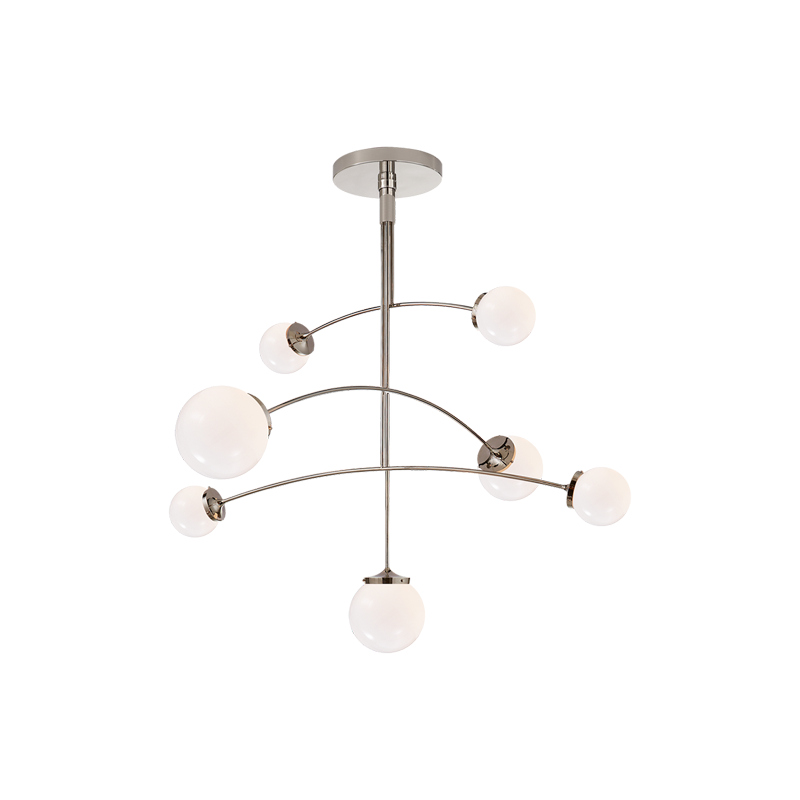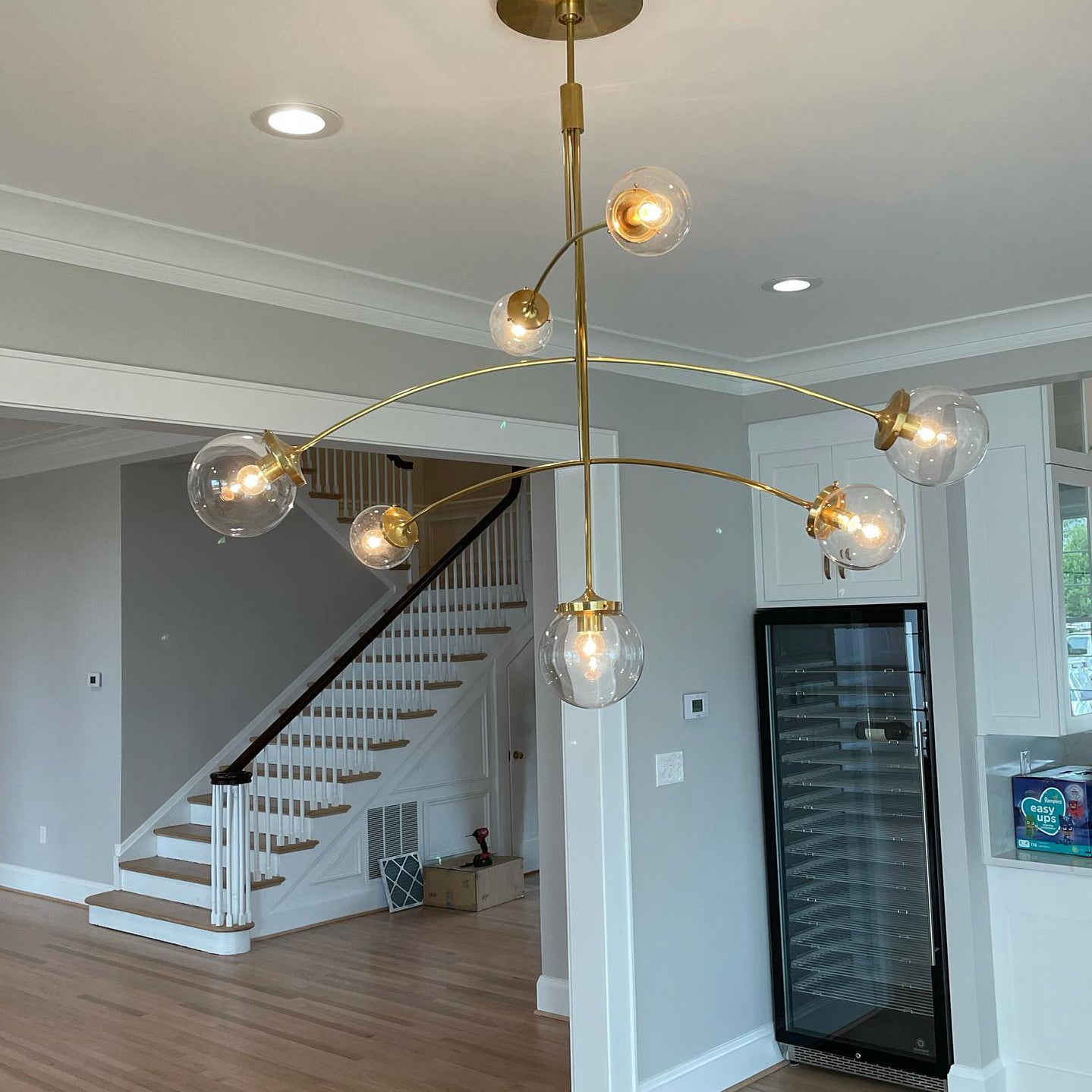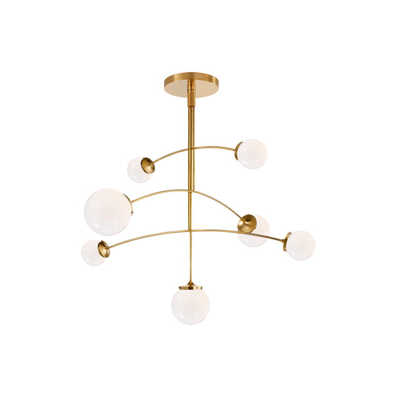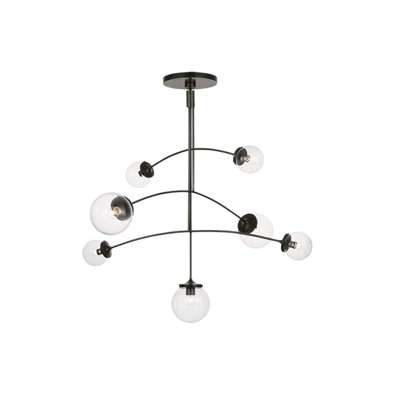 Introducing the Prescott Large Mobile Chandelier! Featuring a unique staggered frame and glass shade, this chandelier adds a warm, inviting feel to any room. Let its design illuminate your space and create a cozy ambiance. Elevate your home decor with Prescott today!