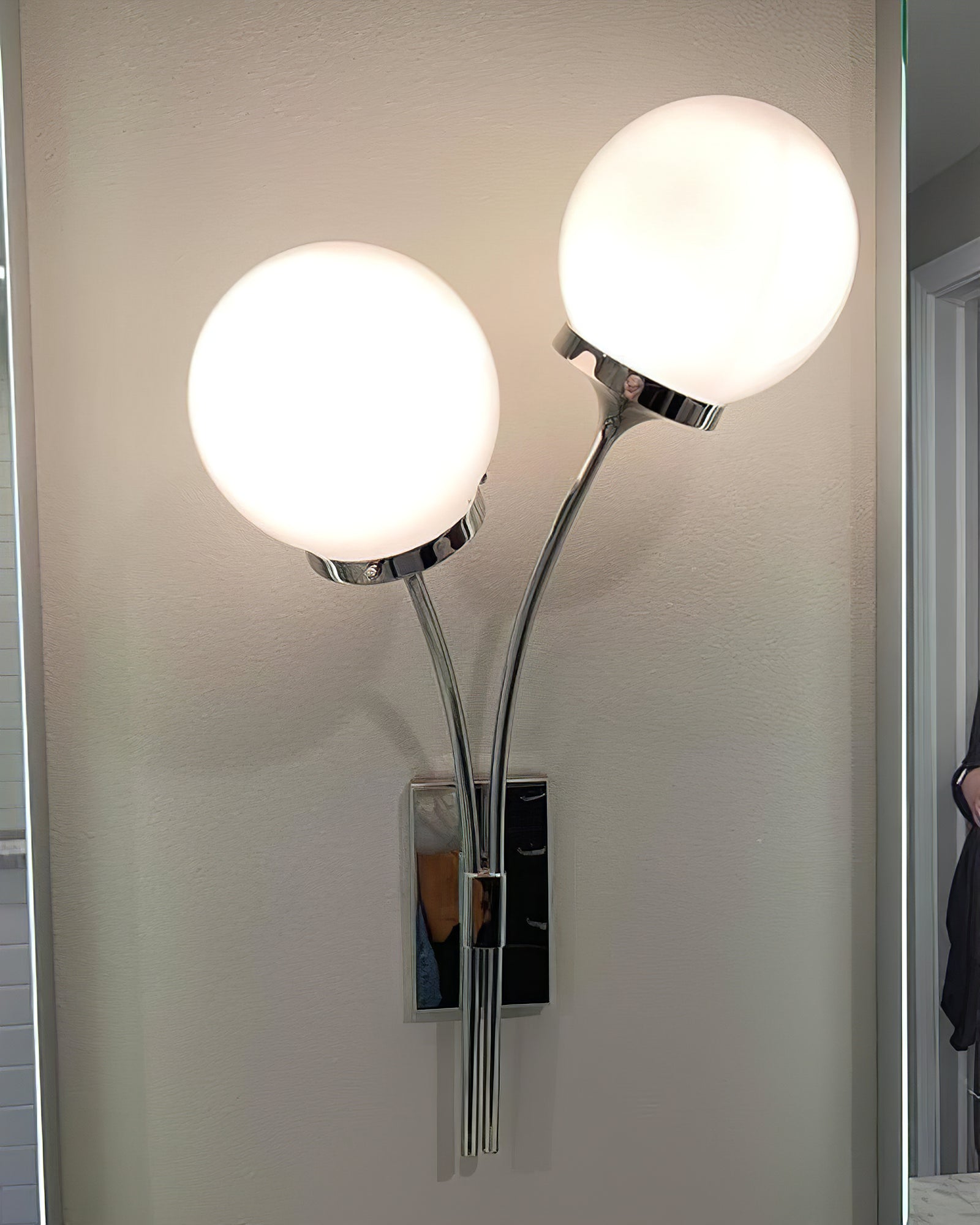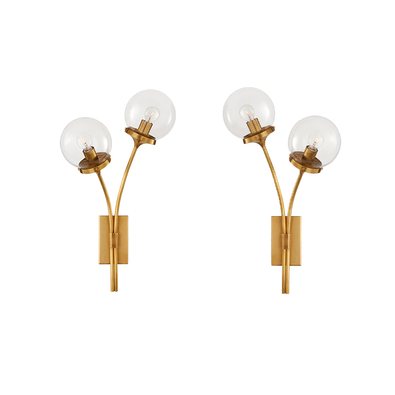 Brighten up any room in your home with our elegant Prescott Left and Right Wall Sconces. Crafted from premium brass and glass, this set of wall sconces emits a warm, inviting glow. The frosted glass shades add a touch of sophistication, while the matching left and right designs create a balanced look. Transform your space with this stylish set of wall sconces!