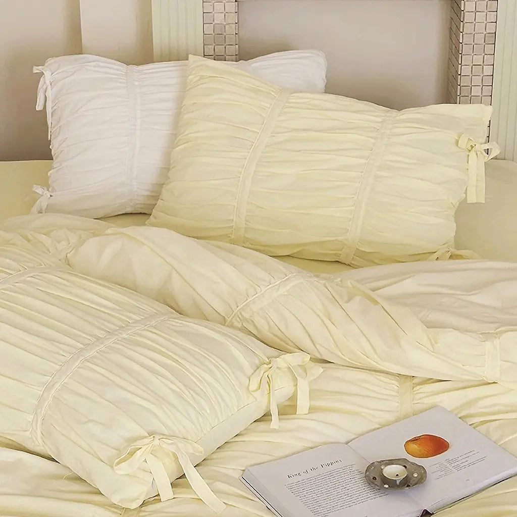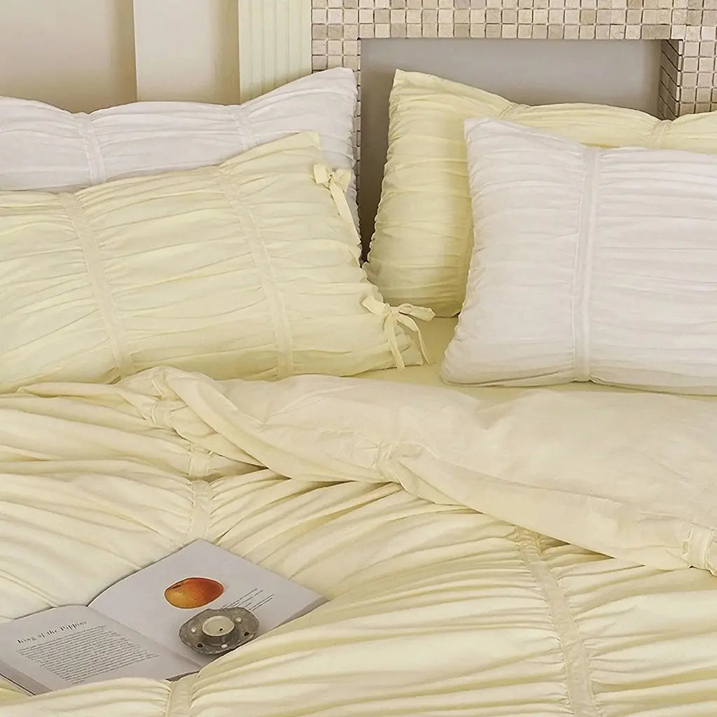 If you're ready to turn your bedroom into a dreamy retreat, you're going to love this bedding set. It's got gorgeous ruched detailing that adds a touch of elegance and a bit of romance to your space. Trust me, it's the perfect way to give your room a touch of luxury and make every night feel like a special occasion.