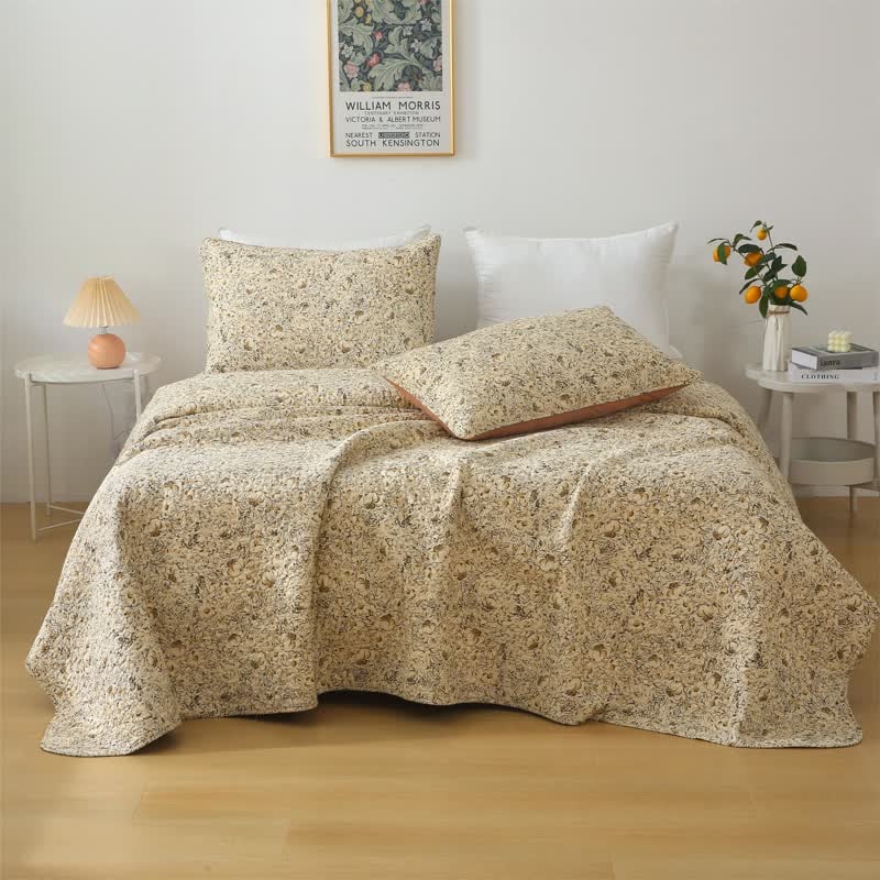 Crafted from high-quality organic cotton, this quilt adorned with a floral pattern elegantly blends retro charm with a hint of luxury. Its exceptional softness and graceful drape elevate the sleeping experience to a dreamlike realm. Redefine your bedroom decor with a distinctive and refined aesthetic.