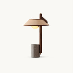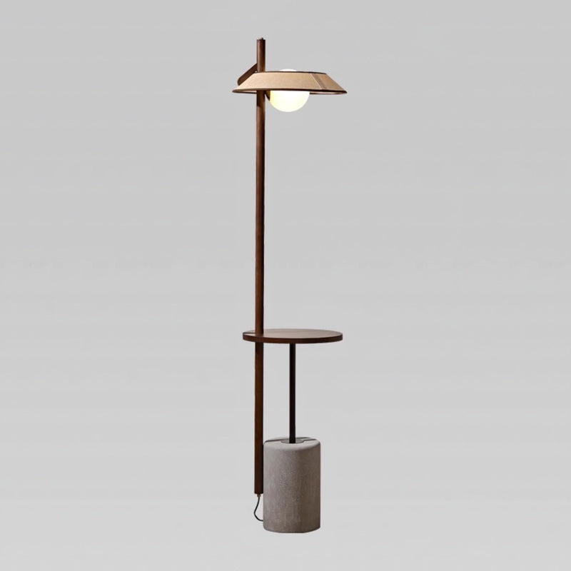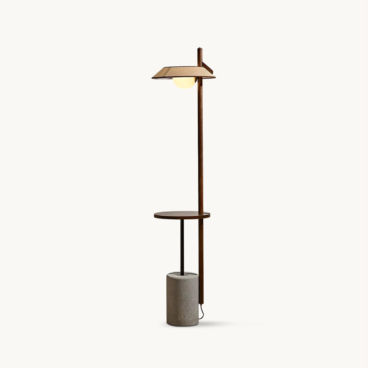 Indulge in luxury with the Puro Floor Lamp by Mooijane. The elegant walnut stand and cement base create a sophisticated foundation for the warm fabric lampshade, casting a cozy glow in any room. A circular shelf adds a touch of practicality, perfect for displaying your favorite book or décor piece.