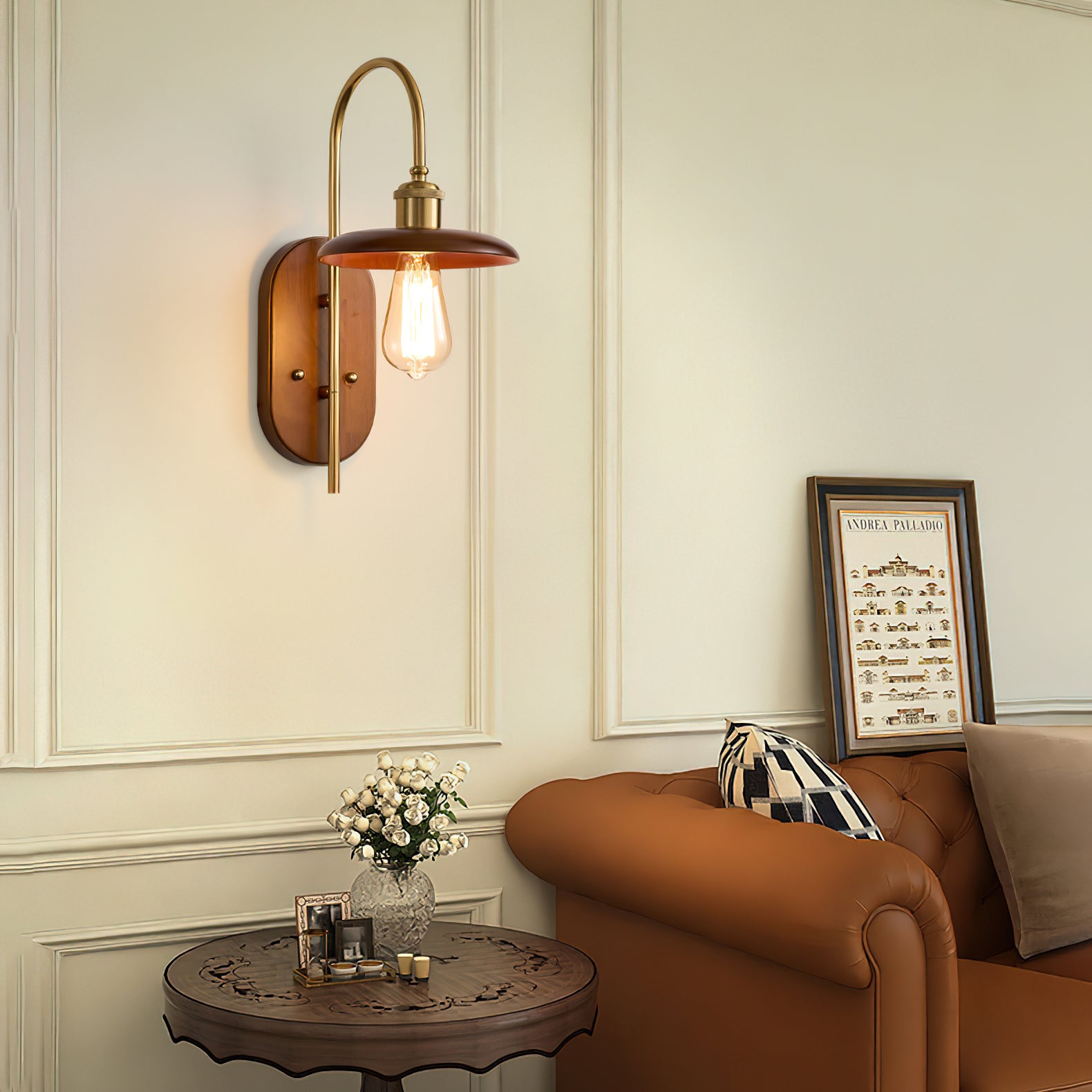 - Body Color: Brass, Walnut color.